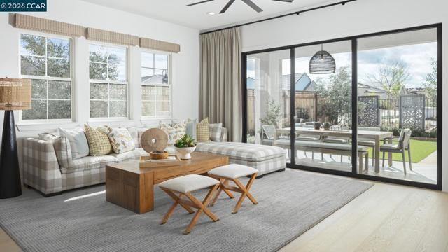 Welcome to Regency at Tracy Lakes, where luxury living takes center stage in this active adult 55+gated community. Three picturesque lakes, this vibrant community offers a fishing dock, 1-acre community garden and dog park. With a wealth of amenities, including a clubhouse, pools, cabanas, yoga studio, fitness center, bocce ball, and pickleball courts, every day is an opportunity for relaxation and recreation. The onsite lifestyle director ensures there’s always something to look forward to; from fitness classes to comedy shows and wine nights. Appealing foyer hallway reveals the expansive great room, with access to the luxury outdoor living space beyond. Well-appointed kitchen offers a large center island with breakfast bar, stainless steel appliances, 36" gas cooktop, quartz countertops, designer tile backsplash, shaker style modern cabinets with, and an ample walk-in pantry. The private primary bedroom suite has a roomy walk-in closet, and a spa-like bath with dual-sink vanity, a large luxe shower with seat. Elegant craftsmanship, with 10-foot ceilings, 8-foot doors, 5 1/4" baseboards, dual-pane Anderson windows and Western sliding doors. Create your ideal space with a generous flex room (photos not of actual home, for marketing only)