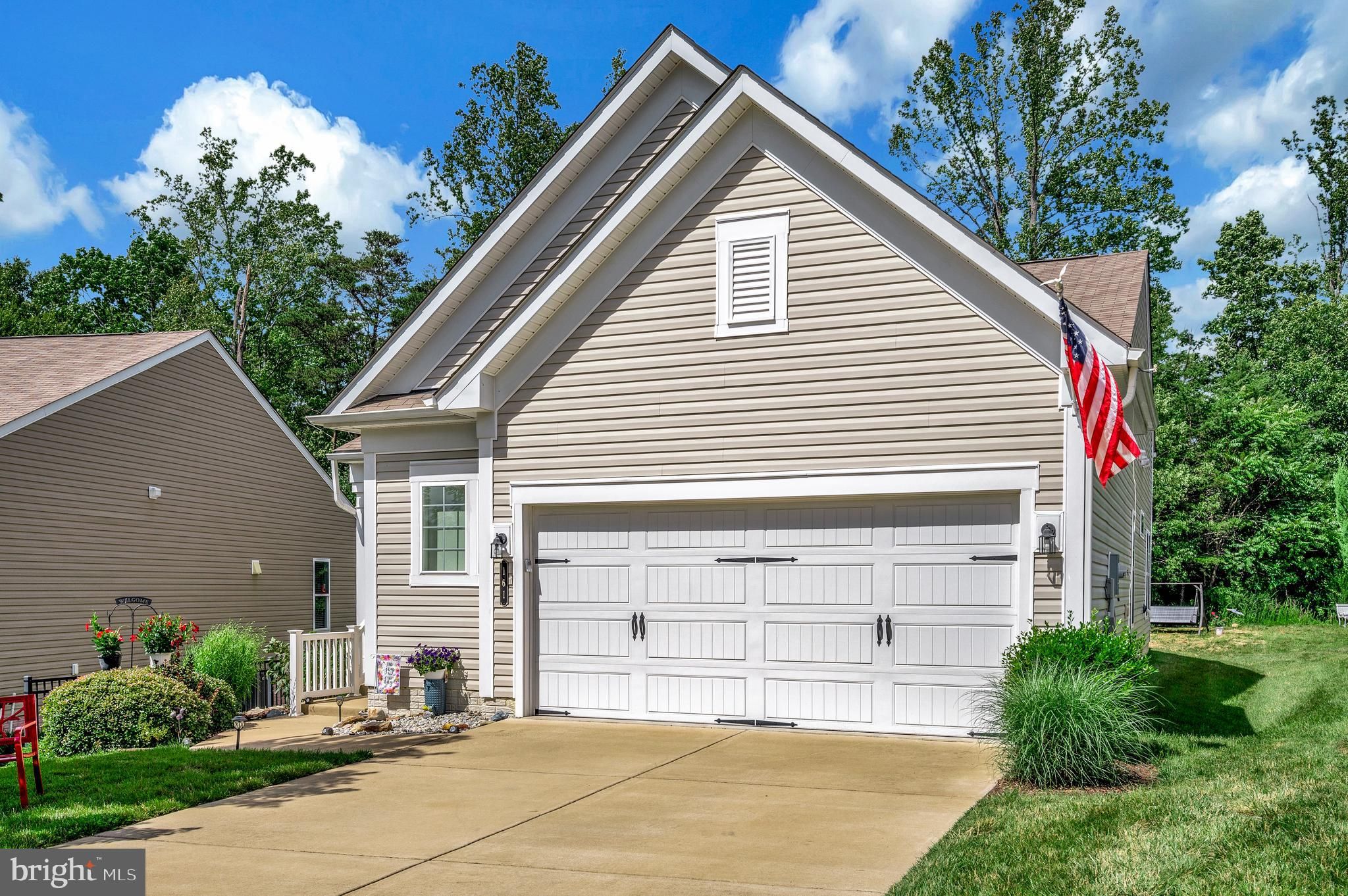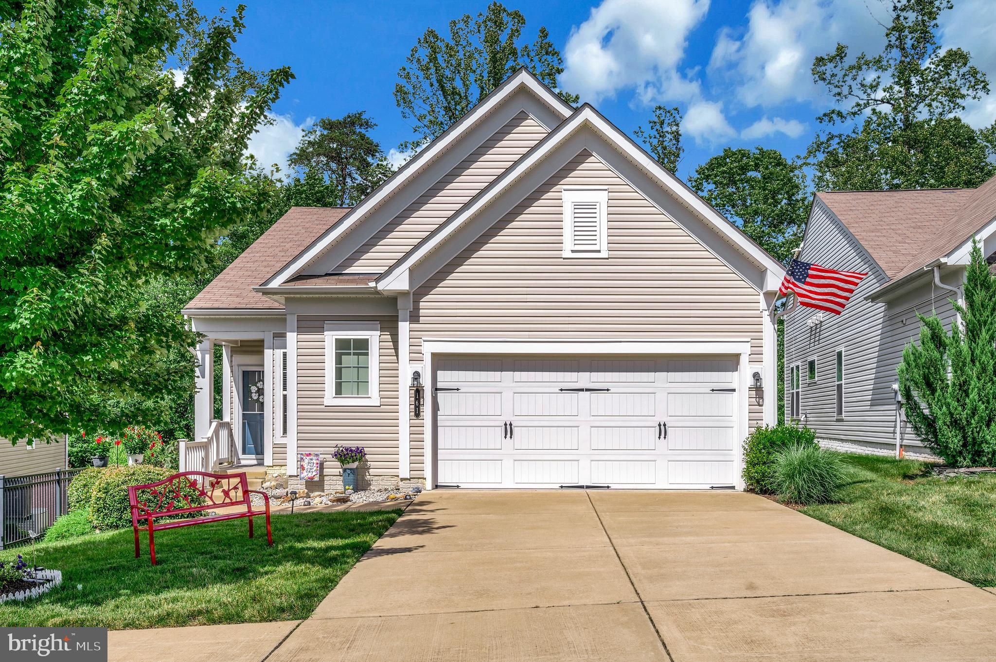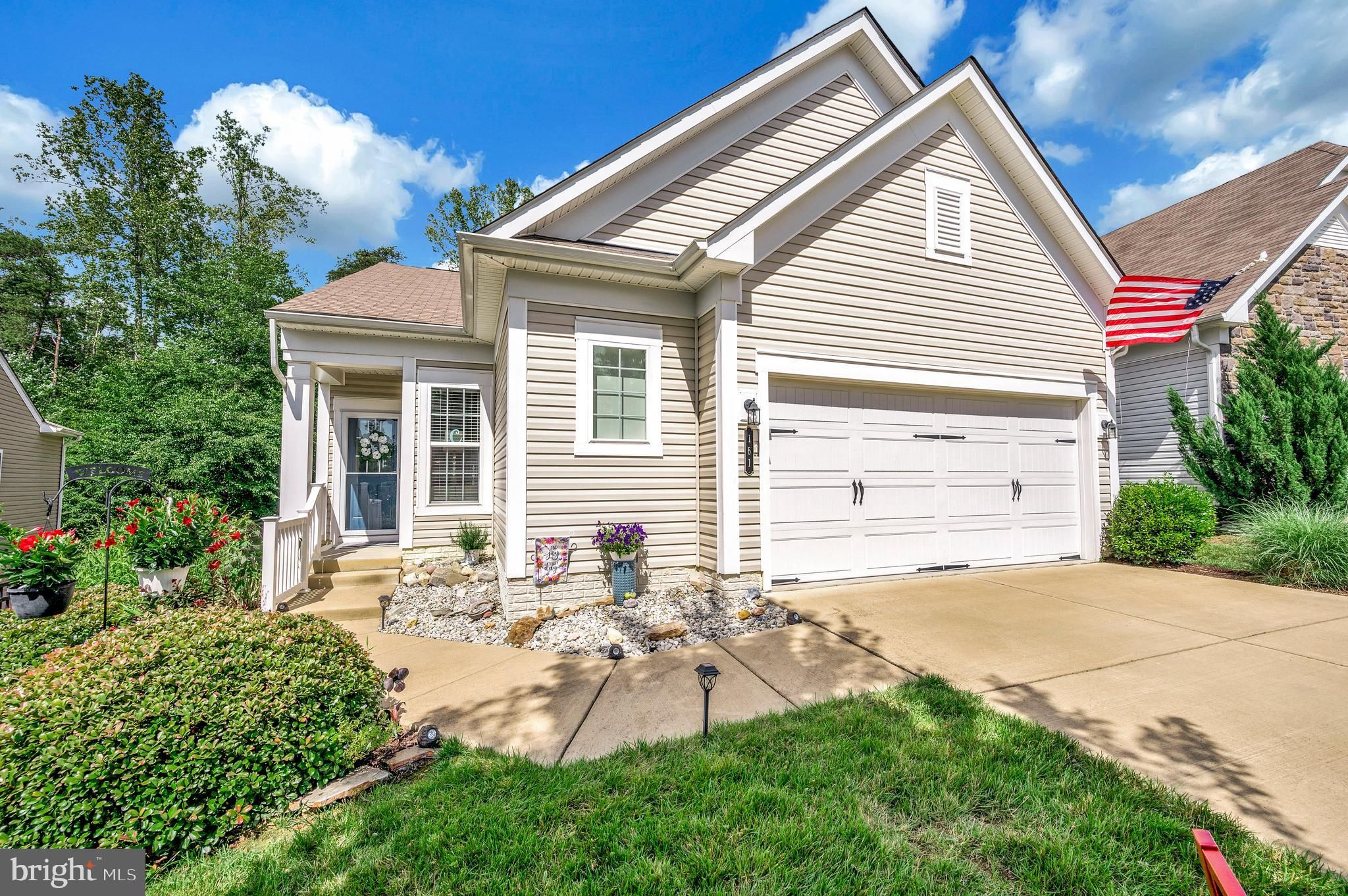 Make this bright & beautifully maintained open concept,3bed and 2 bath modern ranch style desired home. Step into refined elegance in this low maintenance 2017 home nestled in sought after Celebrate Virginia 55+ vibrant community This home features upgrades to enhance its beauty and function. Upon entering the main foyer you'll enjoy the spacious beauty open concept with its well-appointed living/dining/kitchen design, featuring large windows, beautiful crown molding, built in speaker system, 9ft ceilings, and luxury hard wood flooring for easy, living entertaining. You'll love the style, and function this kitchen offers with abundant 42" soft-close cabinetry, with roll out drawers, and concealed garbage/recycle bins. Enjoy the beautiful scenic view from the large windows over the farmhouse style sink. An oversized island, large pantry, modern stainless-steel appliances, granite countertops, tiled backsplash, 5 burner gas cooktop are just some of the appreciated features. Adjacent to the kitchen, the cozy the cozy sunroom provides an additional relaxation/entertaining area scenic morning coffee or evening wine with friends. Step out onto your private backyard featuring a large stamped concrete patio area backing up to mature trees, featuring a beautiful automatic gas fire pit, ample room for patio furniture, speaker system, and built in gas line ready for your barbecue grill, for even more entertaining and relaxing opportunities. Retreat to your generous primary bedroom featuring plush carpeting, large windows, and tray ceiling for your relaxing ambience. The walk-in closet with designer cabinetry is ideal for function and organization. The primary en-suite bathroom provides granite countertop dual vanities, oversized walk in and fully tiled shower, and large linen closet. Just outside the primary bedroom hallway area is the wall appointed laundry room allowing for efficient use. Two additional bedrooms and full bath offer welcoming, relaxing space for family and guests to enjoy or may be utilized for office/hobby areas. This home has multiple large closets throughout, and an extensive 9X6ft bump out area in the two-car garage, equipped newly installed floor to ceiling, heavy duty wooden shelving unit, along with additional attic space, providing generous well-appointed storage areas for your daily and seasonal storage needs. 2 car garage provides great shelter for vehicles and additional utility needs and features a whisper quiet automatic garage door opener. The additional home entry room from the garage allows easy space to unload and store outwear. Don't miss out on this opportunity to enjoy the fun filled, peaceful lifestyle of this home offers in great amenity filled community of Celebrate Virginia. Youl'll love the active lifestyle available for the Celebrate residents, including its fabulous Riverside lodge, equipped with state-of-the-art fitness center, and indoor walking track, indoor and outdoor pools, beautiful landscapes, sports courts, including tennis, pickleball, and bocce ball, putting greens, social clubs, event space, and numerous regular community gatherings, and so much more! Conveniently located just a few miles to I-95, downtown Fredericksburg, and many shopping and dining locations. Local entertainment includes Lake Mooney Park fishing in walking distance, golf and the Riverside center of Performing Arts.
