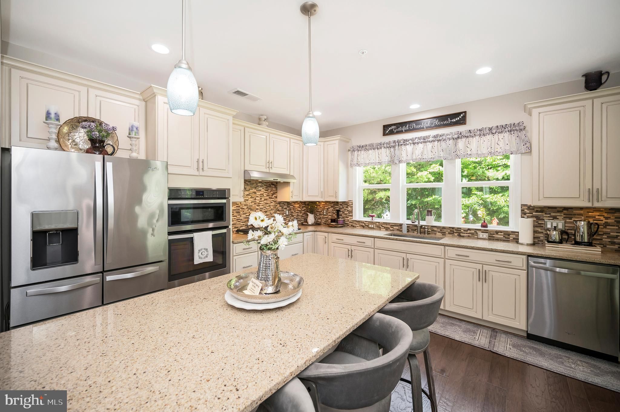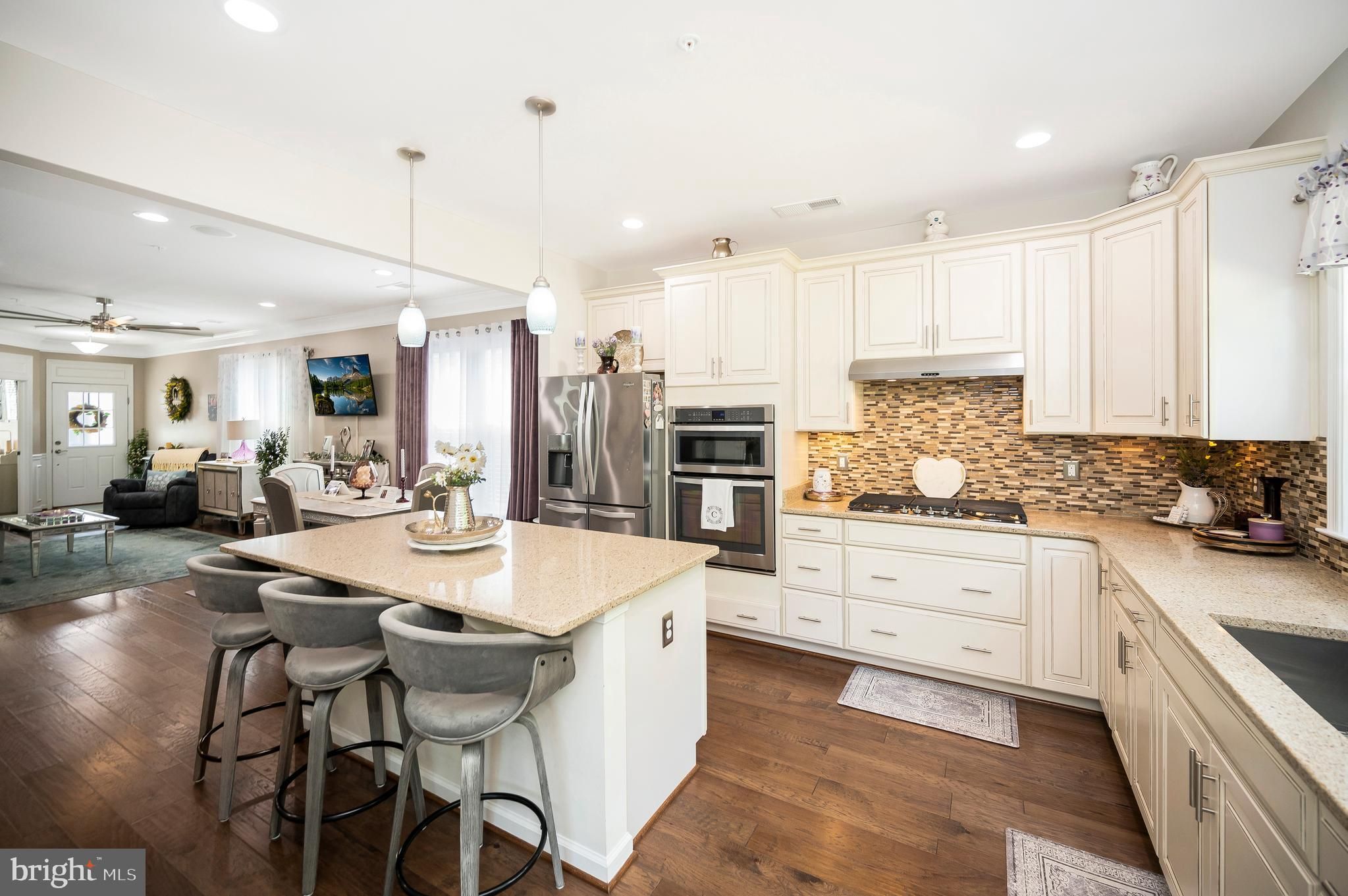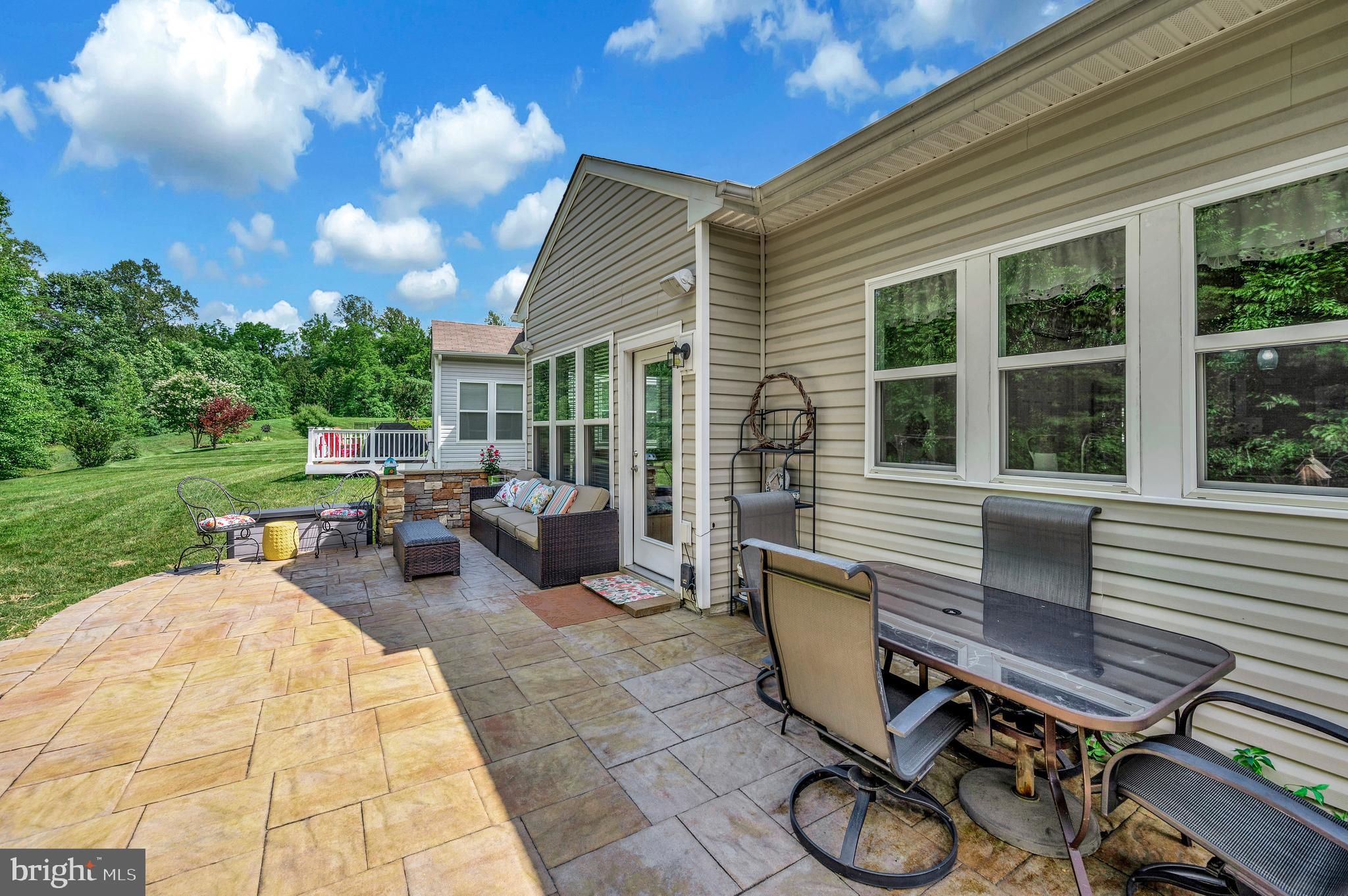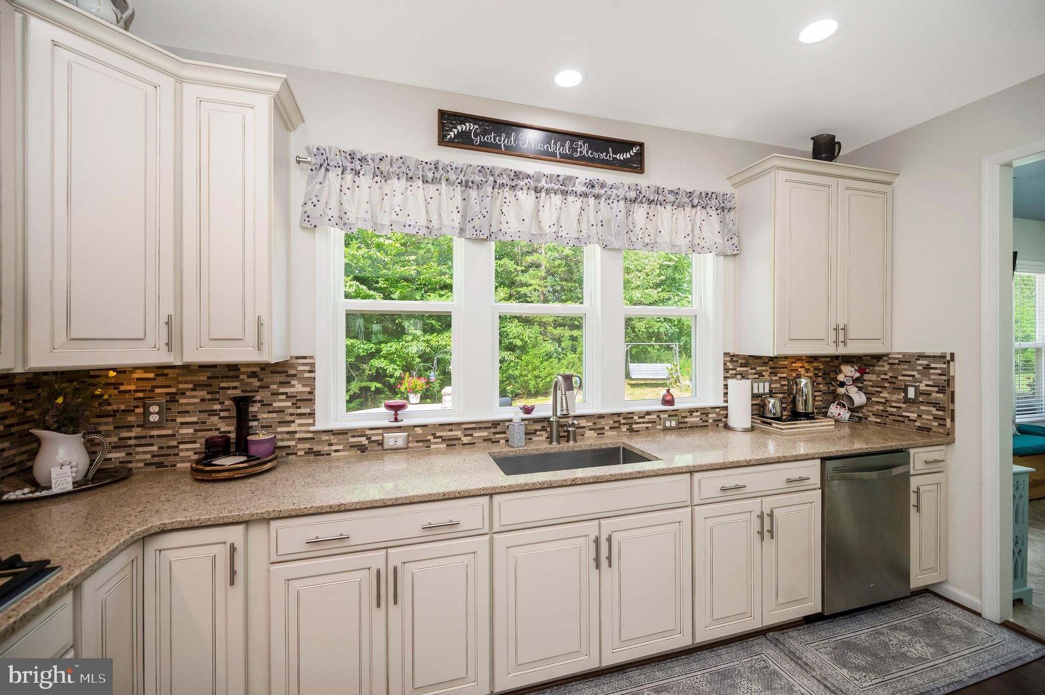 Make this bright & beautifully maintained open concept,3bed and 2 bath modern ranch style desired home. Step into refined elegance in this low maintenance 2017 home nestled in sought after Celebrate Virginia 55+ vibrant community This home features upgrades to enhance its beauty and function. Upon entering the main foyer you'll enjoy the spacious beauty open concept with its well-appointed living/dining/kitchen design, featuring large windows, beautiful crown molding, built in speaker system, 9ft ceilings, and luxury hard wood flooring for easy, living entertaining. You'll love the style, and function this kitchen offers with abundant 42" soft-close cabinetry, with roll out drawers, and concealed garbage/recycle bins. Enjoy the beautiful scenic view from the large windows over the farmhouse style sink. An oversized island, large pantry, modern stainless-steel appliances, granite countertops, tiled backsplash, 5 burner gas cooktop are just some of the appreciated features. Adjacent to the kitchen, the cozy the cozy sunroom provides an additional relaxation/entertaining area scenic morning coffee or evening wine with friends. Step out onto your private backyard featuring a large stamped concrete patio area backing up to mature trees, featuring a beautiful automatic gas fire pit, ample room for patio furniture, speaker system, and built in gas line ready for your barbecue grill, for even more entertaining and relaxing opportunities. Retreat to your generous primary bedroom featuring plush carpeting, large windows, and tray ceiling for your relaxing ambience. The walk-in closet with designer cabinetry is ideal for function and organization. The primary en-suite bathroom provides granite countertop dual vanities, oversized walk in and fully tiled shower, and large linen closet. Just outside the primary bedroom hallway area is the wall appointed laundry room allowing for efficient use. Two additional bedrooms and full bath offer welcoming, relaxing space for family and guests to enjoy or may be utilized for office/hobby areas. This home has multiple large closets throughout, and an extensive 9X6ft bump out area in the two-car garage, equipped newly installed floor to ceiling, heavy duty wooden shelving unit, along with additional attic space, providing generous well-appointed storage areas for your daily and seasonal storage needs. 2 car garage provides great shelter for vehicles and additional utility needs and features a whisper quiet automatic garage door opener. The additional home entry room from the garage allows easy space to unload and store outwear. Don't miss out on this opportunity to enjoy the fun filled, peaceful lifestyle of this home offers in great amenity filled community of Celebrate Virginia. Youl'll love the active lifestyle available for the Celebrate residents, including its fabulous Riverside lodge, equipped with state-of-the-art fitness center, and indoor walking track, indoor and outdoor pools, beautiful landscapes, sports courts, including tennis, pickleball, and bocce ball, putting greens, social clubs, event space, and numerous regular community gatherings, and so much more! Conveniently located just a few miles to I-95, downtown Fredericksburg, and many shopping and dining locations. Local entertainment includes Lake Mooney Park fishing in walking distance, golf and the Riverside center of Performing Arts.
