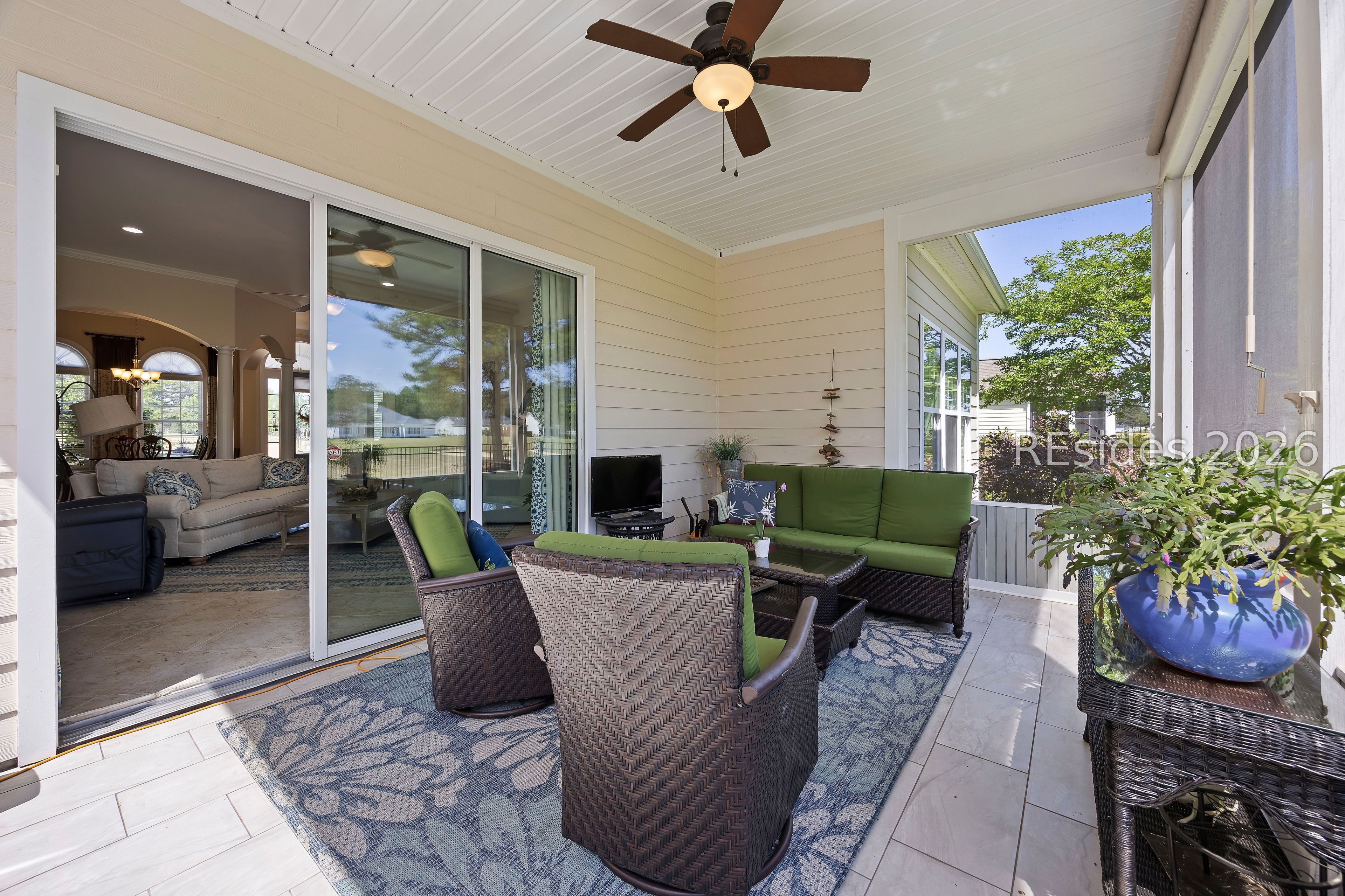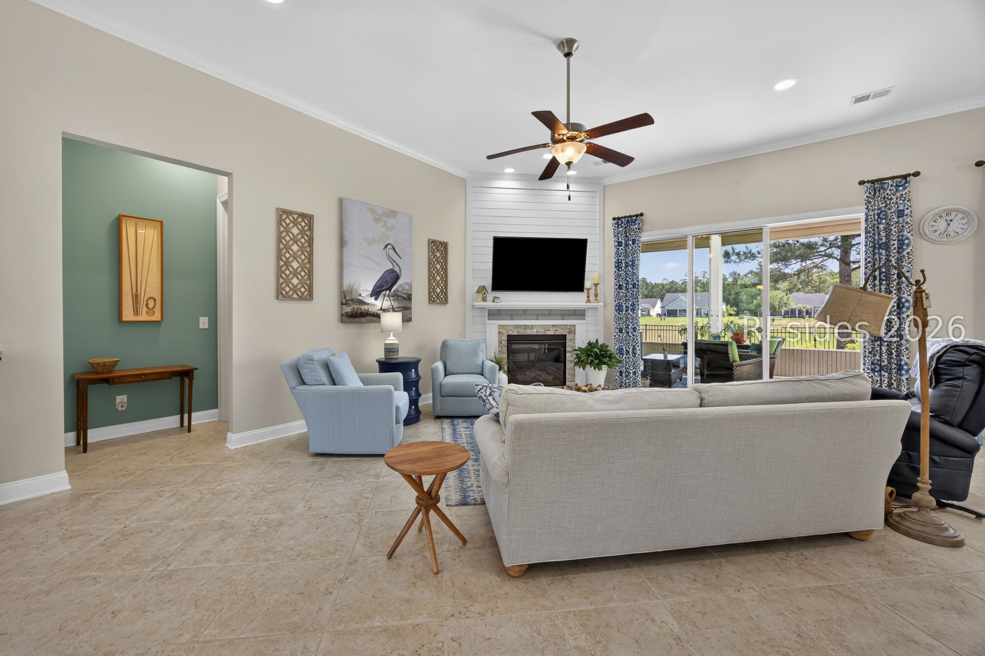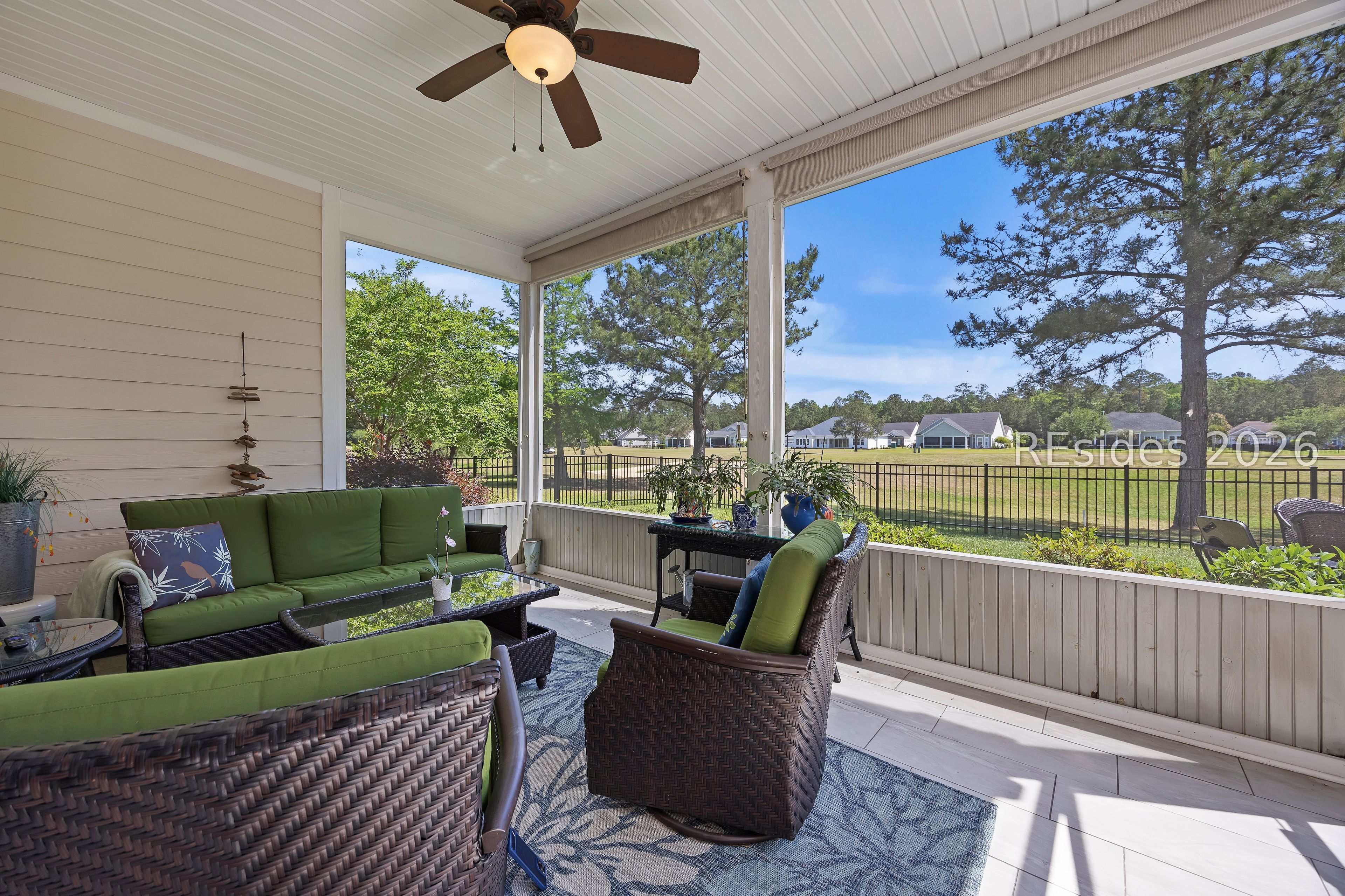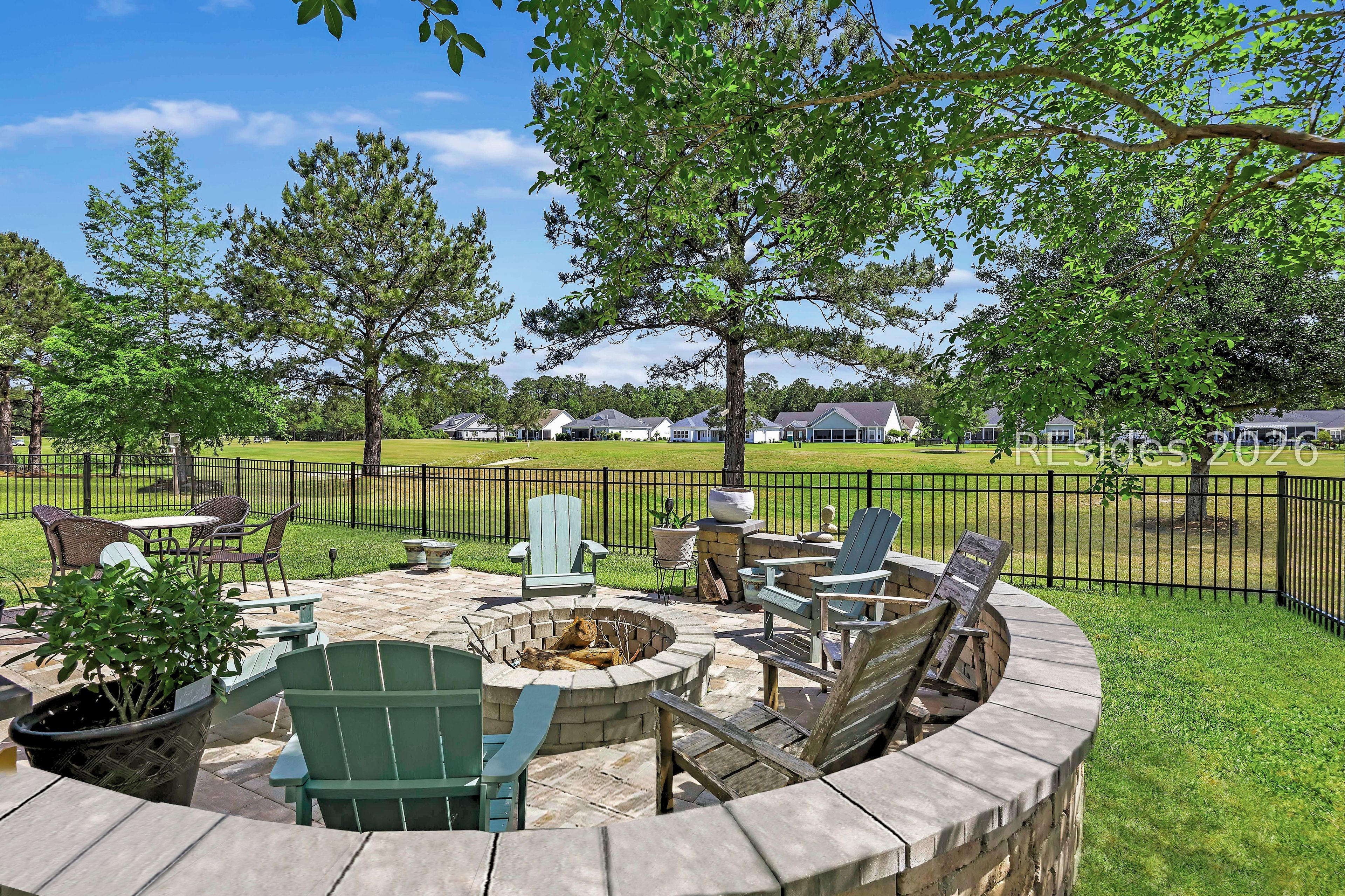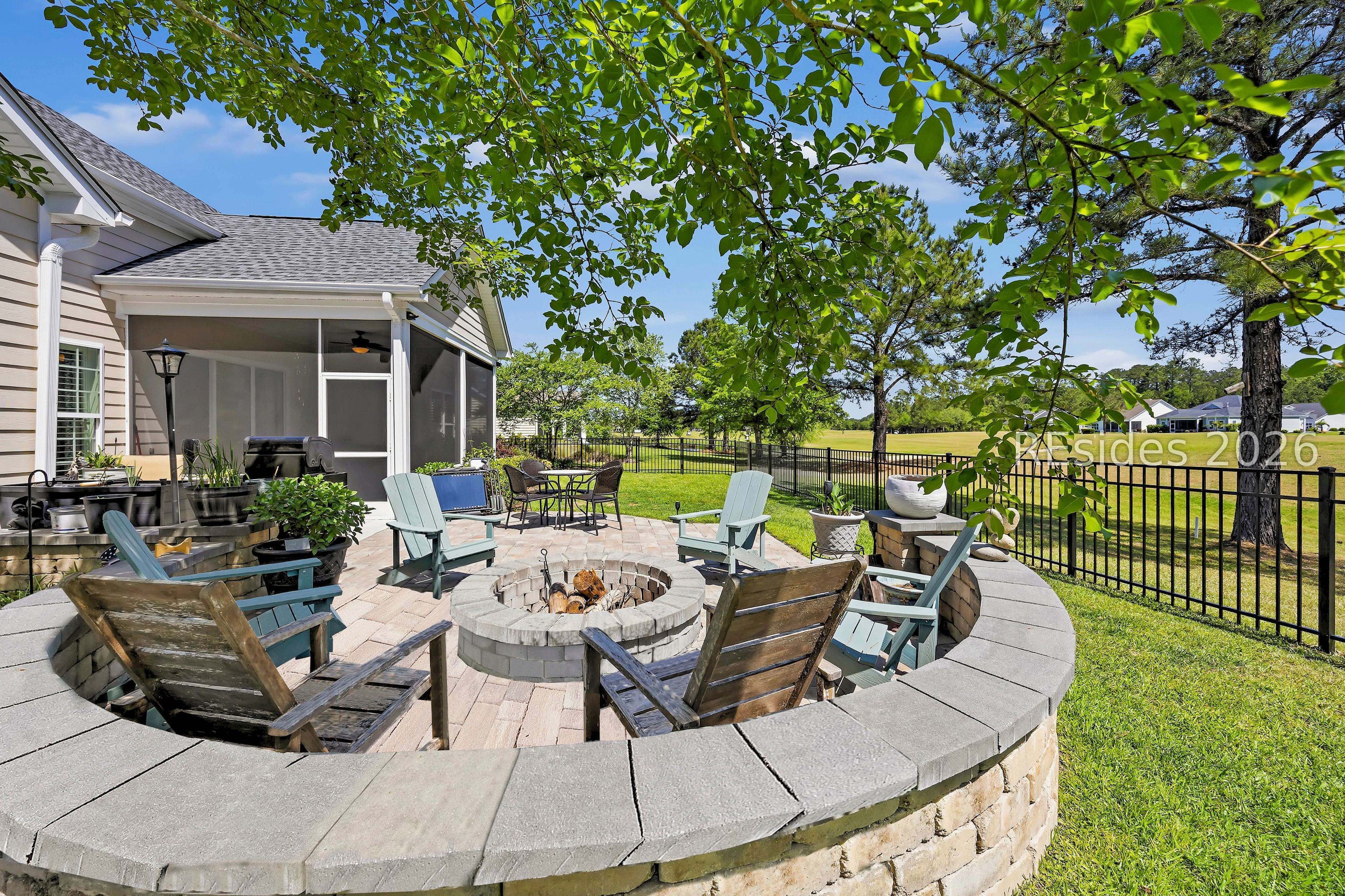 Golf Views | Gated Community | Elevated Finishes Former custom model home set on a premium homesite. This single-story home offers an open-concept layout, crown molding, and impressive 10- to 12-foot ceilings that create a bright, spacious feel throughout. The gourmet kitchen is complete with a gas cooktop, double ovens, and an island with seating. The layout includes a primary suite with an en-suite bath with double bowl vanity, jacuzzi tub, and separate shower. The first guest bedroom has a private en-suite bath, and two additional guest bedrooms share the third full bath. Each room offers flexibility to suit your needs, whether used for loved ones, overnight guests, a home office, hobby space, or a quiet retreat. The standout feature of this home is the incredible Lowcountry outdoor oasis. Triple sliding glass doors open to a screened lanai that extends to a custom paver patio with fire pit, creating nearly 700 square feet of outdoor entertaining space. The fenced yard allows you to enjoy the golf views while adding security and privacy. Additional features include a new roof, new HVAC, epoxy garage floor, and the upgrades expected in a former model home. Located in the gated Hilton Head Lakes community with golf, clubhouse, pool, fitness center, pickleball, and more. Home is located in an X-shaded flood zone.