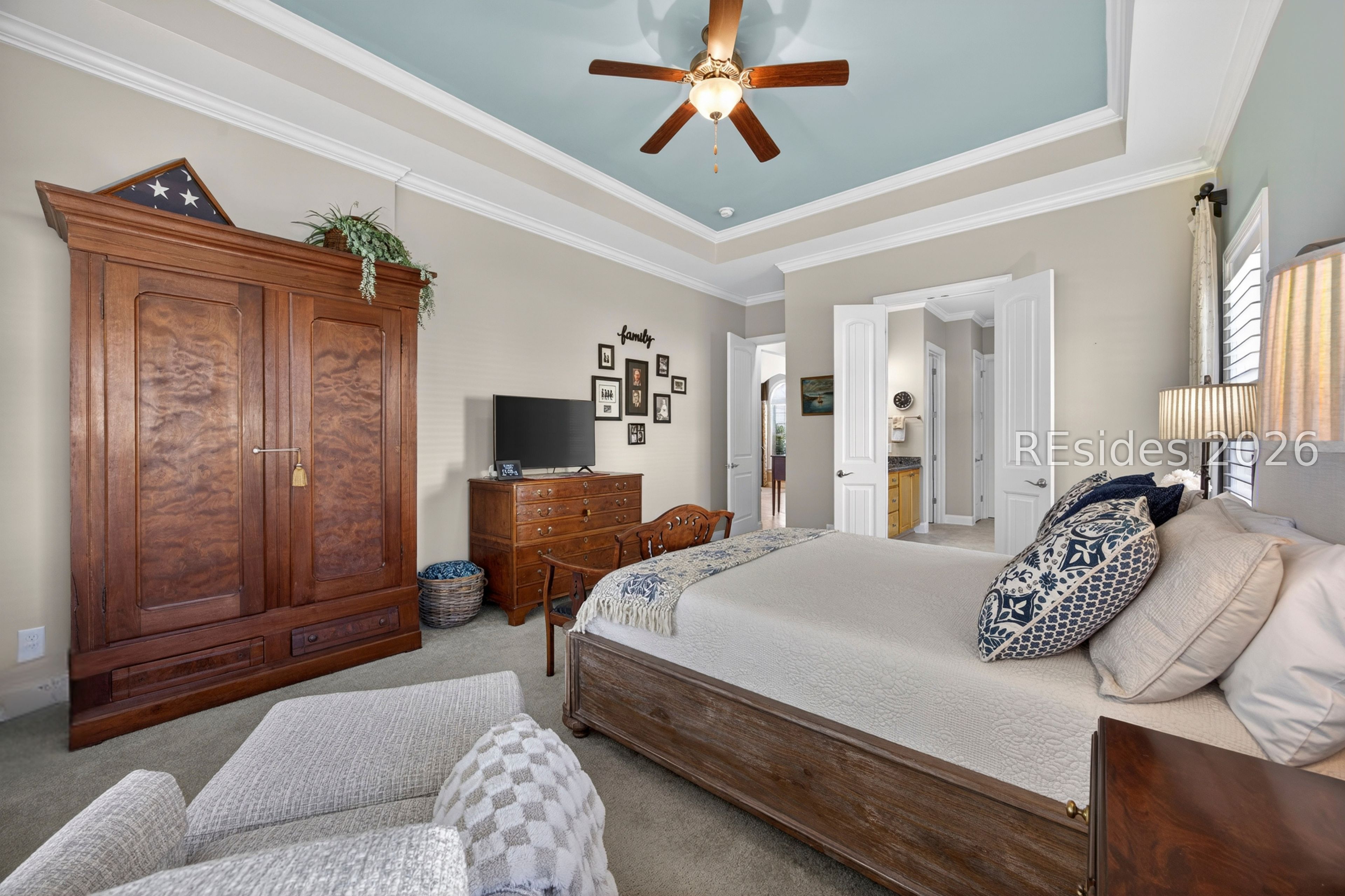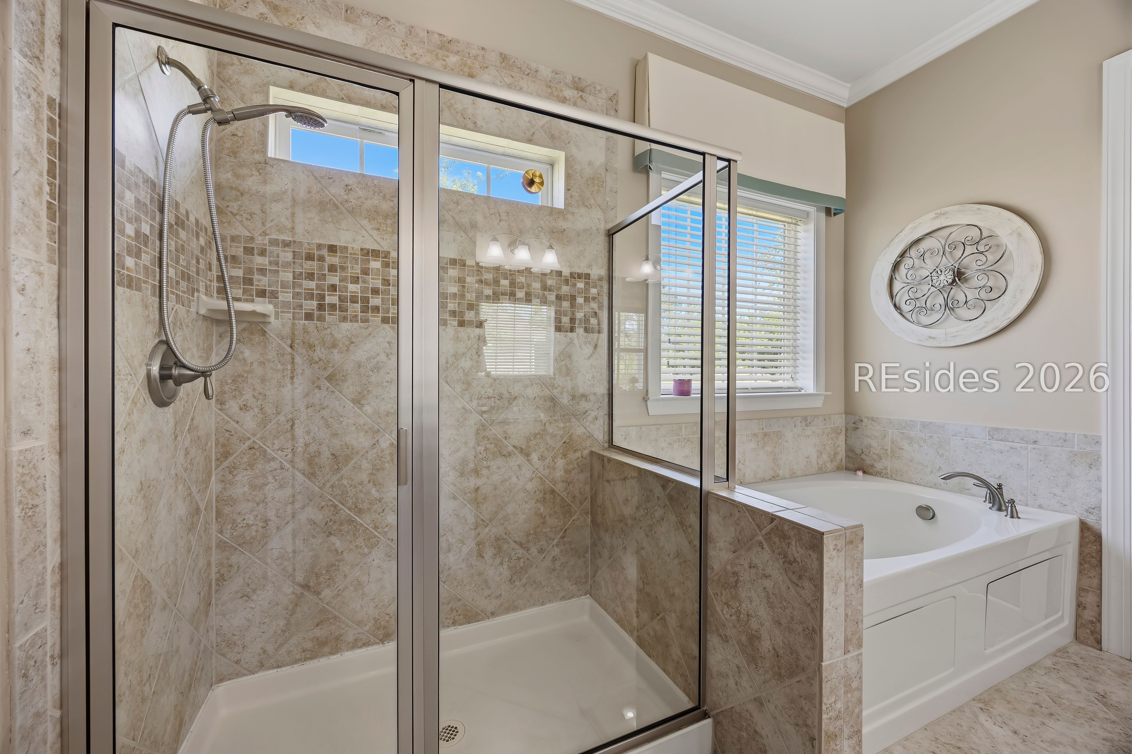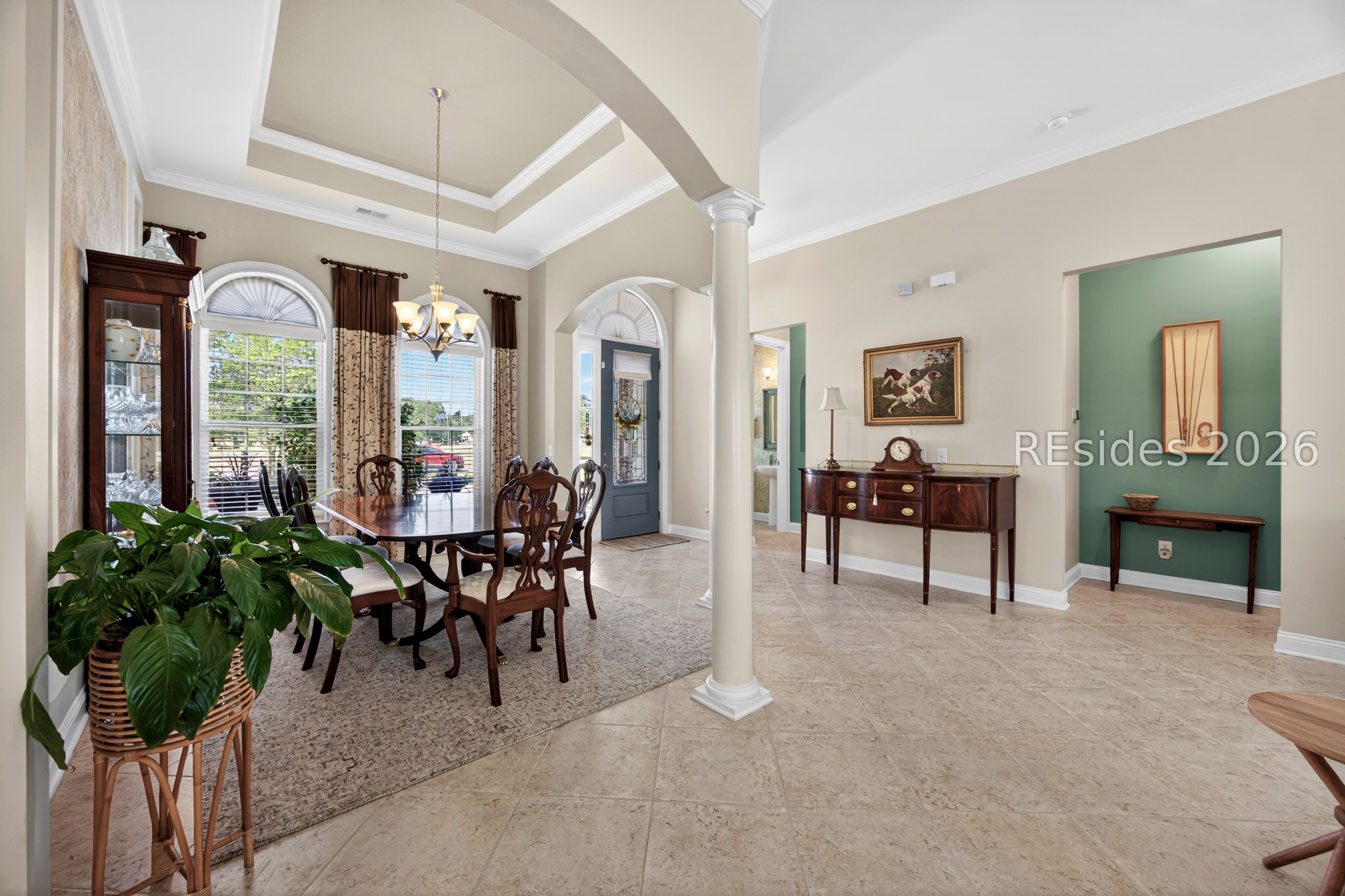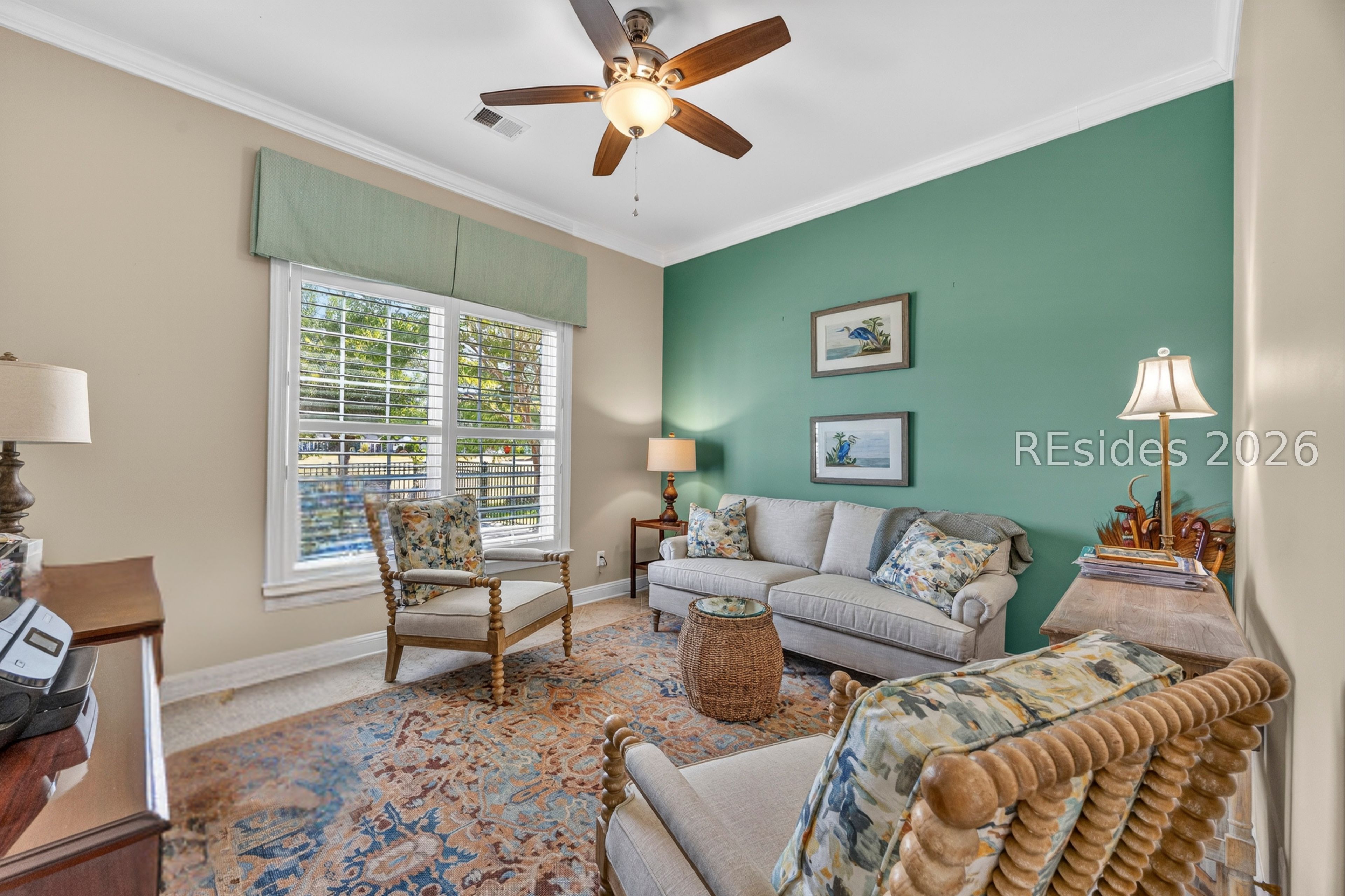Golf Views | Gated Community | Elevated Finishes Former custom model home set on a premium homesite. This single-story home offers an open-concept layout, crown molding, and impressive 10- to 12-foot ceilings that create a bright, spacious feel throughout. The gourmet kitchen is complete with a gas cooktop, double ovens, and an island with seating. The layout includes a primary suite with an en-suite bath with double bowl vanity, jacuzzi tub, and separate shower. The first guest bedroom has a private en-suite bath, and two additional guest bedrooms share the third full bath. Each room offers flexibility to suit your needs, whether used for loved ones, overnight guests, a home office, hobby space, or a quiet retreat. The standout feature of this home is the incredible Lowcountry outdoor oasis. Triple sliding glass doors open to a screened lanai that extends to a custom paver patio with fire pit, creating nearly 700 square feet of outdoor entertaining space. The fenced yard allows you to enjoy the golf views while adding security and privacy. Additional features include a new roof, new HVAC, epoxy garage floor, and the upgrades expected in a former model home. Located in the gated Hilton Head Lakes community with golf, clubhouse, pool, fitness center, pickleball, and more. Home is located in an X-shaded flood zone.