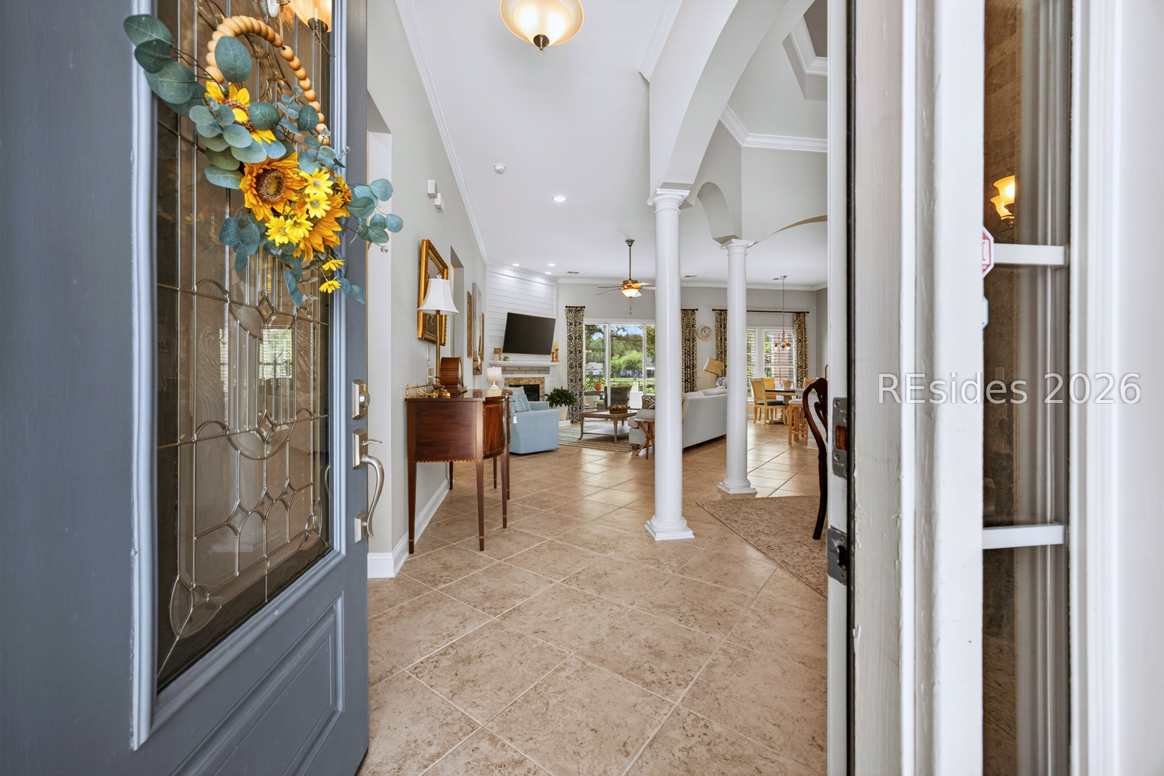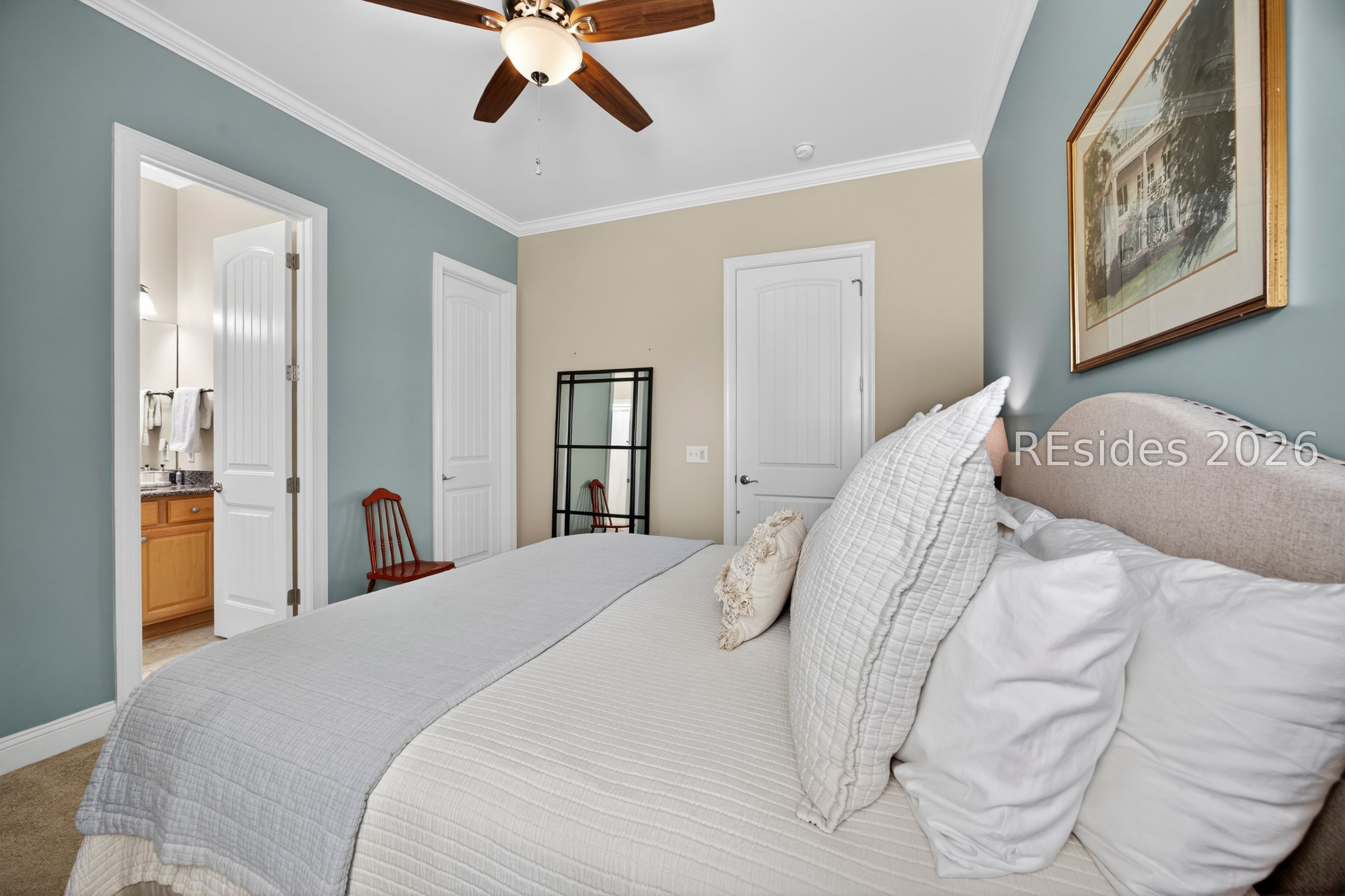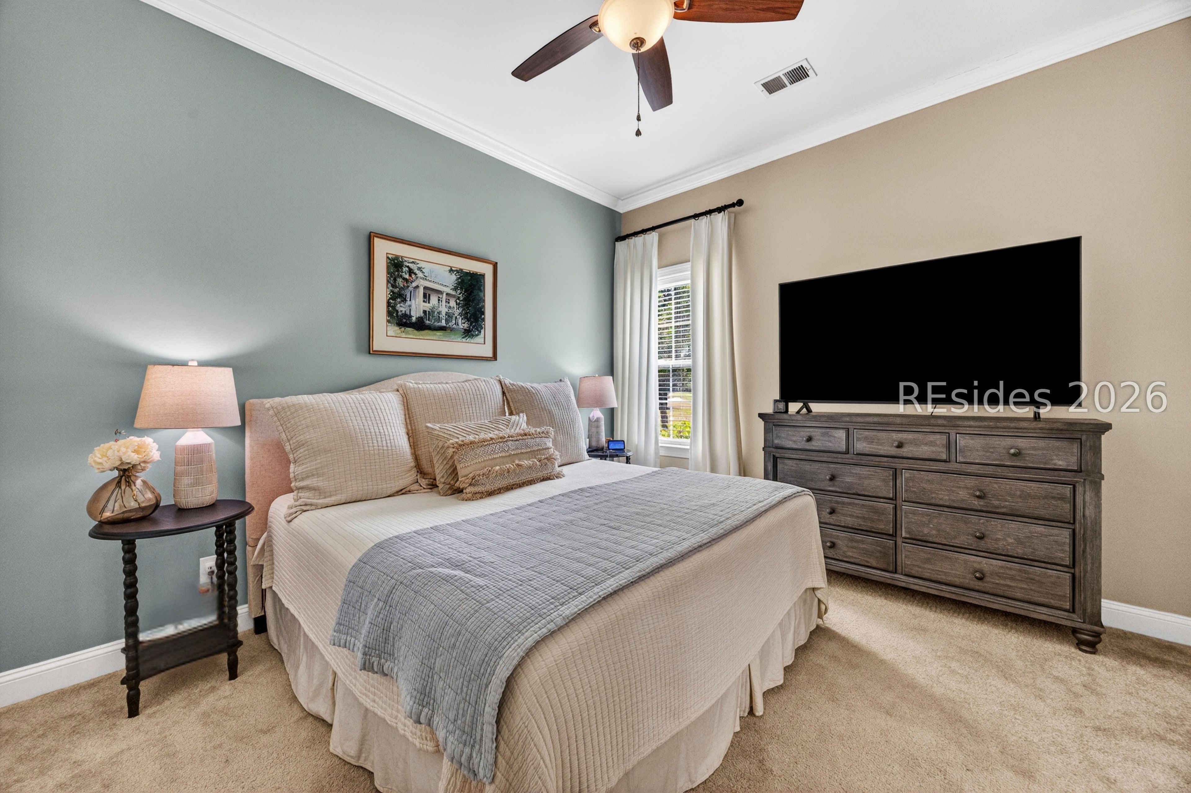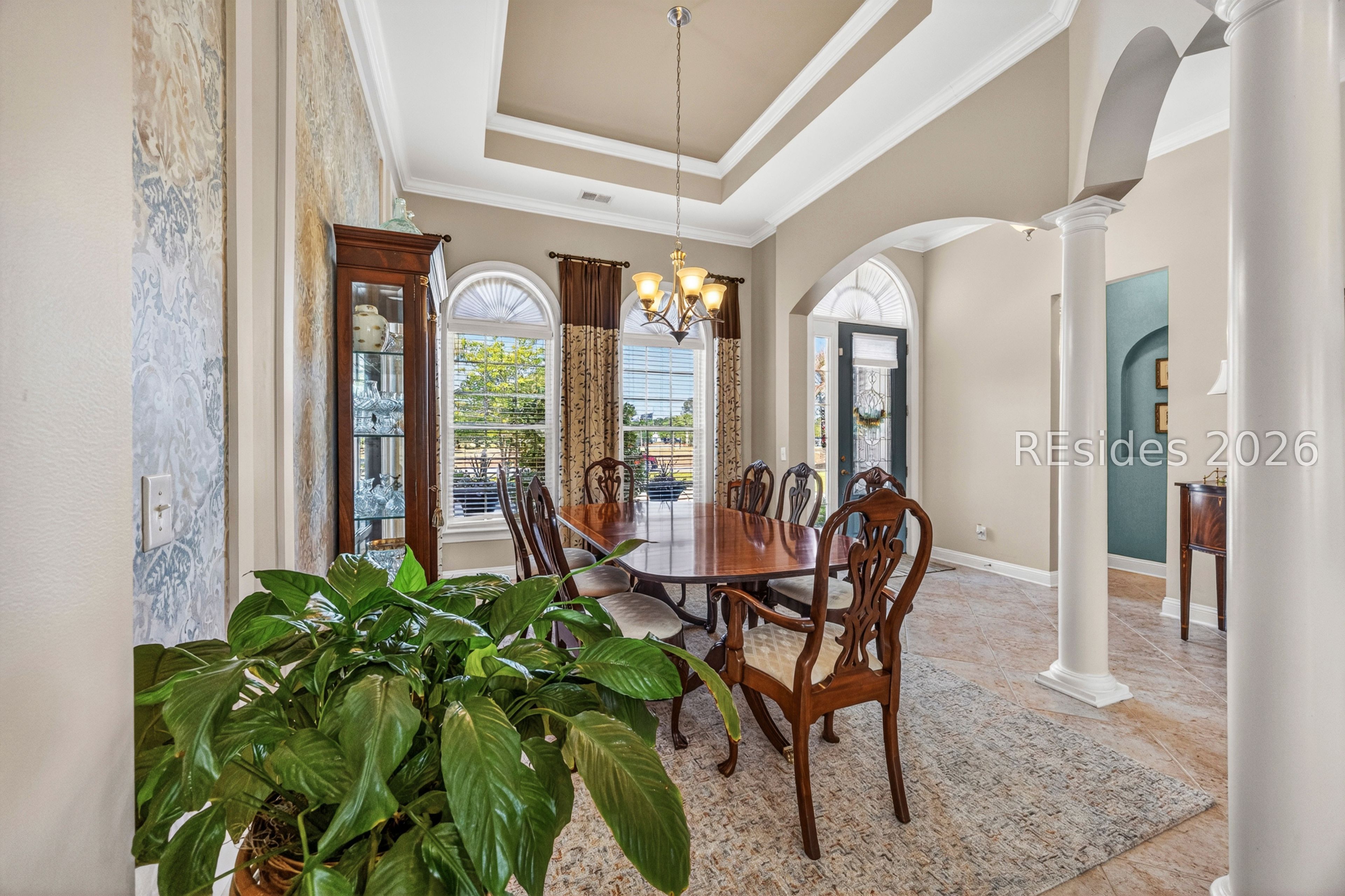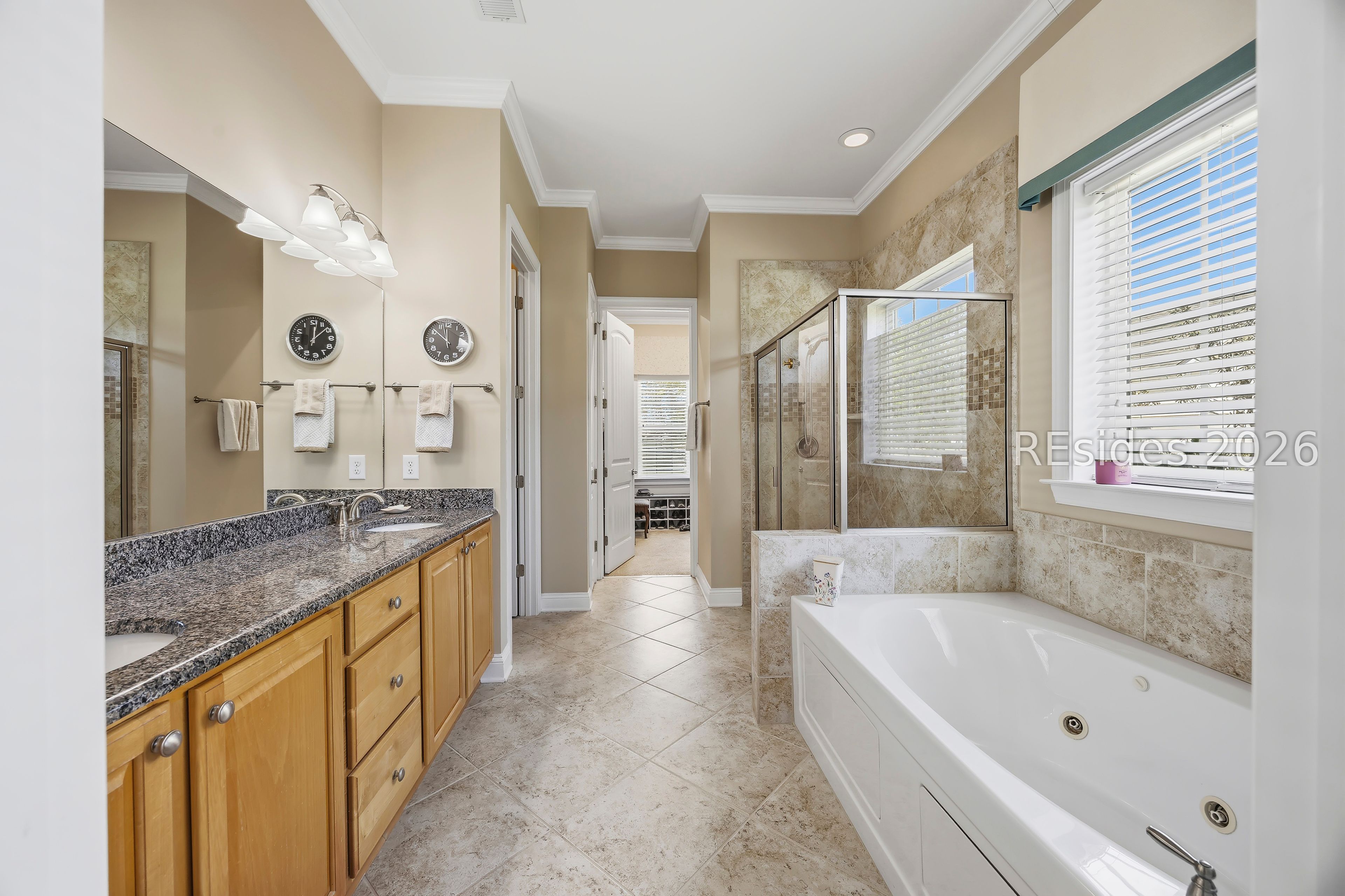 Golf Views | Gated Community | Elevated Finishes Former custom model home set on a premium homesite. This single-story home offers an open-concept layout, crown molding, and impressive 10- to 12-foot ceilings that create a bright, spacious feel throughout. The gourmet kitchen is complete with a gas cooktop, double ovens, and an island with seating. The layout includes a primary suite with an en-suite bath with double bowl vanity, jacuzzi tub, and separate shower. The first guest bedroom has a private en-suite bath, and two additional guest bedrooms share the third full bath. Each room offers flexibility to suit your needs, whether used for loved ones, overnight guests, a home office, hobby space, or a quiet retreat. The standout feature of this home is the incredible Lowcountry outdoor oasis. Triple sliding glass doors open to a screened lanai that extends to a custom paver patio with fire pit, creating nearly 700 square feet of outdoor entertaining space. The fenced yard allows you to enjoy the golf views while adding security and privacy. Additional features include a new roof, new HVAC, epoxy garage floor, and the upgrades expected in a former model home. Located in the gated Hilton Head Lakes community with golf, clubhouse, pool, fitness center, pickleball, and more. Home is located in an X-shaded flood zone.