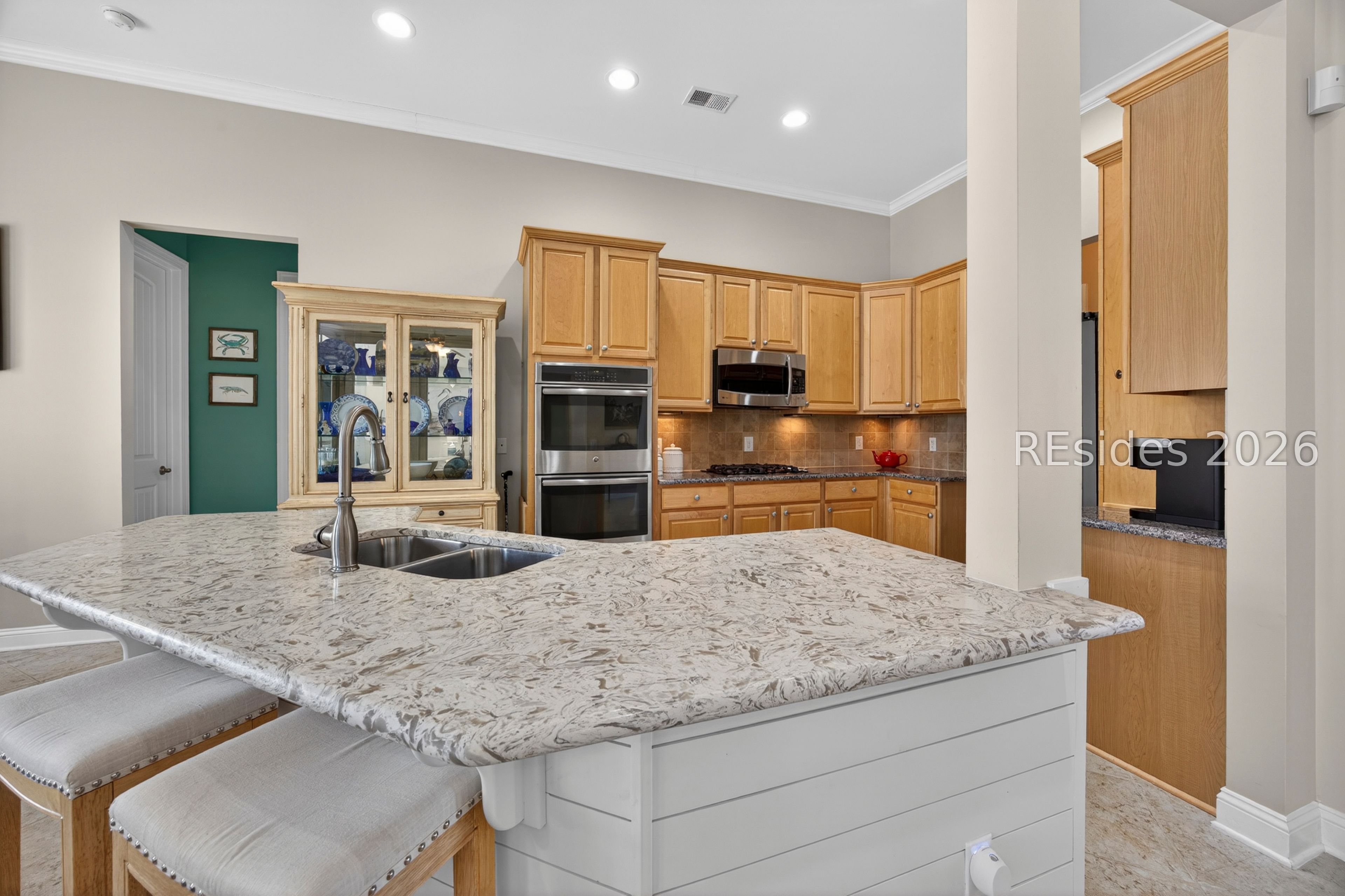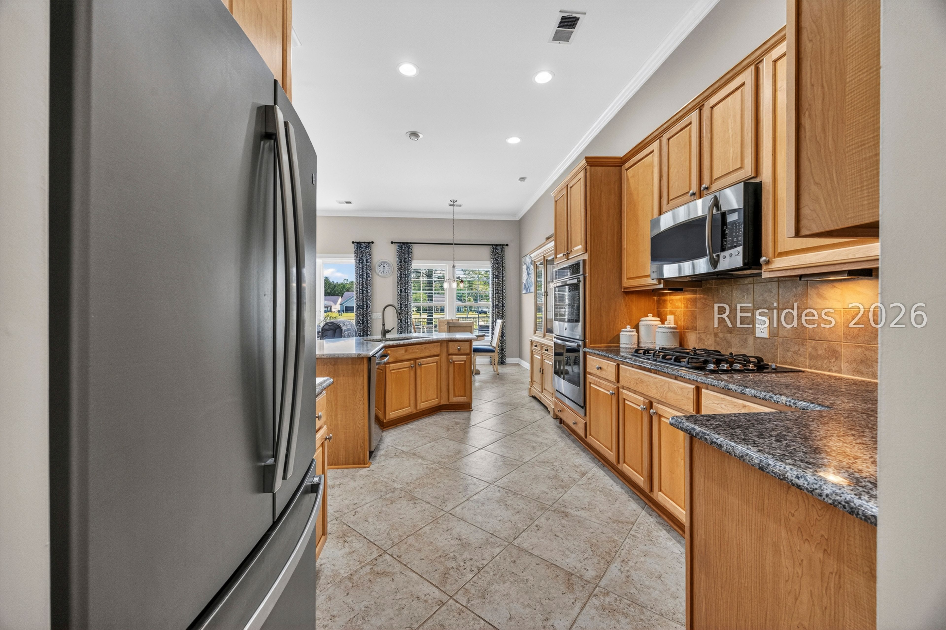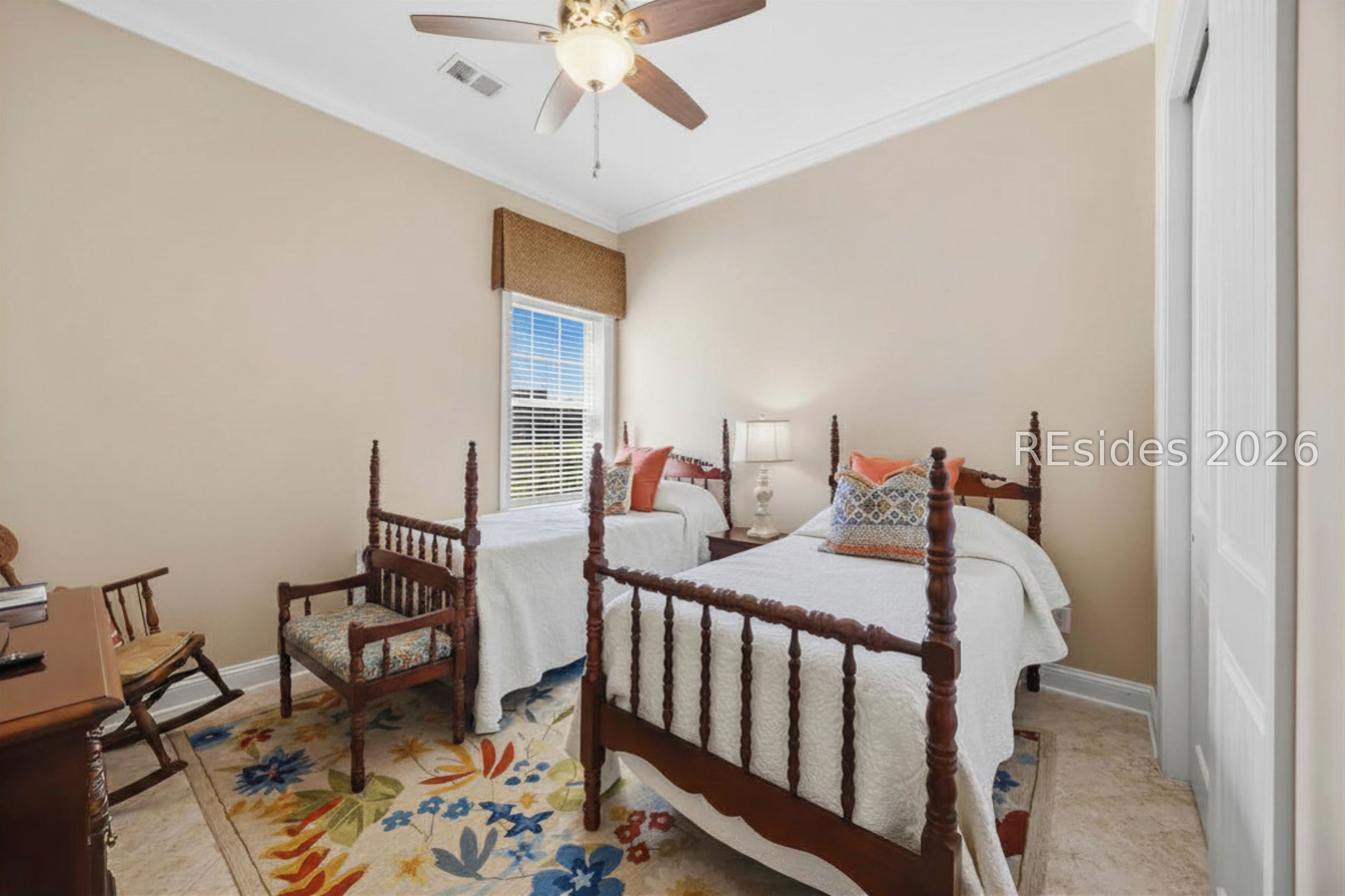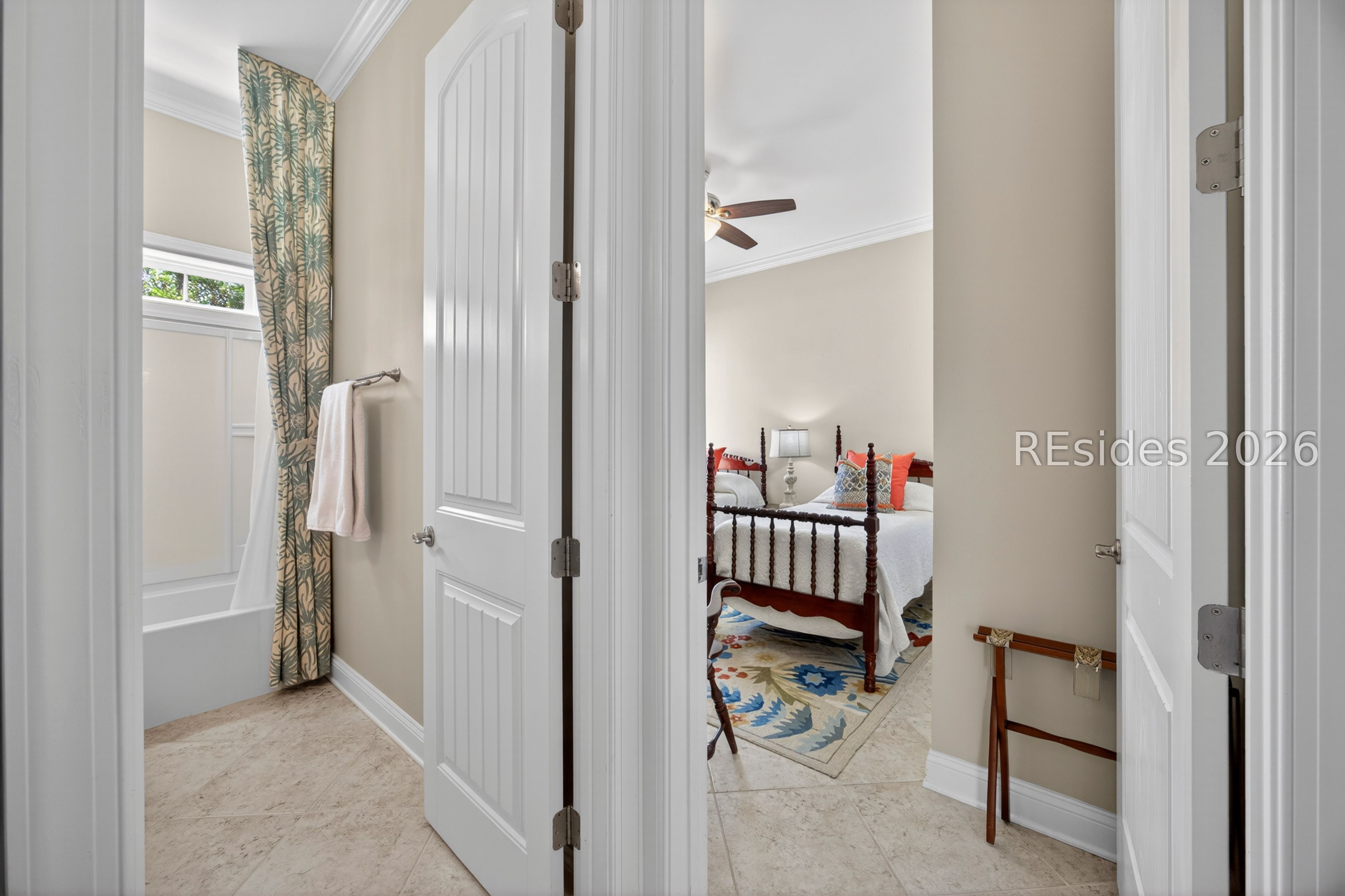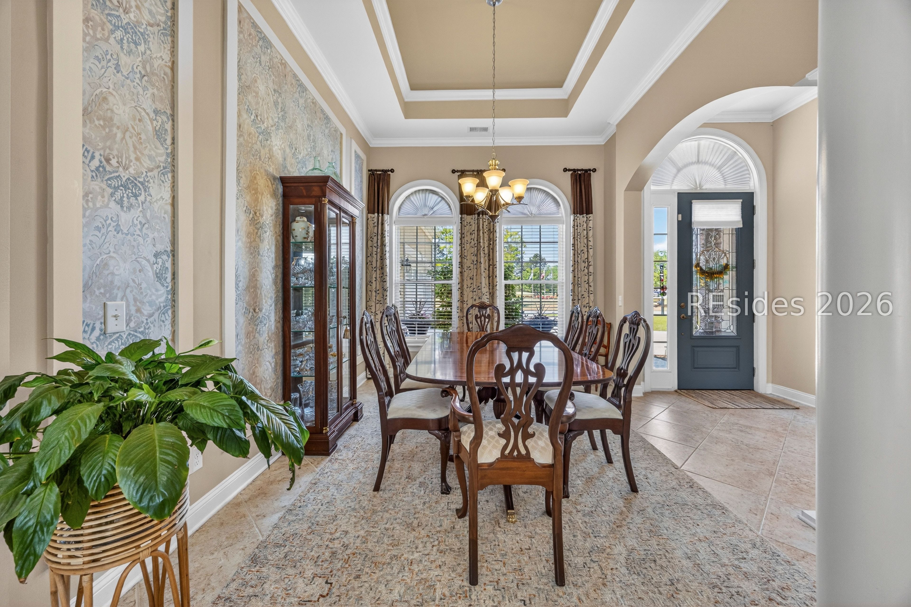 Golf Views | Gated Community | Elevated Finishes Former custom model home set on a premium homesite. This single-story home offers an open-concept layout, crown molding, and impressive 10- to 12-foot ceilings that create a bright, spacious feel throughout. The gourmet kitchen is complete with a gas cooktop, double ovens, and an island with seating. The layout includes a primary suite with an en-suite bath with double bowl vanity, jacuzzi tub, and separate shower. The first guest bedroom has a private en-suite bath, and two additional guest bedrooms share the third full bath. Each room offers flexibility to suit your needs, whether used for loved ones, overnight guests, a home office, hobby space, or a quiet retreat. The standout feature of this home is the incredible Lowcountry outdoor oasis. Triple sliding glass doors open to a screened lanai that extends to a custom paver patio with fire pit, creating nearly 700 square feet of outdoor entertaining space. The fenced yard allows you to enjoy the golf views while adding security and privacy. Additional features include a new roof, new HVAC, epoxy garage floor, and the upgrades expected in a former model home. Located in the gated Hilton Head Lakes community with golf, clubhouse, pool, fitness center, pickleball, and more. Home is located in an X-shaded flood zone.