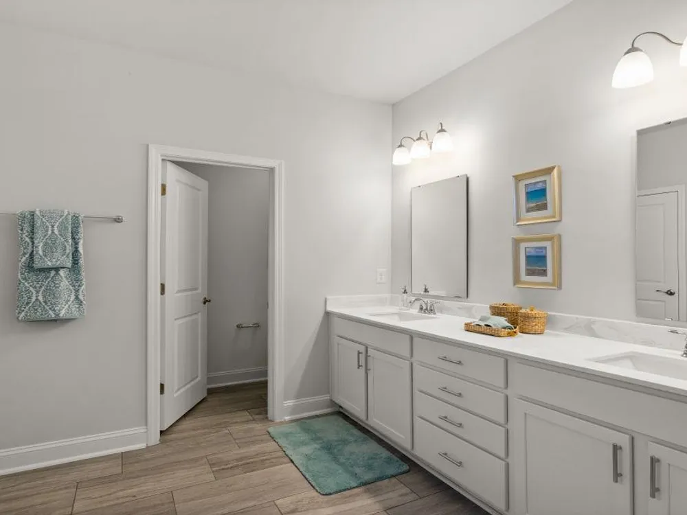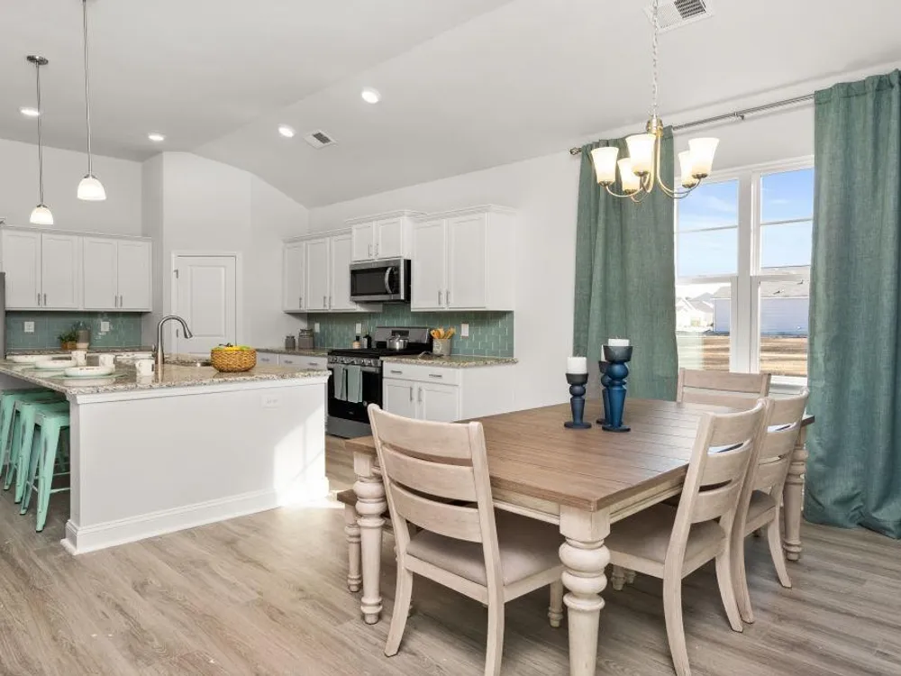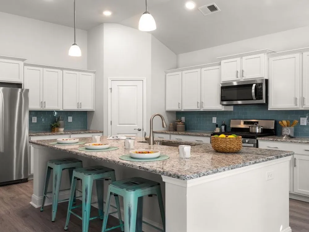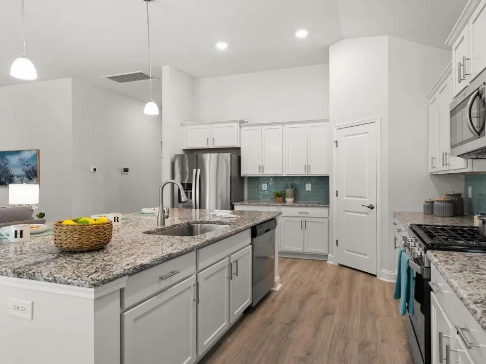 The desirable Litchfield plan is a masterfully designed single level home with a great open concept kitchen, living room, and dining area with 11' ceilings. Access to the spacious rear covered porch through a 4 panel sliding door just off the dining area creates a wonderful outdoor space to relax and unwind. The 4 panel slider also allows natural light to fill the main living area. The kitchen features include a corner walk in pantry, stainless steel appliances, quartz countertops, and a large island with breakfast bar. Located at the back of the home, the private owner's suite with a tray ceiling offers dual walk-in closets, a separate linen closet, double vanity, and a 5' tile shower. At the front of the home are three secondary bedrooms creating separation from the primary suite. This is America's Smart Home! Each of our homes comes with an industry leading smart home technology package that will allow you to control the thermostat, front door light and lock, and video doorbell from your smartphone or with voice commands to Alexa. *Photos are of a similar Litchfield home. (Home and community information, including pricing, included features, terms, availability and amenities, are subject to change prior to sale at any time without notice or obligation. Square footages are approximate. Pictures, photographs, colors, features, and sizes are for illustration purposes only and will vary from the homes as built. Equal housing opportunity builder.)