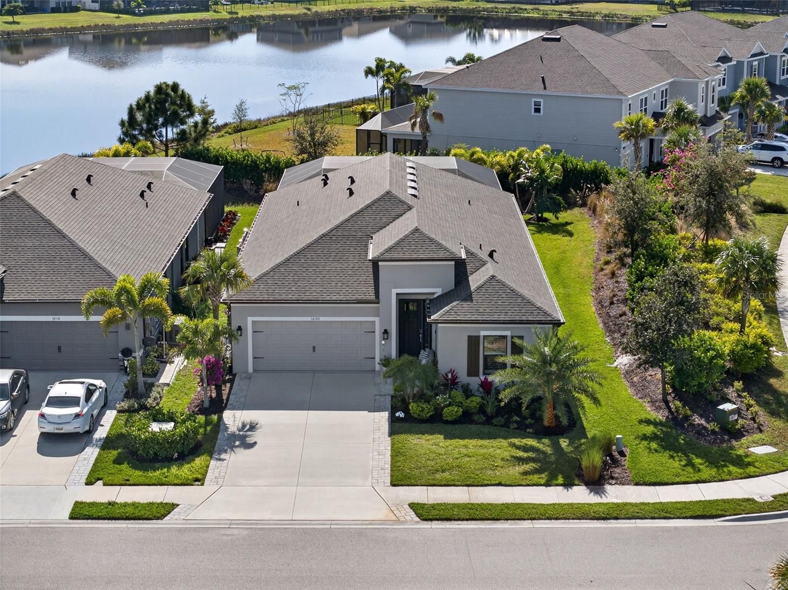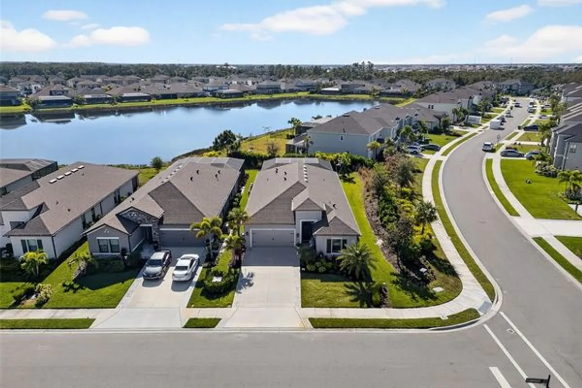 A true showpiece of modern Florida luxury, 16106 Culpepper Drive is an exceptional Antigua floor plan residence set on a premium corner lot with serene water views in the highly sought-after Park East at Azario. Meticulously upgraded and designed for elevated living, this stunning single-story home blends refined interiors with a resort-caliber outdoor retreat—creating an irresistible lifestyle opportunity for today’s luxury buyer. From the moment you arrive, the extended paver driveway, upgraded front entry, and enhanced landscaping with mature trees make a striking first impression. Inside, the home unfolds into a bright, open-concept layout where natural light pours through expansive south-facing sliders, framing the spectacular outdoor living space beyond. Plantation shutters throughout add timeless elegance and privacy, while high-end finishes elevate every room. The gourmet kitchen is both beautiful and functional, featuring a gas cooktop, oversized center island, butler’s pantry, and a dedicated drinking water filtration system—perfectly suited for entertaining or everyday luxury. Seamless flow into the living and dining areas makes hosting effortless and inviting. Step outside to your private backyard oasis, where luxury truly comes to life. Enjoy a custom-designed pool and spa, a covered outdoor kitchen complete with built-in grill and refrigerator, and an outdoor gas fireplace that transforms evenings into unforgettable experiences. A battery-operated lanai shade on the rear slider enhances comfort, while the expansive screened enclosure creates a resort-style atmosphere ideal for year-round enjoyment. The primary suite is a serene retreat, offering peaceful views and a spa-inspired ambiance. Custom-designed closets in the primary suite, pantry, and laundry room provide exceptional organization and convenience. Three additional bedrooms are thoughtfully arranged, including a private guest suite with its own bath, while a versatile den with glass French doors offers the perfect space for a home office, media room, or flex space. Additional premium upgrades include air conditioning installed in the garage, ensuring comfort and flexibility for storage, fitness, or hobby use—further enhancing the home’s thoughtful design. Sophisticated, stylish, and designed to impress, this exceptional home offers the ultimate blend of luxury, comfort, and resort-inspired living. Opportunities like this are rare—schedule your private showing and experience it for yourself.