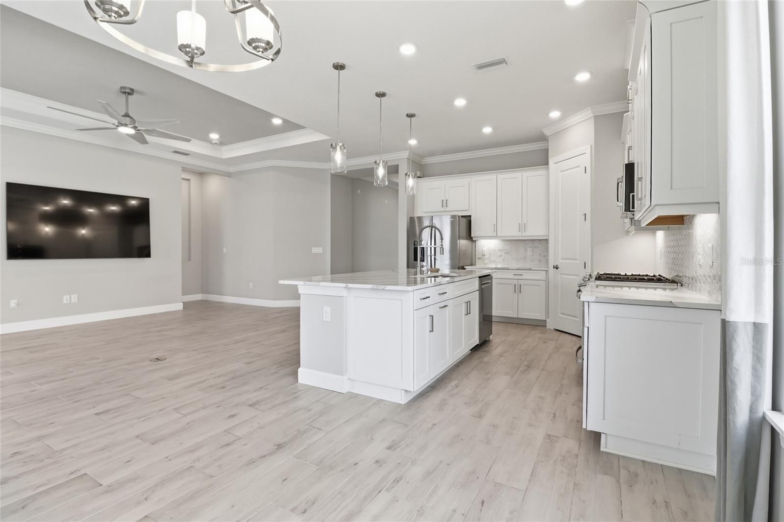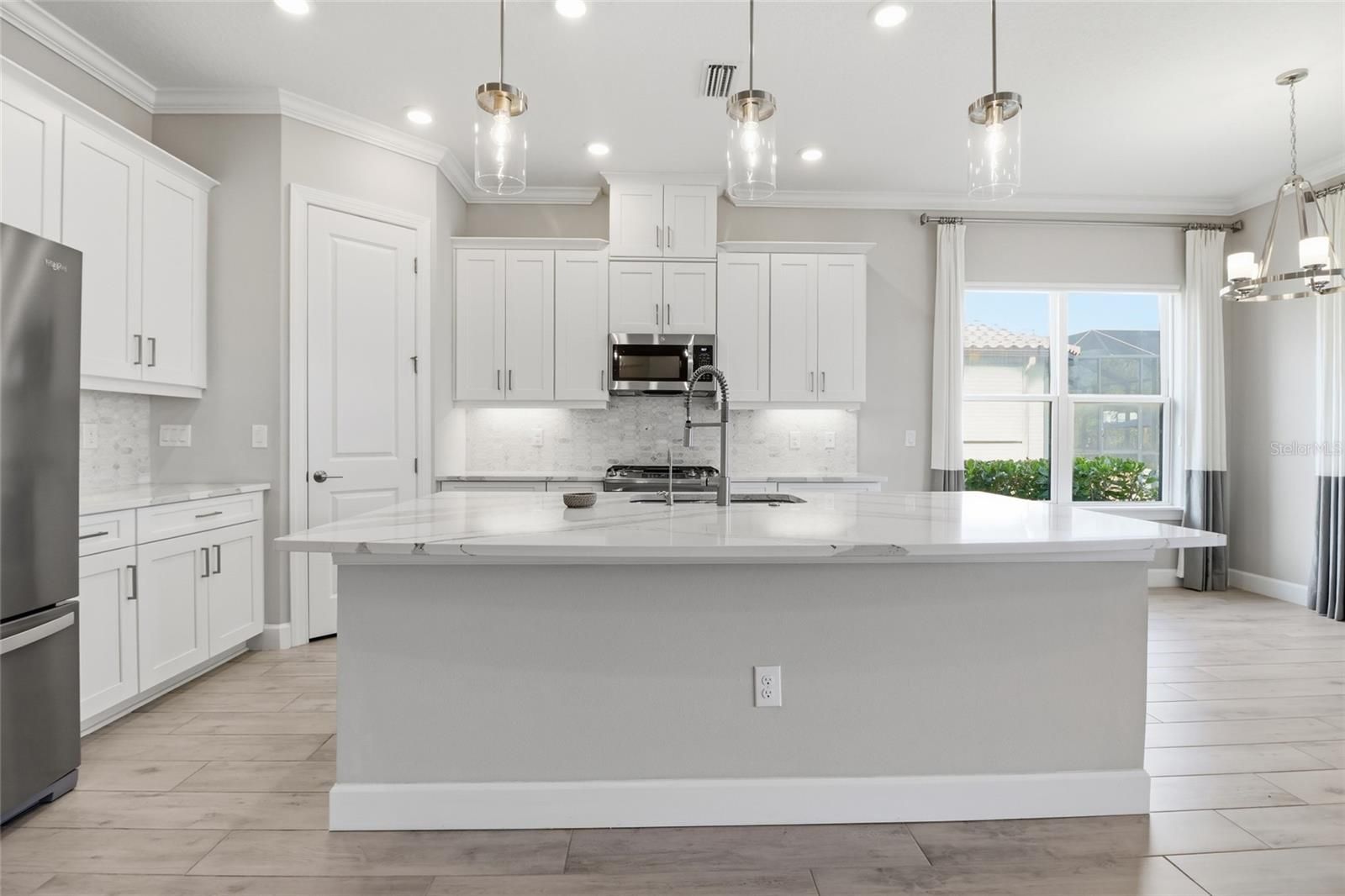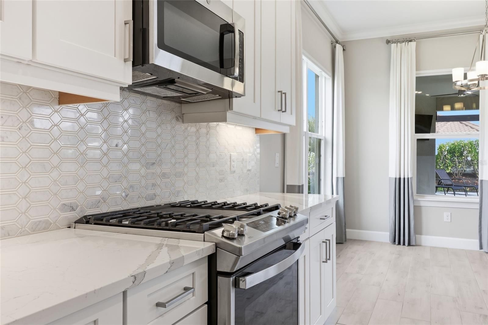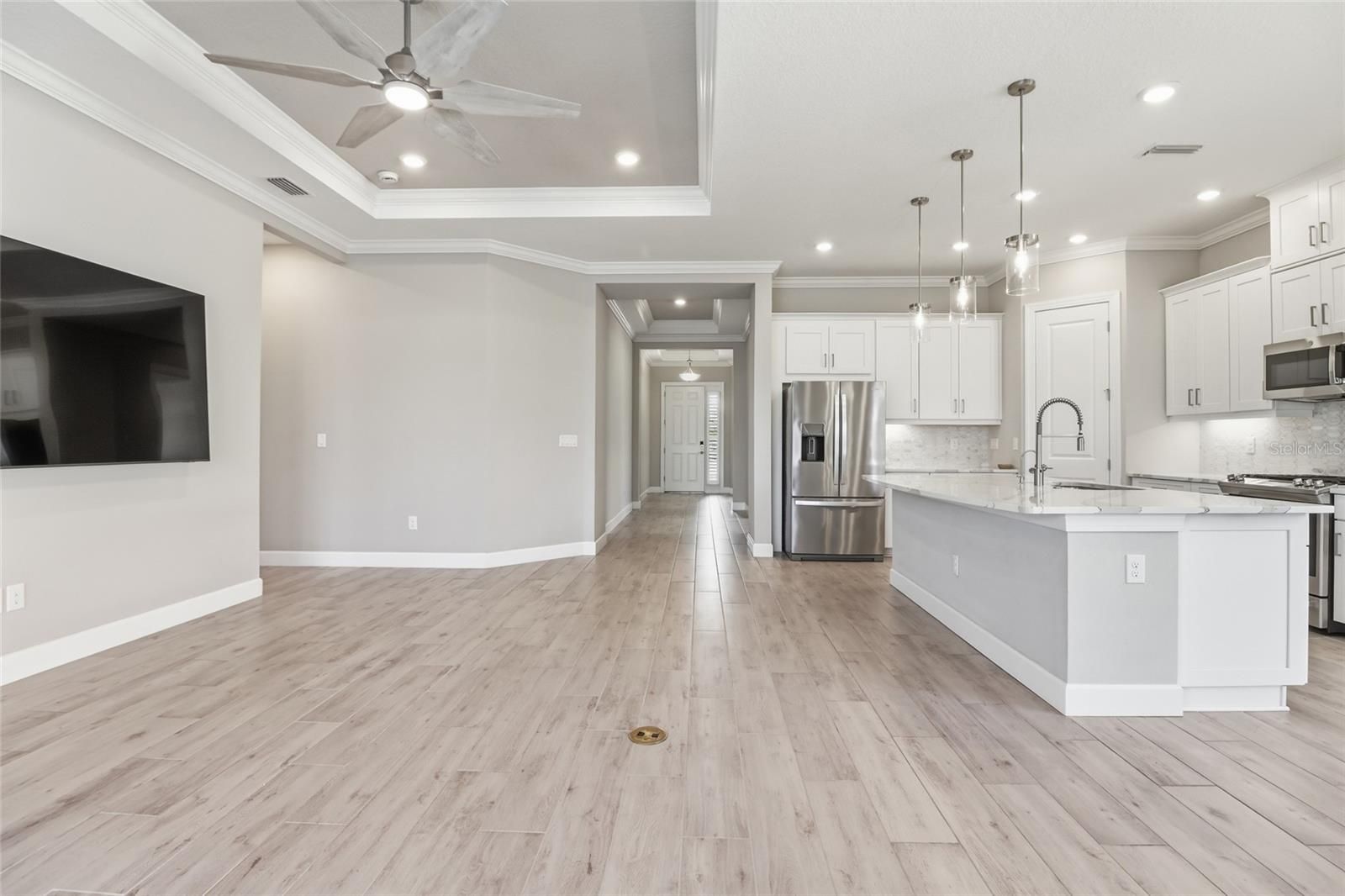 Experience the ultimate in resort-style living inside the highly sought-after Esplanade at Azario in Lakewood Ranch. This beautifully designed 3-bedroom, 3.5-bath residence with a versatile den/flex space offers over 2,100 square feet of thoughtfully designed living space, along with a private outdoor retreat featuring a heated pool and spa. Built in 2023, the home showcases a bright open-concept floor plan with elegant wood-look ceramic tile flooring, tray ceilings, and expansive living areas that seamlessly connect indoor and outdoor living. The chef-inspired kitchen is the heart of the home and features luxury GE Monogram appliances, a large center island, walk-in pantry, and abundant cabinetry, making it perfect for entertaining or everyday living. Pocketing sliding glass doors open to a spacious screened lanai, creating the ideal Florida lifestyle setting. Enjoy your private pool and spa, covered seating areas, and an outdoor kitchen designed for year-round relaxation and entertaining. The primary suite offers a peaceful retreat with a spacious bedroom and spa-like bath, while the additional bedrooms provide comfort and privacy for family or guests. The flexible den is perfect for a home office, media room, or additional guest space. Additional highlights include an extended garage providing extra space for storage, golf carts, or hobbies. Residents enjoy transferable access to Azario’s incredible resort-style amenities, including: Championship golf, Resort-style pool & Bahama Bar, Barrel House Bistro & Taproom, Fitness center & wellness studios, Tennis, pickleball & bocce courts, Scenic walking trails and social events. Live every day like you’re on vacation at Esplanade at Azario. Book your private showing today!