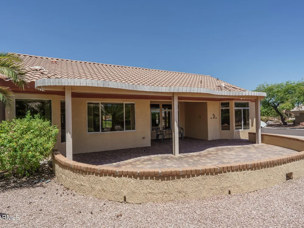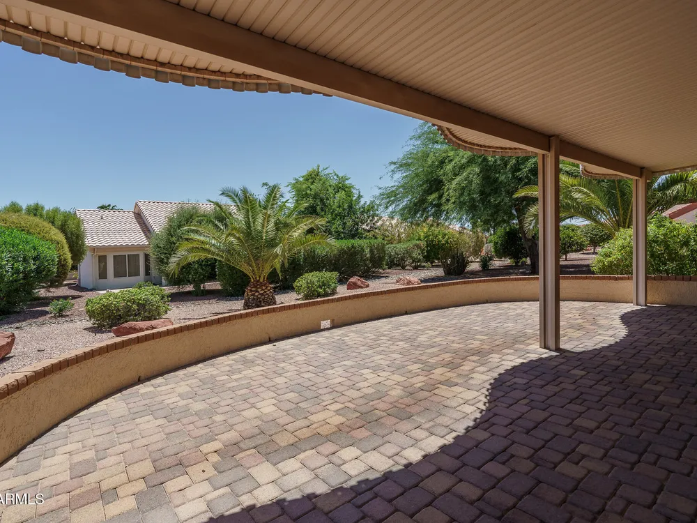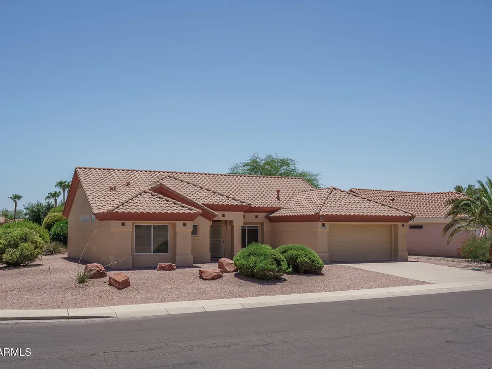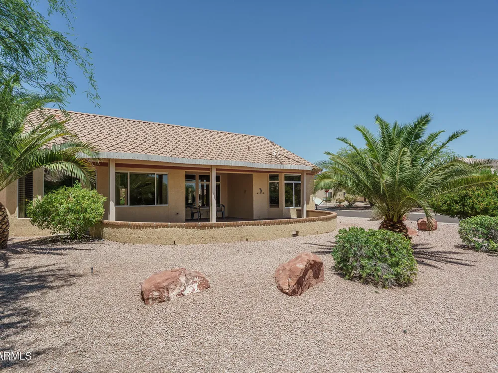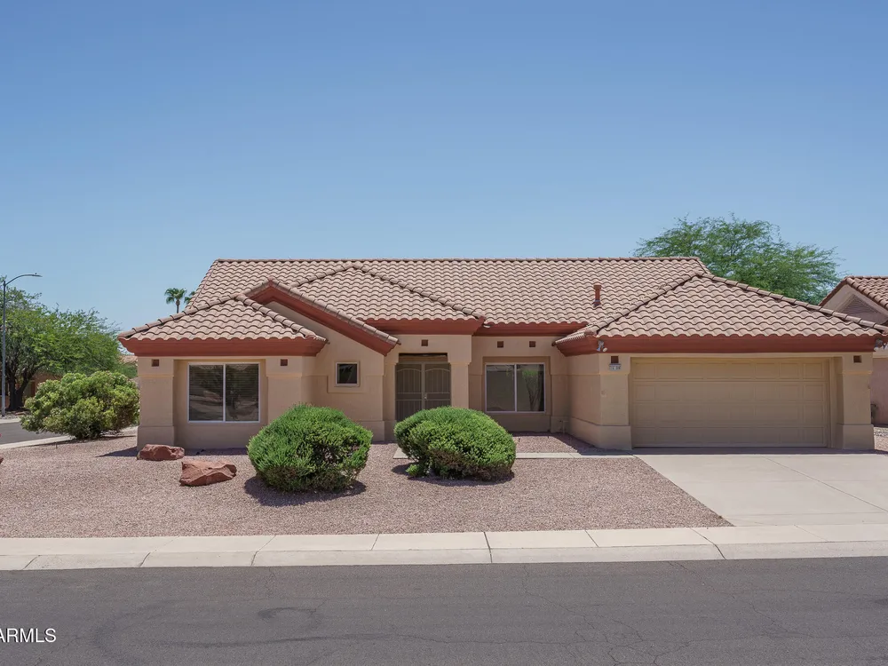 This move-in ready home on an oversized corner lot offers 2 bedrooms & 2 baths in 1693 SqFt. The floor plan features a living/dining room and separate family room open to the kitchen. The kitchen has newer stainless appliances, recessed lighting, wood laminate floors, and a casual dining area with a bay window. Sliding glass doors lead out to the covered paver patio and a large backyard with low maintenance desert landscaping. The primary bedroom has a bay window and an en-suite bath with dual sink vanity, oversized shower and a walk-in closet. The secondary bedroom also has a walk-in closet, and the hall bath includes a tub/shower combo. Other features include a newer A/C (2017), a flex/hobby room, double door entry with security doors, and a 2-car garage with laundry hookups and built -in cabinets. Sun City West offers 4 recreation centers with amazing amenities for your active adult lifestyle including indoor and outdoor pools, fitness centers, pickleball, bowling, horseshoe, mini-golf, and much more! For the golfers, there are 7 meticulously maintained courses including 4 regulation and 3 executive courses. Don't miss out on this great opportunity!