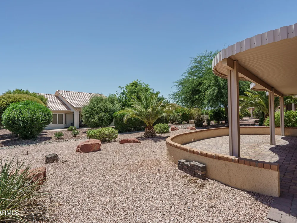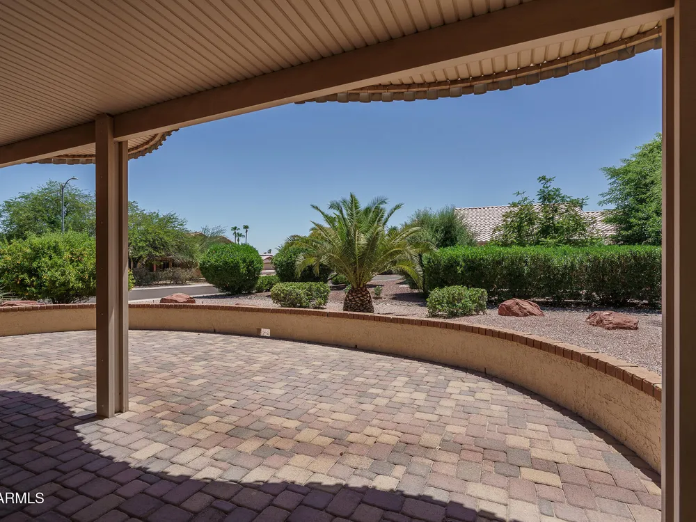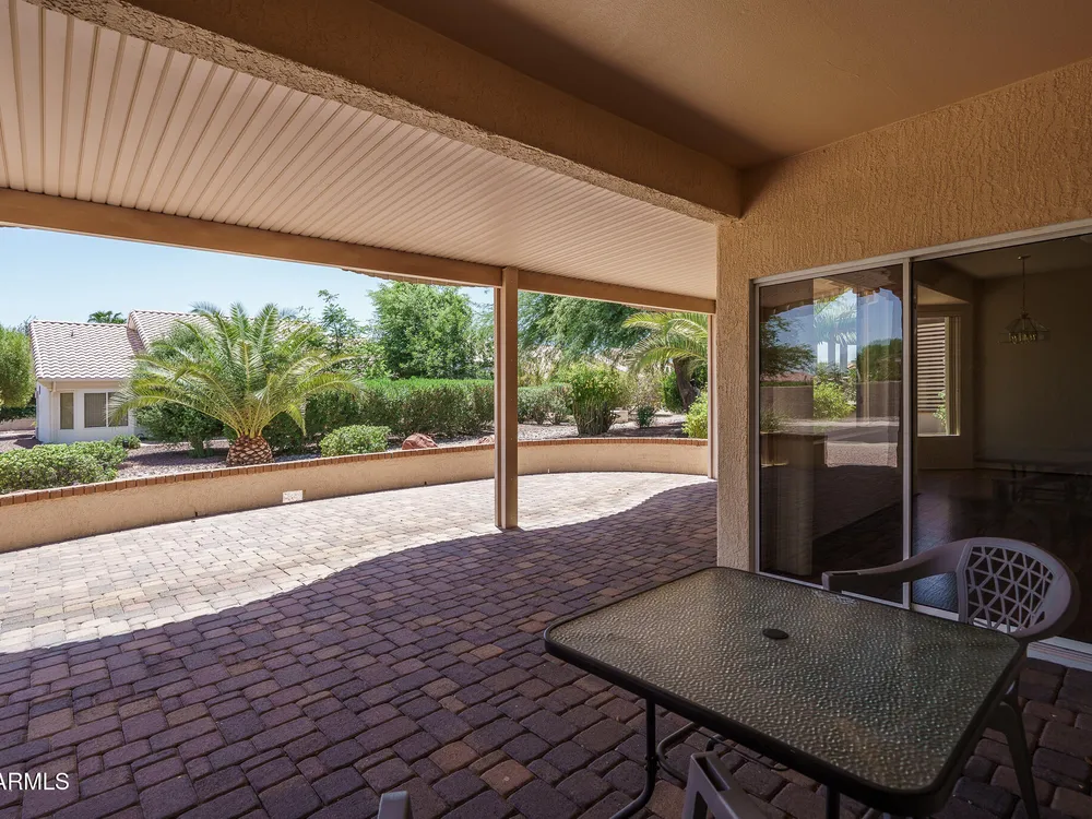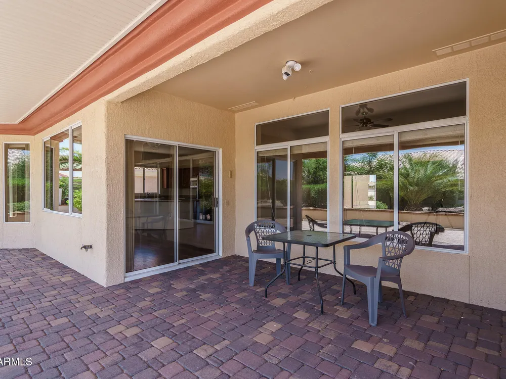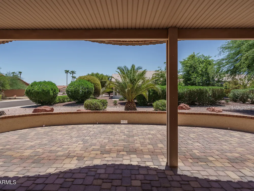 This move-in ready home on an oversized corner lot offers 2 bedrooms & 2 baths in 1693 SqFt. The floor plan features a living/dining room and separate family room open to the kitchen. The kitchen has newer stainless appliances, recessed lighting, wood laminate floors, and a casual dining area with a bay window. Sliding glass doors lead out to the covered paver patio and a large backyard with low maintenance desert landscaping. The primary bedroom has a bay window and an en-suite bath with dual sink vanity, oversized shower and a walk-in closet. The secondary bedroom also has a walk-in closet, and the hall bath includes a tub/shower combo. Other features include a newer A/C (2017), a flex/hobby room, double door entry with security doors, and a 2-car garage with laundry hookups and built -in cabinets. Sun City West offers 4 recreation centers with amazing amenities for your active adult lifestyle including indoor and outdoor pools, fitness centers, pickleball, bowling, horseshoe, mini-golf, and much more! For the golfers, there are 7 meticulously maintained courses including 4 regulation and 3 executive courses. Don't miss out on this great opportunity!