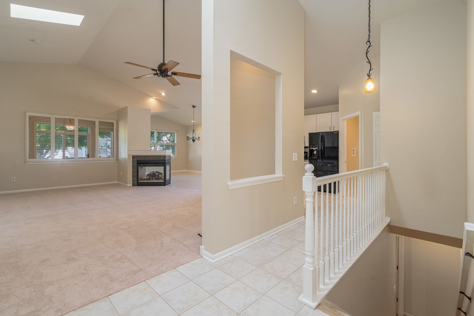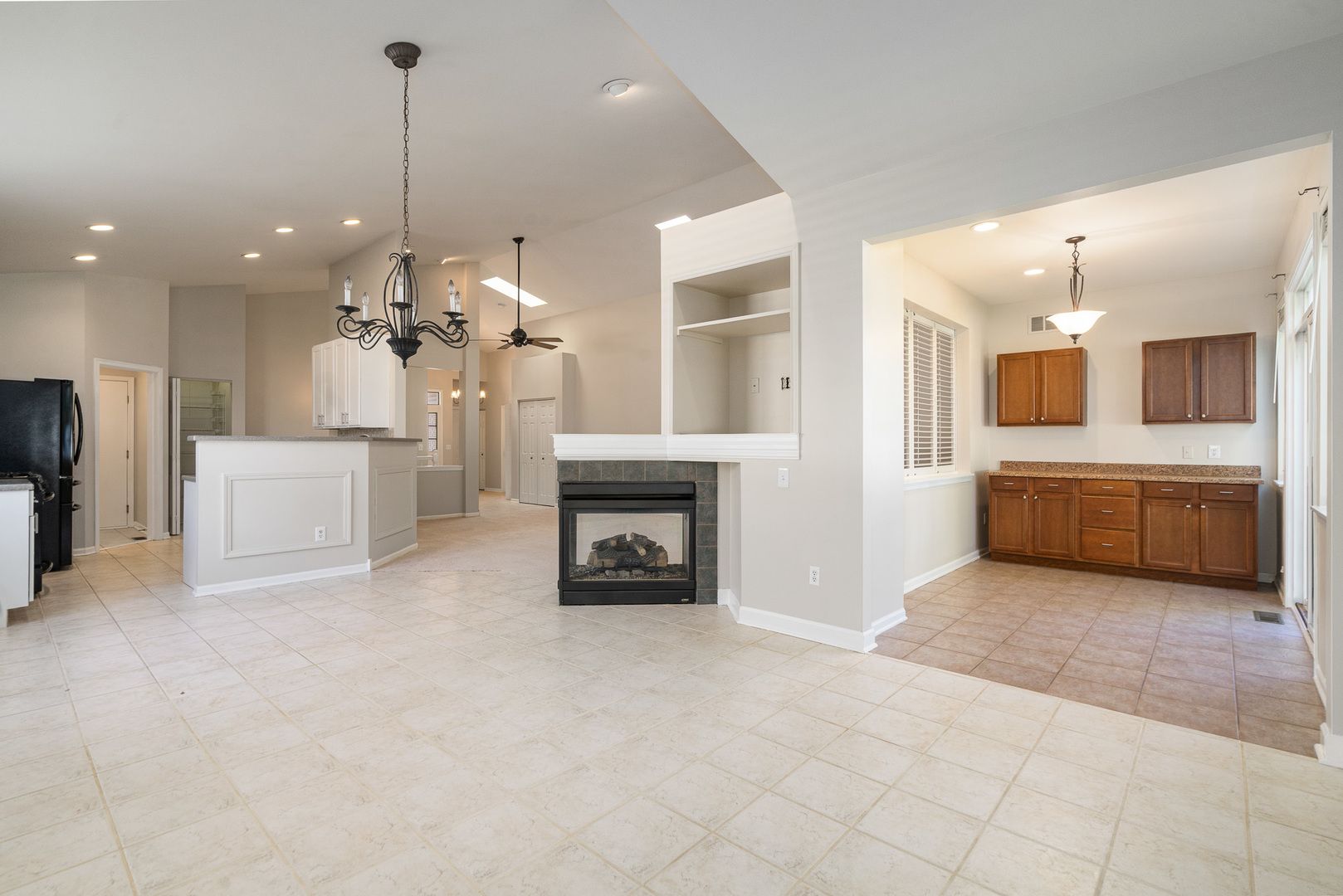 Welcome to this beautifully updated ranch in the highly sought-after Grand Haven 55+ community, designed for active adults who enjoy resort-style living. This sun-filled home boasts an open and airy layout with vaulted ceilings, skylights, and an inviting three-sided gas fireplace that warms both the great room and dining area. The updated kitchen features 42-inch white cabinets, a custom tile backsplash, and Corian countertops, perfect for preparing meals and entertaining. A large sunroom with a butler's pantry overlooks the expansive outdoor deck, offering a peaceful retreat. The vaulted master suite includes a spacious walk-in closet and a private bath with double raised vanities and an oversized shower. With three bedrooms (or 2 bedrooms with den/office), two baths, and a full unfinished basement with roughed-in plumbing, this home offers plenty of space and future potential. Additional highlights include a heated two-car garage and access to Grand Haven's top-tier clubhouse amenities, including pools, tennis courts (which also host pickleball games), a fitness center, ballroom, salon, arts and crafts room, and a plethora of engaging activities. Conveniently located just minutes away from shopping outlets and expressways!