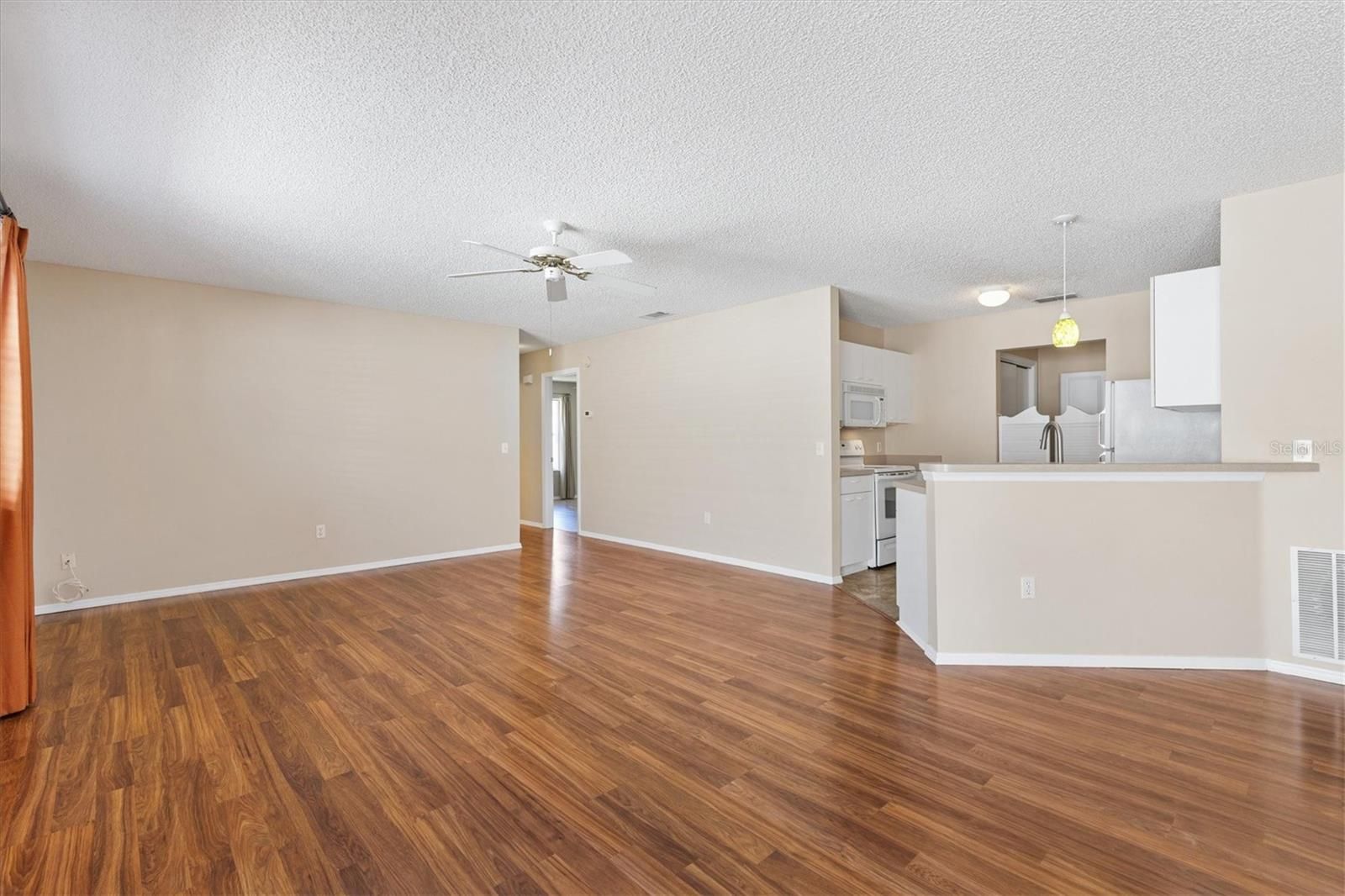 - Ceiling Fan(s), Kitchen/Family Room Combo, Living/Dining Room, Open Floorplan, Main Level Primary, Thermostat, Walk-In Closet(s)