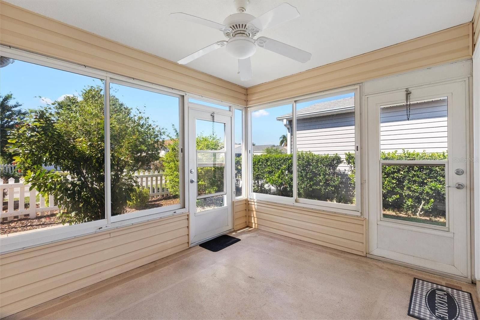 Bond Paid • New Interior Paint • Great Sumter County Location Welcome to this inviting Cabot Cove Patio Villa located in the Village of Alhambra in The Villages, Florida. Featuring 2 Bedrooms, 2 Bathrooms, and new interior paint, this home delivers a comfortable and move-in-ready living space enhanced by low-maintenance finishes and a prime central location. Step inside to find Luxury Vinyl Plank (LVP) flooring throughout—no carpet anywhere—for a clean, modern look and easy upkeep. The open-concept kitchen flows naturally into the dining and living areas, creating a bright and functional main living space that’s ideal for entertaining or everyday living. The kitchen includes plenty of cabinet storage and counter space, along with a convenient pantry located in the indoor laundry room, providing extra storage options. The Primary Suite features a walk-in closet and a private ensuite bath, while the guest bedroom offers ample closet space and is located adjacent to the guest bathroom with a tub/shower combination. This smart layout provides both privacy and flexibility for guests. Enjoy the Florida lifestyle year-round in the enclosed lanai, complete with sliding windows and screens, adding extra living space and comfort in any season. A side patio extends your outdoor enjoyment, perfect for morning coffee, grilling, or relaxing in the evening breeze. Practical features include new interior paint, Bond Paid, Vinyl Plank flooring, indoor laundry, and easy access to overflow parking. The home’s low-maintenance design allows more time to enjoy everything The Villages has to offer—golf, recreation, entertainment, and social activities—all easily reached by golf cart. Location is one of the standout features of this home. You’re approximately 2.0 miles to Spanish Springs Town Square, offering shopping, dining, and nightly entertainment; 4.0 miles by golf cart to Lake Sumter Landing, known for its waterfront restaurants and boutique shops; 1.0 mile to the Savannah Center, a hub for performing arts and recreation; and 2.3 miles to Glenview Champions Golf & Country Club. Several recreation centers and community pools are within 1 mile, while medical, grocery, and retail services are within 2 miles, many accessible by golf cart. This Cabot Cove Patio Villa offers the comfort, efficiency, and lifestyle that make The Villages so desirable. Whether used as a seasonal retreat or a year-round residence, this home delivers easy living, modern finishes, and access to everything that defines The Villages experience.