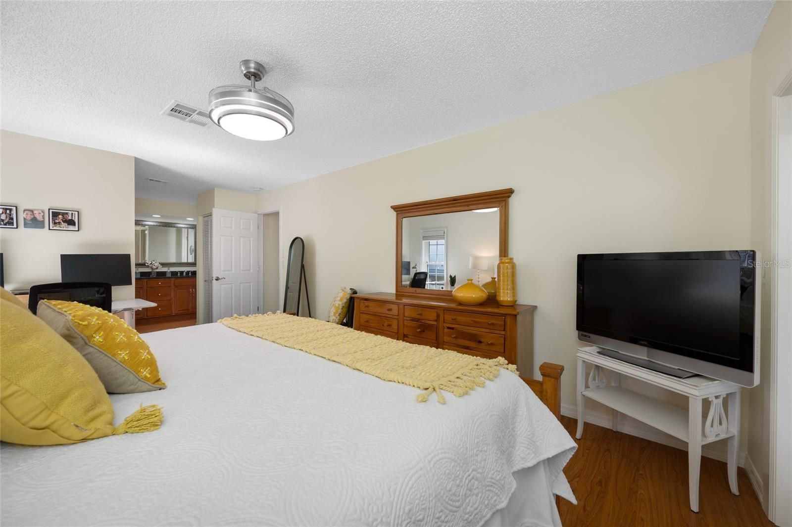 - Ceiling Fan(s), Eat-in Kitchen, Living/Dining Room, Open Floorplan, Main Level Primary, Smart Home, Solid Surface Counters, Solid-Wood Cabinets, Split Bedrooms, Stone Counters, Walk-In Closet(s), Window Treatments