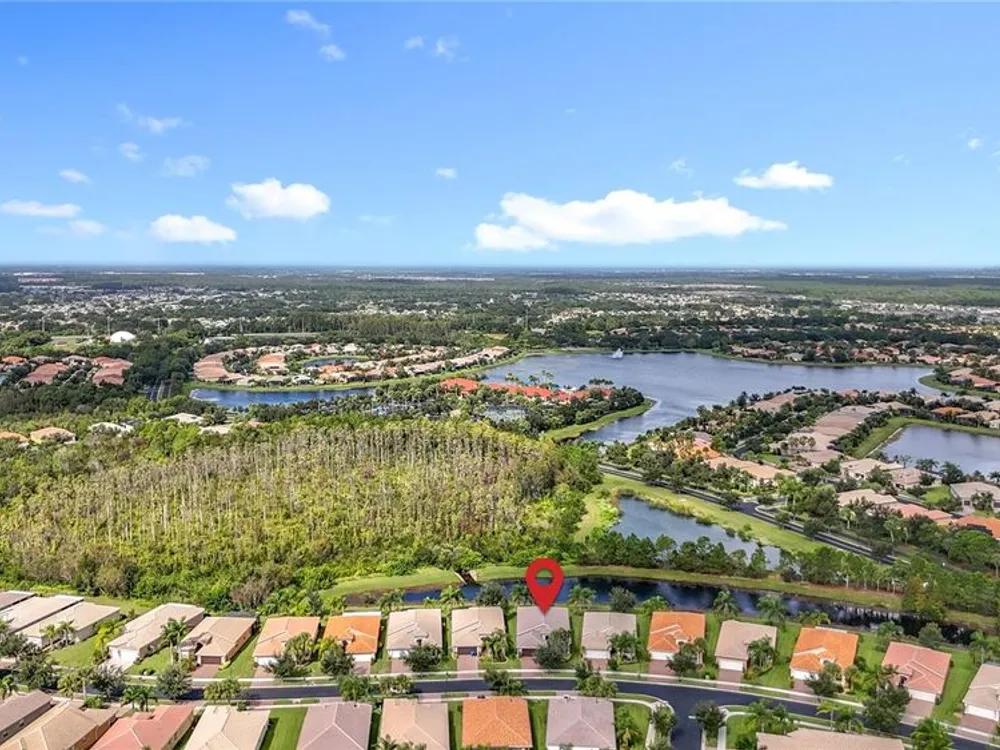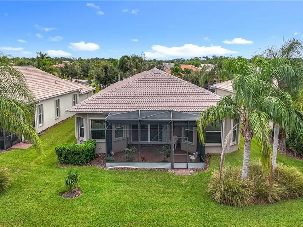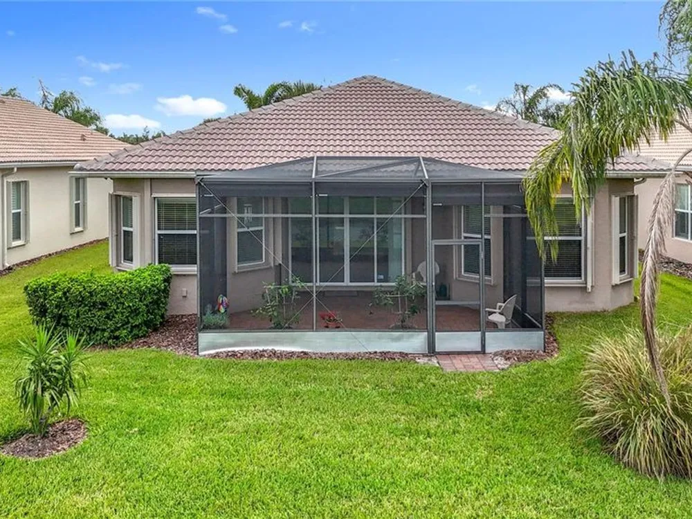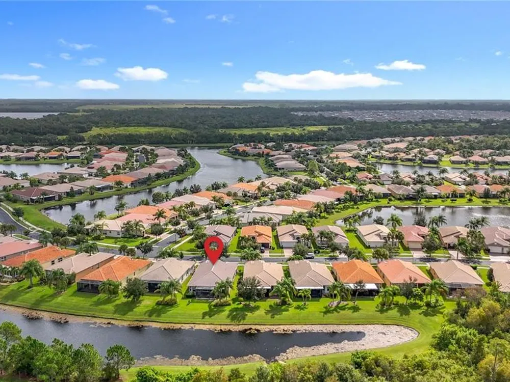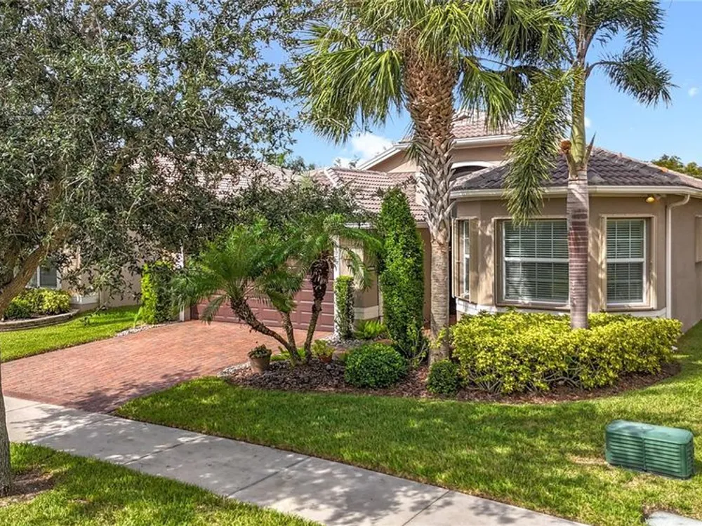 Welcome to this amazing 3 bedroom plus den, 3-bathroom Roma model single family home with many upgrades and lovely, serene water and nature preservation views! From here, there is only a short walk to all of the Valencia Lakes world class amenities catering specifically to an active adult lifestyle. The house is built on an oversized lot surrounded by colorful, tropical landscaping and white stone accent boarders contributing to an unforgettable impression of beauty and tranquility. The front entryway with screened enclosure features an 8 ft front door leading inside to a 14 ft tall spacious foyer flowing into an open floor plan – ideal for entertainment and daily living. Ceramic tiles are laid diagonally throughout the main areas. Elegant crown molding and coffered ceilings in the foyer and the primary bedroom add additional sophistication. The gourmet kitchen designed for entertaining boasts top-of-the-line quality maple cabinetry with soft closing drawers, over/under lighting and a custom-built pantry with sliding shelving. Upgraded stainless steel appliances include a stove, French type door refrigerator, dishwasher and microwave. The granite countertops with tastefully selected neutral backsplash feature a raised center island that expands to become a bar area with generous space for seating. A comfortable breakfast/dinette with a bay window facing the breathtaking water and preservation view is conveniently located just off the kitchen. A formal dining room located off the living room can comfortably accommodate large gatherings. The spacious primary bedroom offers two generously sized walk-in closets with custom built shelving and drawers. The ensuite bath has two separate vanities with granite countertops, walk-in shower with decorative listello and built-in corner bench for relaxation. The 8ft sliding glass door of the Great Room leads to a beautiful, large extended lanai. Additional upgrades include water softener system, garage pro-wet/dry wall-mount vacuum, accordion hurricane shutters and gutters around the entire structure of the house. Valencia Lakes is a 55 and better active adult golf cart community with 40-acre waterfront outdoor recreation area with resort-style heated pool, lap and resistance pool, 40,000 sq. ft. clubhouse, deluxe Bistro is to come soon, har-tru tennis courts, gym, half-court basketball, pickleball and bocce courts, dog park, baseball park, community garden, hundreds of clubs and activities, RV/boat storage area. Over 100 acres set aside as nature preserves; enjoy the quiet and solitude of peaceful views, birds & wildlife by the water. Great sense of community with great friendly neighbors. Please call for a private showing and experience this wonderful community for yourself. Tampa, St. Pete and Sarasota 30-45 minutes away. Close to the airport, medical facilities, shopping and golf.