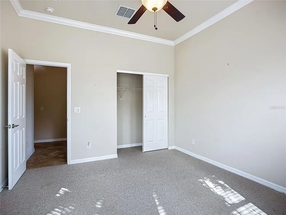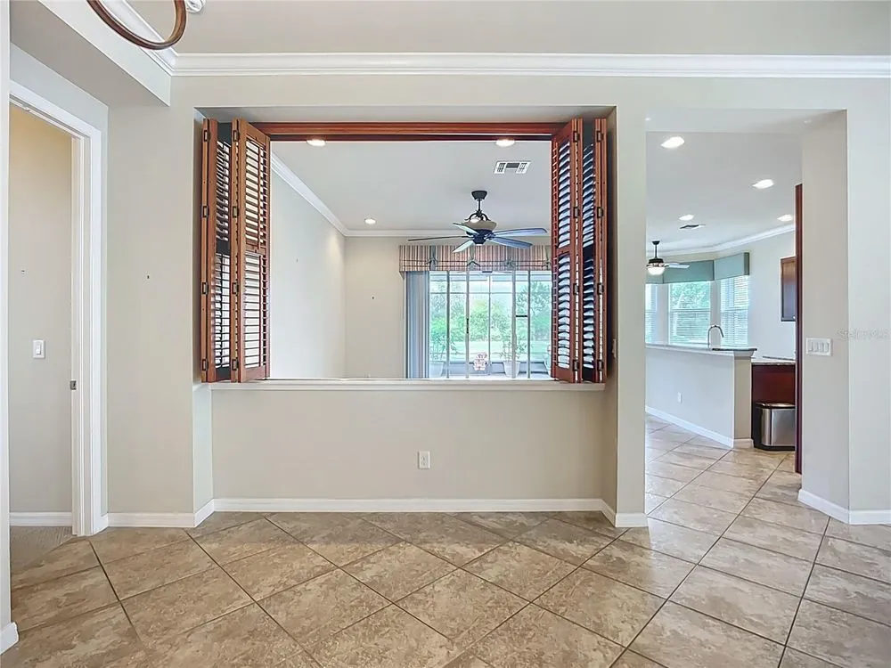 - Built-in Features, Ceiling Fan(s), Coffered Ceiling(s), Crown Molding, Eat-in Kitchen, High Ceilings, Open Floorplan, Main Level Primary, Solid Surface Counters, Solid-Wood Cabinets, Split Bedrooms, Stone Counters, Thermostat, Walk-In Closet(s), Window Treatments