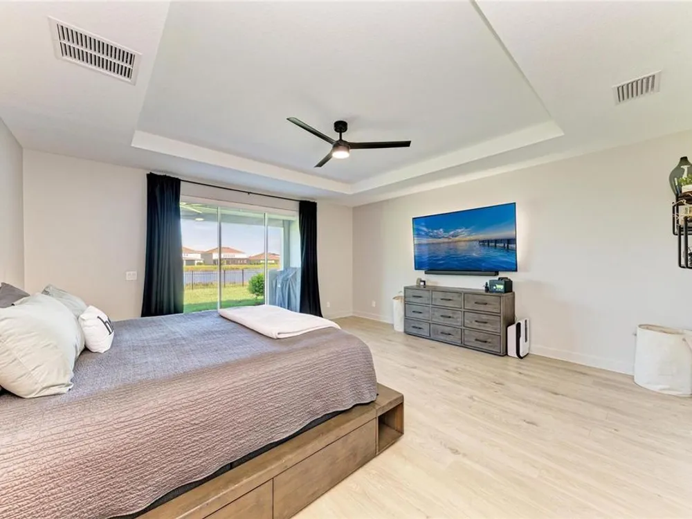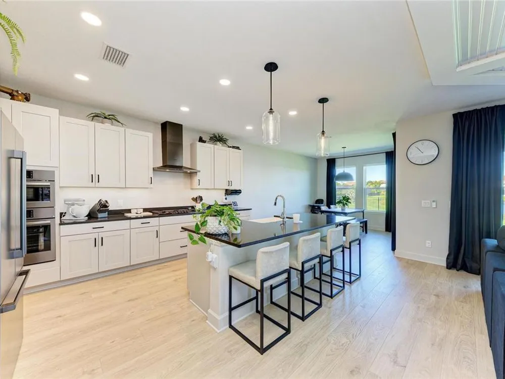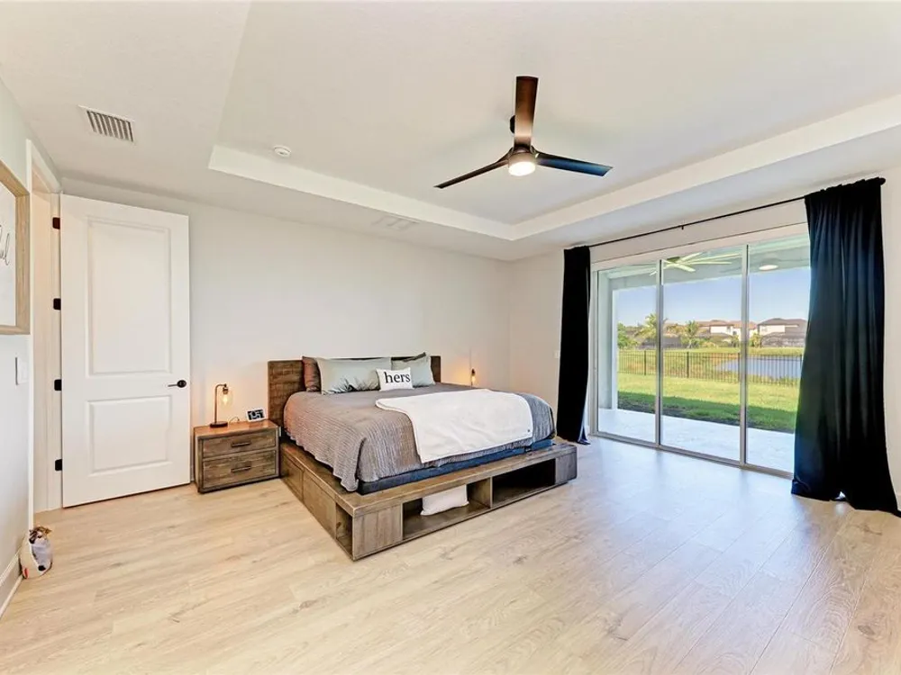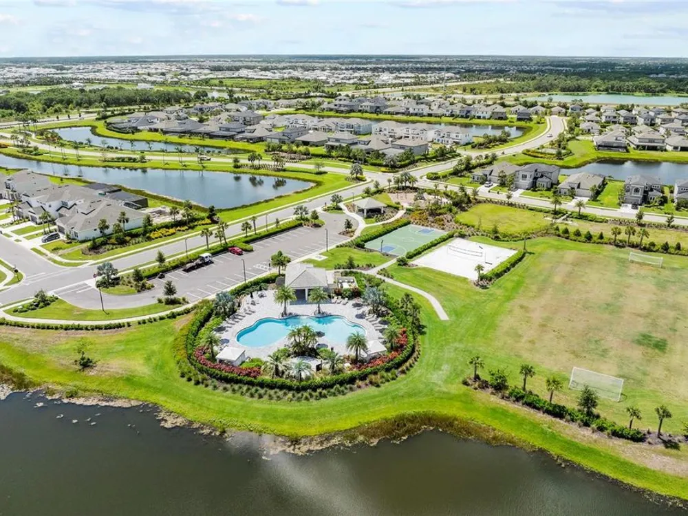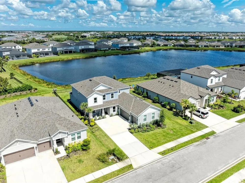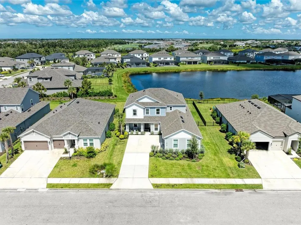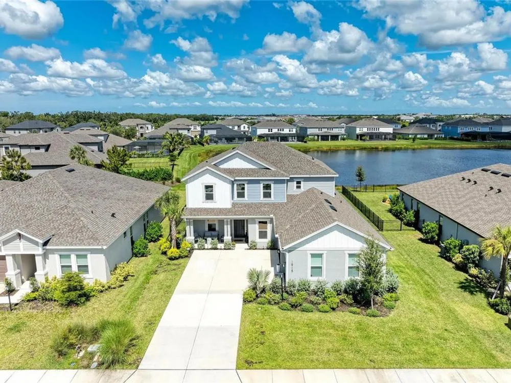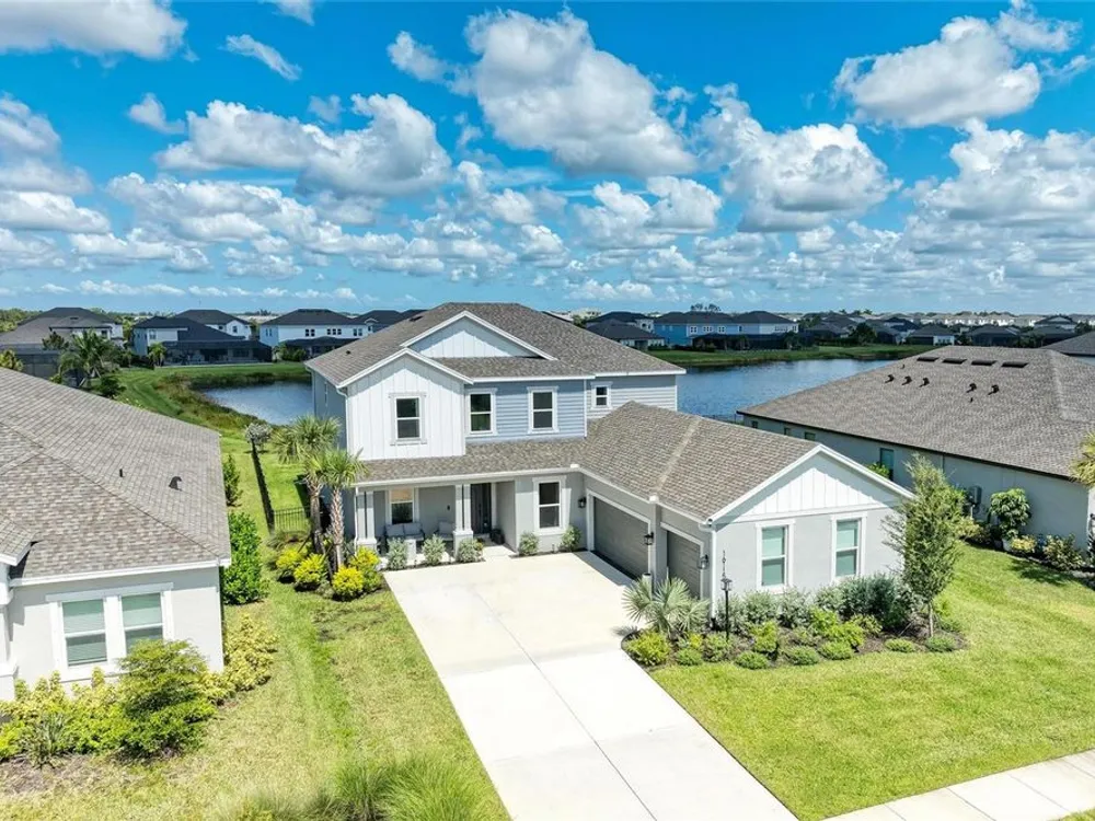 One or more photo(s) has been virtually staged. Welcome home to this ABSOLUTELY STUNNING dream home quietly nestled on a breathtaking lake view in the heart of Lakewood Ranch. One of the most sought after models in the area, this Sand Key offers some amazing features and upgrades!!! Step into luxury living in this spacious 5-bedroom, 4.5-bathroom home located in the desirable Park East at Azario, Lakewood Ranch. This stunning two-story residence features the primary bedroom conveniently situated on the ground floor, offering a private retreat. The home boasts elegant luxury vinyl flooring throughout, creating a seamless flow and modern aesthetic. This modern sleek home has been upgraded from head to toe. Featuring a gorgeous chefs gourmet kitchen with beautiful stone countertops and matte black appliances. Enjoy breathtaking views of the lake as you enjoy your morning coffee out in your extended lanai. No expense spared with this model home! Whole house water filtration provides you with some of the cleanest water on the planet!! A courtyard driveway is wrapped around an oversized 3-car garage and complete with a custom epoxy floor that's sure to make any car enthusiast want this one!!. Ceiling fans throughout, smart blinds and pre wired ethernet make this one of the smartest homes on the block!! As a resident of the Number 1 best-selling multigenerational community in the country, you will have access to a wealth of incredible amenities, including a refreshing pool & spa, sand volleyball court, basketball court, a spacious dog park, and a playground. Spend your weekends on the corn hole lawn or the sports field. Lakewood Ranch is perfectly situated near a variety of world-class shopping, dining, and entertainment options. You will be just moments away from Lakewood Main Street, University Town Center, and the vibrant downtown Sarasota. With easy access to I-75, beautiful Gulf Coast beaches, top-rated schools, and medical facilities, this home offers the perfect blend of luxury, convenience, and community. Don't miss the opportunity to own this exceptional residence that truly embodies the best of Florida living! One or more photos virtually staged for ideas.