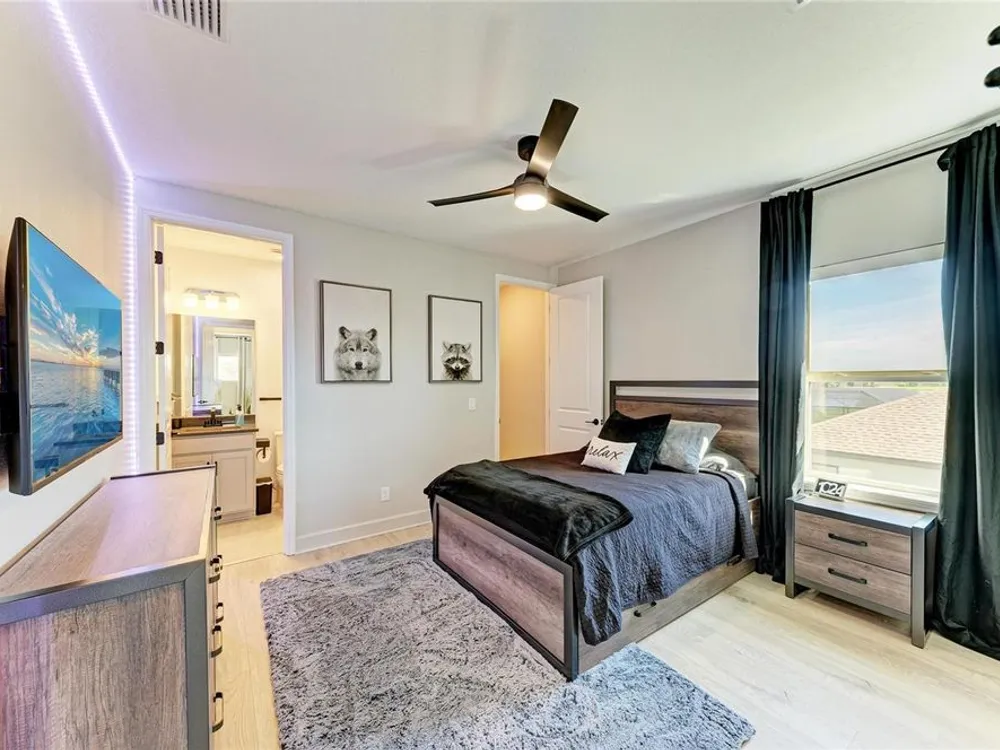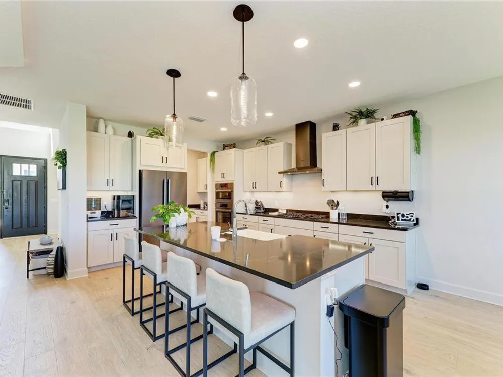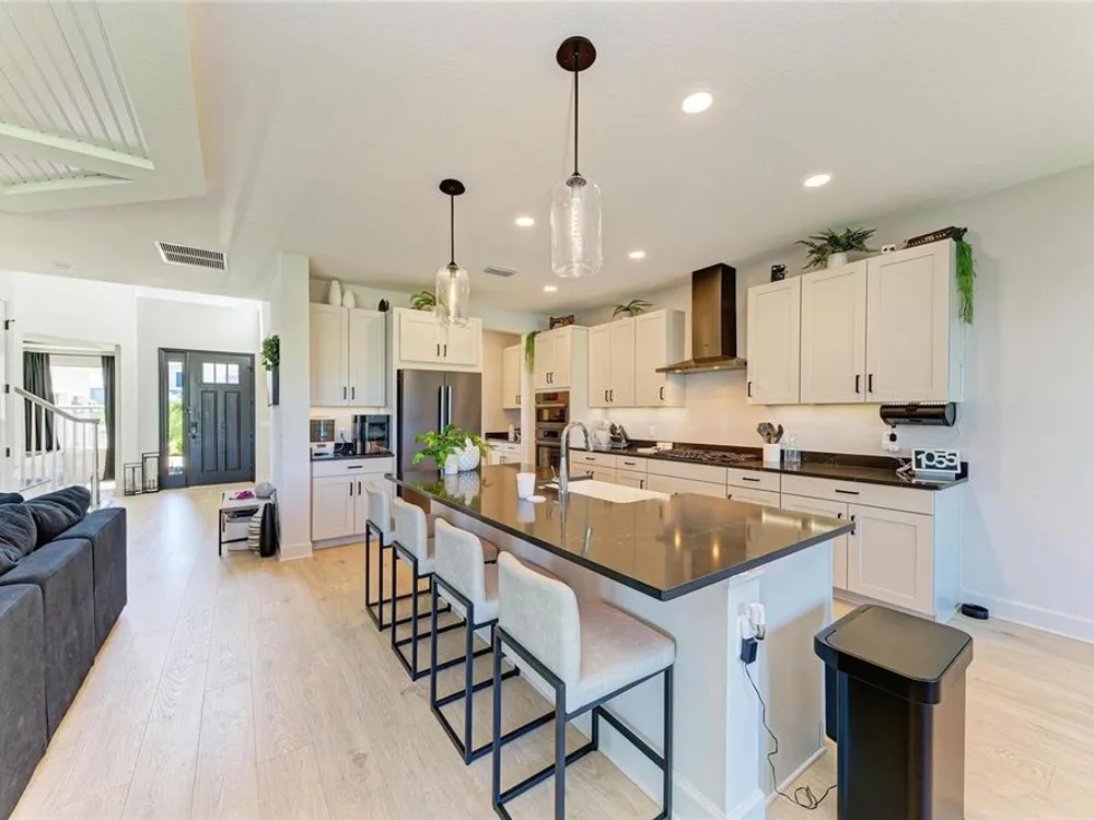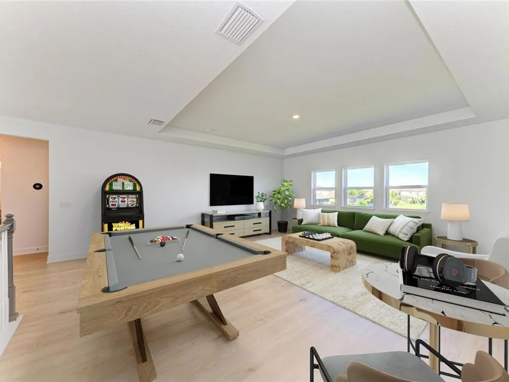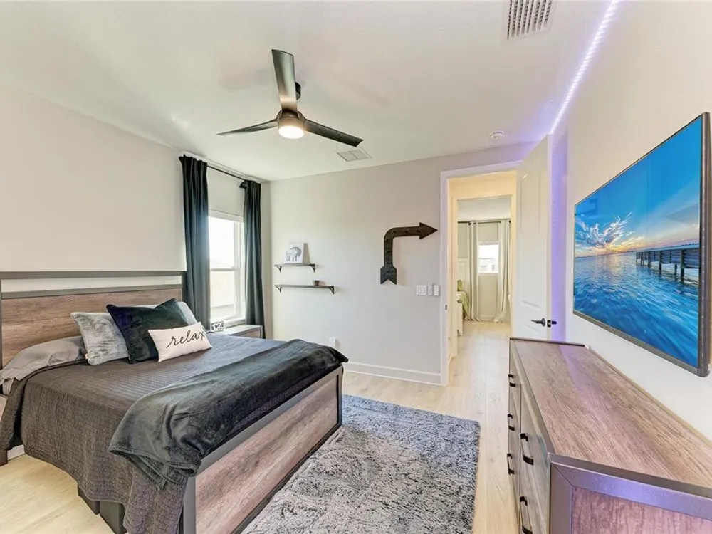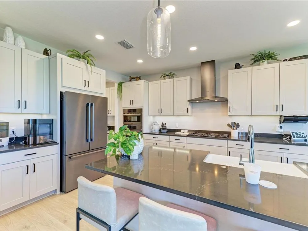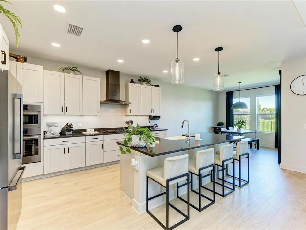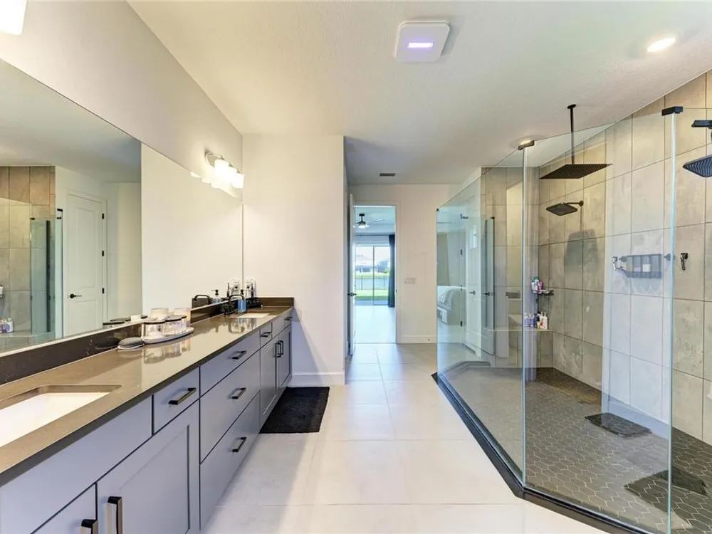 One or more photo(s) has been virtually staged. Welcome home to this ABSOLUTELY STUNNING dream home quietly nestled on a breathtaking lake view in the heart of Lakewood Ranch. One of the most sought after models in the area, this Sand Key offers some amazing features and upgrades!!! Step into luxury living in this spacious 5-bedroom, 4.5-bathroom home located in the desirable Park East at Azario, Lakewood Ranch. This stunning two-story residence features the primary bedroom conveniently situated on the ground floor, offering a private retreat. The home boasts elegant luxury vinyl flooring throughout, creating a seamless flow and modern aesthetic. This modern sleek home has been upgraded from head to toe. Featuring a gorgeous chefs gourmet kitchen with beautiful stone countertops and matte black appliances. Enjoy breathtaking views of the lake as you enjoy your morning coffee out in your extended lanai. No expense spared with this model home! Whole house water filtration provides you with some of the cleanest water on the planet!! A courtyard driveway is wrapped around an oversized 3-car garage and complete with a custom epoxy floor that's sure to make any car enthusiast want this one!!. Ceiling fans throughout, smart blinds and pre wired ethernet make this one of the smartest homes on the block!! As a resident of the Number 1 best-selling multigenerational community in the country, you will have access to a wealth of incredible amenities, including a refreshing pool & spa, sand volleyball court, basketball court, a spacious dog park, and a playground. Spend your weekends on the corn hole lawn or the sports field. Lakewood Ranch is perfectly situated near a variety of world-class shopping, dining, and entertainment options. You will be just moments away from Lakewood Main Street, University Town Center, and the vibrant downtown Sarasota. With easy access to I-75, beautiful Gulf Coast beaches, top-rated schools, and medical facilities, this home offers the perfect blend of luxury, convenience, and community. Don't miss the opportunity to own this exceptional residence that truly embodies the best of Florida living! One or more photos virtually staged for ideas.