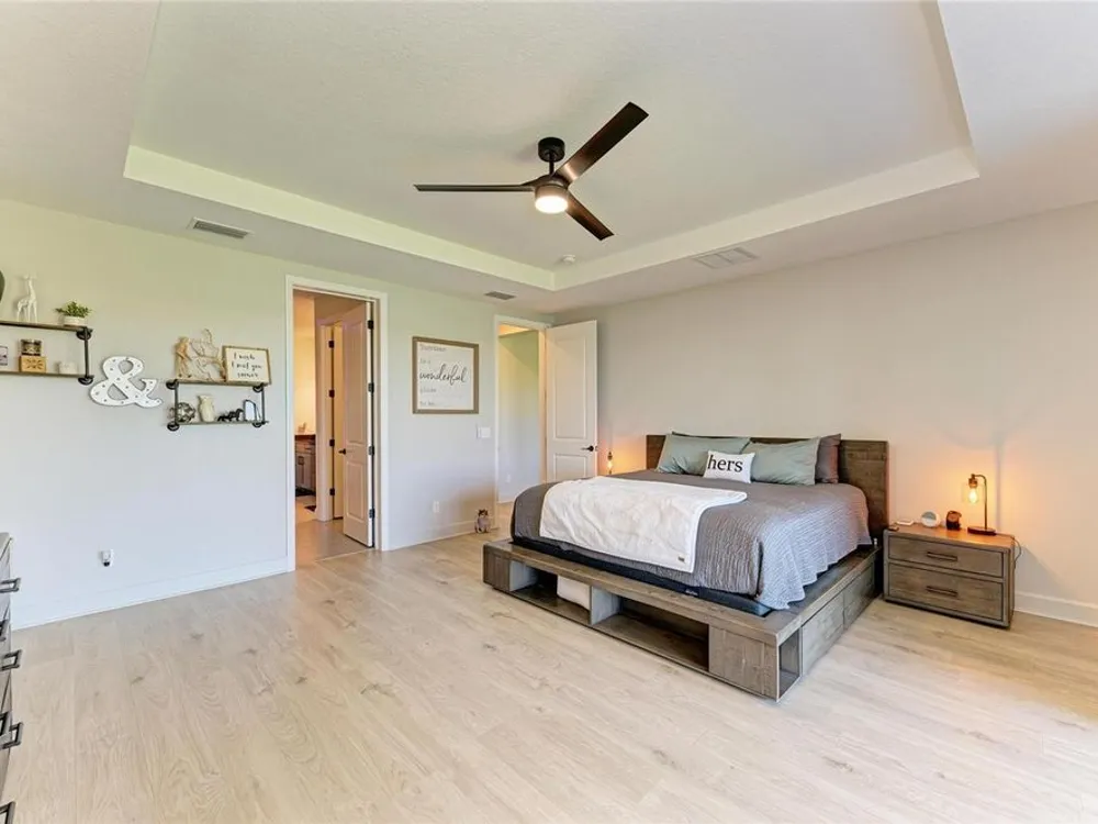- Ceiling Fan(s), Kitchen/Family Room Combo, Main Level Primary, Tray Ceiling(s)
