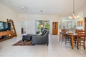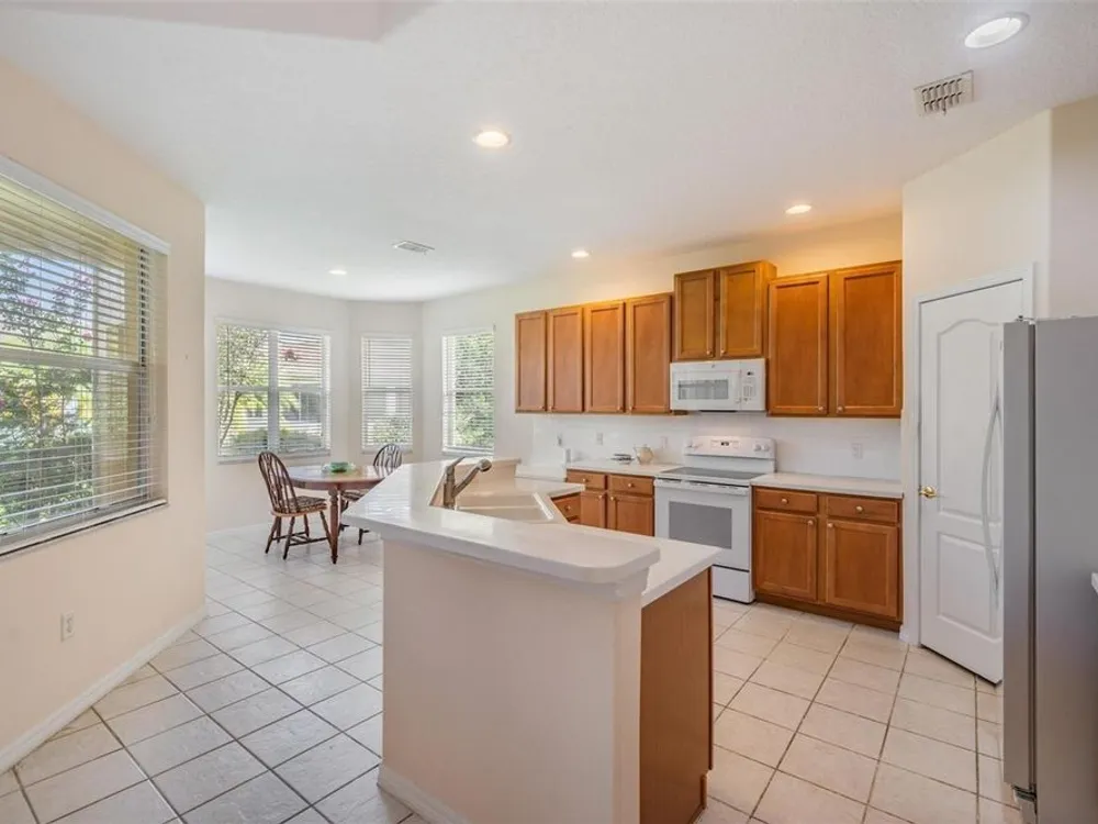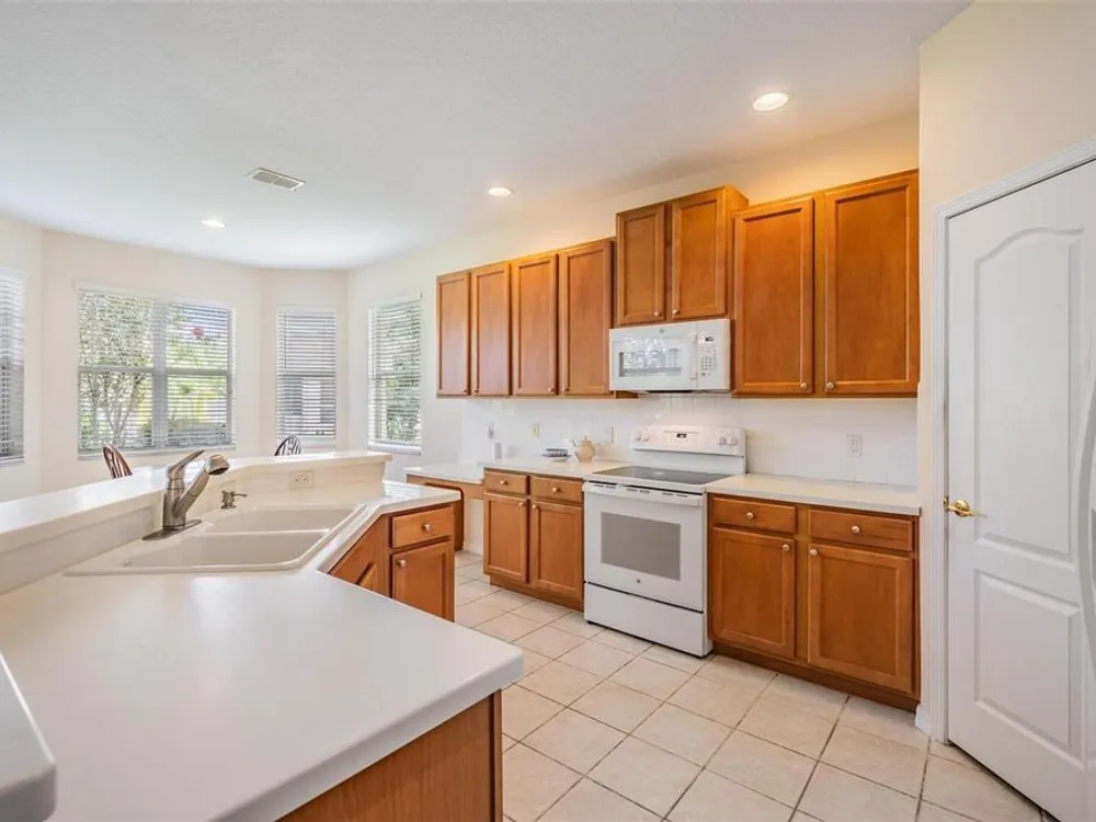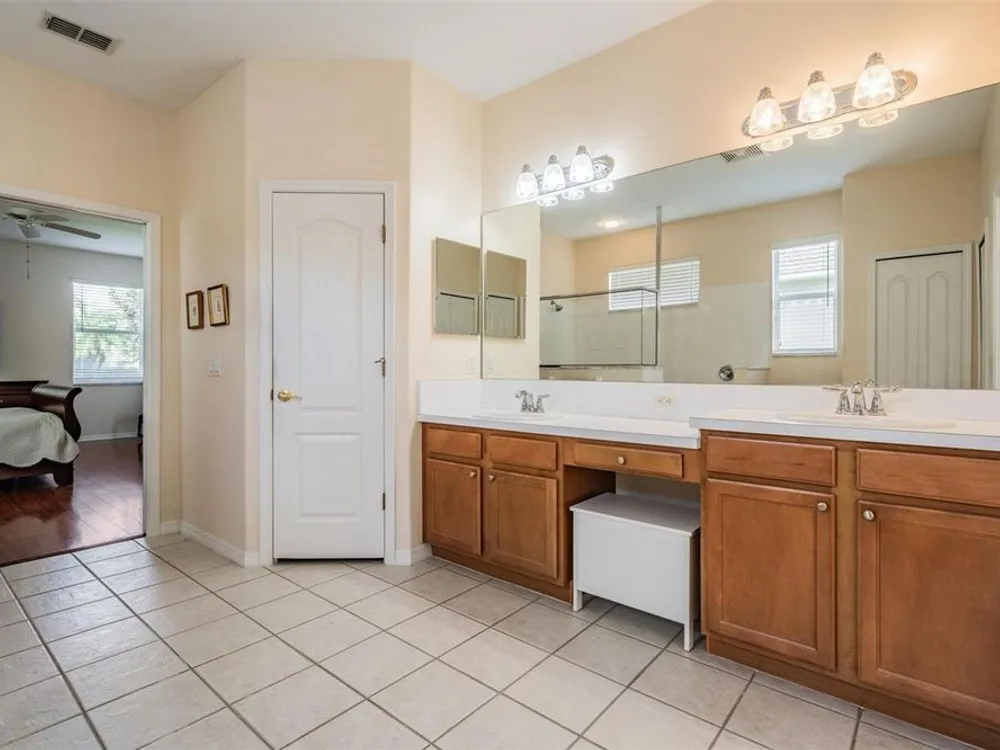 Welcome to Lakestone Drive - one of the most desirable streets that are extra wide with long driveways! HVAC REPLACED 2021, BRAND NEW ROOF 8/2025. This is a “traditional” style home, meaning a wider footprint, and a wider lot. TRUE 3 bedroom home with the ever so popular open floor plan and great news, no carpet. The entire home is a soothing neutral color palette and offers a seamless view of the lanai through its sliding glass doors. The heart of this home, the kitchen, impresses with extra counter and cabinet space, along with breakfast bar seating. The breakfast nook , featuring panoramic windows to enjoy slow mornings. Escape to the oversized primary suite. The thoughtful primary bathroom enhances relaxation with its open, step-in shower, linen closet, and double vanity providing additional storage options. The secondary bedrooms are versatile, ready to accommodate your unique lifestyle needs with ease. Outside, the screened-in porch beckons as the perfect spot to unwind, accessible from both the living room and primary bedroom, offering a seamless blend of indoor-outdoor living. With an extra long driveway for visitors, this home is located in a sought-after area of the neighborhood - come see why Lakestone is a great place to be! 55 & FUN - LIVE THE HERITAGE SPRINGS LIFESTYLE - Resort style living at its absolute finest! Clubhouse with restaurant and bar, fitness, tennis, golf, cards, billiards, dancing and more! SUPERB TRINITY LOCATION, CLOSE TO BEACHES, DINING, SHOPPING, MEDICAL AN
