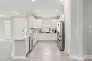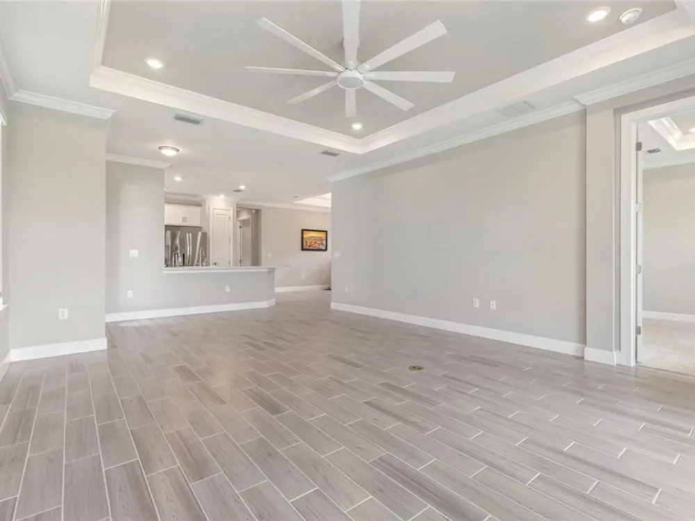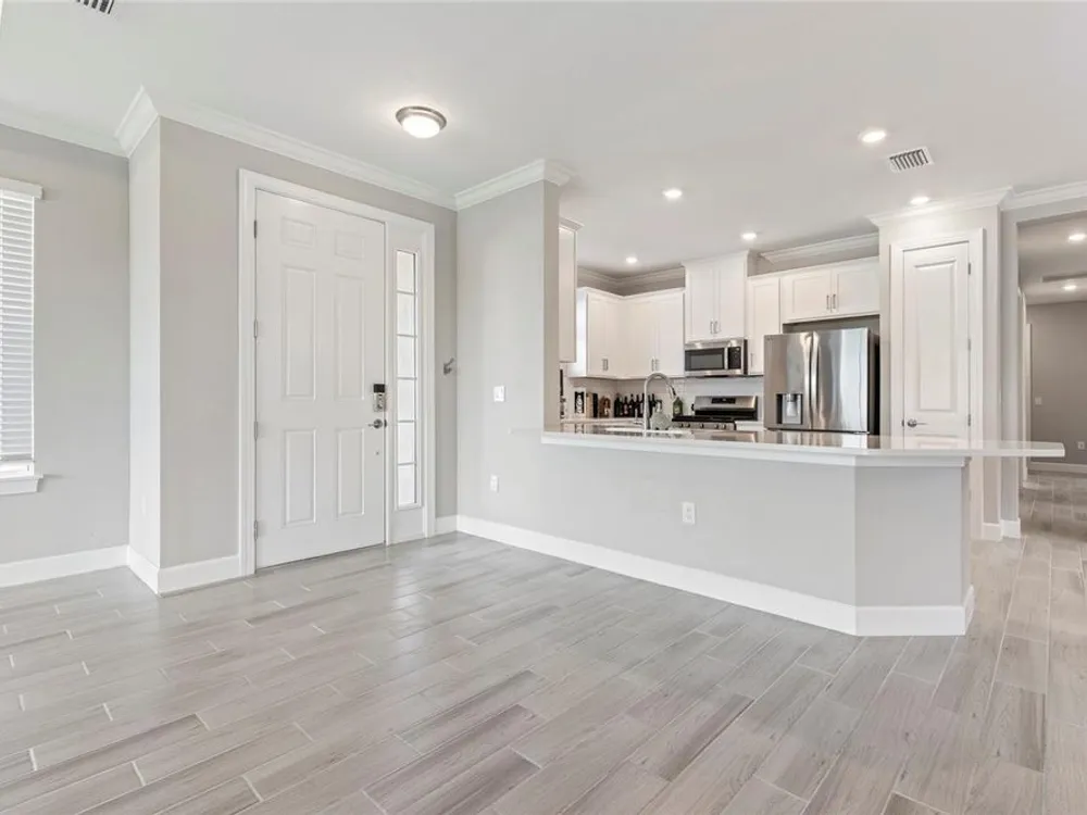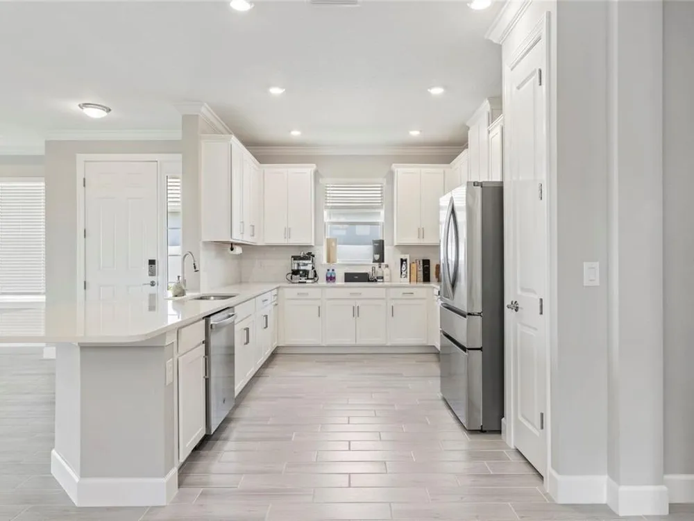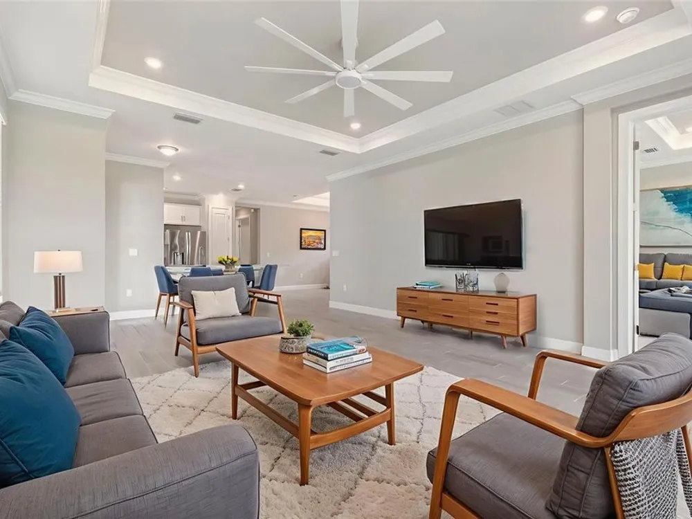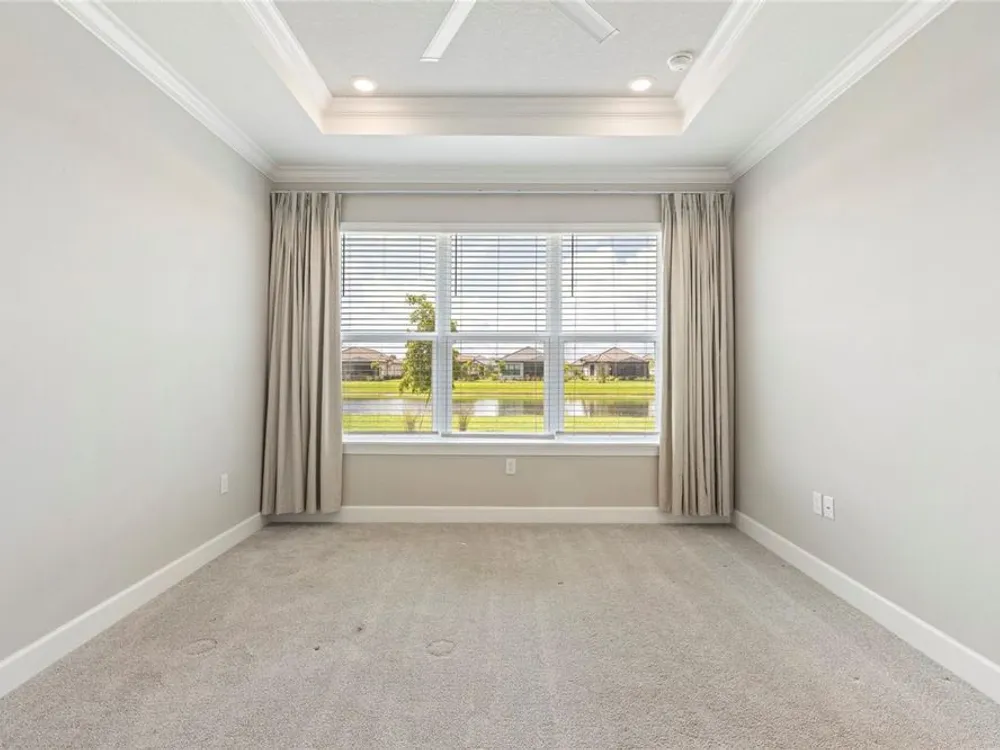 Major Price Reduction – Don’t Miss This Rare Opportunity! Enjoy breathtaking water views and a premium golf-deeded lot without waiting for new construction! Welcome to resort-style living in the prestigious, gated community of Esplanade at Azario. This immaculate 3-bedroom, 2-bath Arrezo model offers 1,926 sq. ft. of thoughtfully designed, maintenance-free living—where every day feels like a vacation. Built in 2024, this pond-facing home features a flat tile roof and is covered under a transferable builder warranty through October 2025. The home is pre-plumbed for a pool, making it easy to create your dream outdoor oasis—perfect for those serene Florida sunsets. Step inside to a bright, open layout enhanced by tray ceilings in the primary suite, living room, and flex space, along with crown molding throughout. The gourmet kitchen showcases shaker cabinets, quartz countertops, a gas range, subway tile backsplash, and stainless steel appliances. Included are an LG refrigerator and Samsung Bespoke washer and dryer for added convenience. The primary suite is a true retreat, offering a spacious walk-in closet, dual vanities, an oversized shower, and a private water closet. The two additional bedrooms and flex room are positioned for optimal privacy—ideal for guests or a home office. Located just minutes from world-class beaches, shopping, dining, and entertainment, this home offers more than a place to live—it delivers the Florida lifestyle you've been dreaming of. Schedule your showing today—and start living like you're on vacation tomorrow!