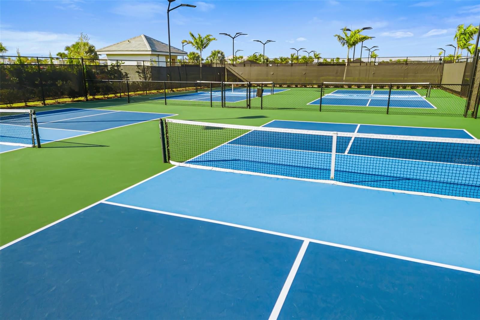 - Includes: Clubhouse, Fence Restrictions, Fitness Center, Gated, Golf Course, Pickleball, Pool, Tennis Court(s)