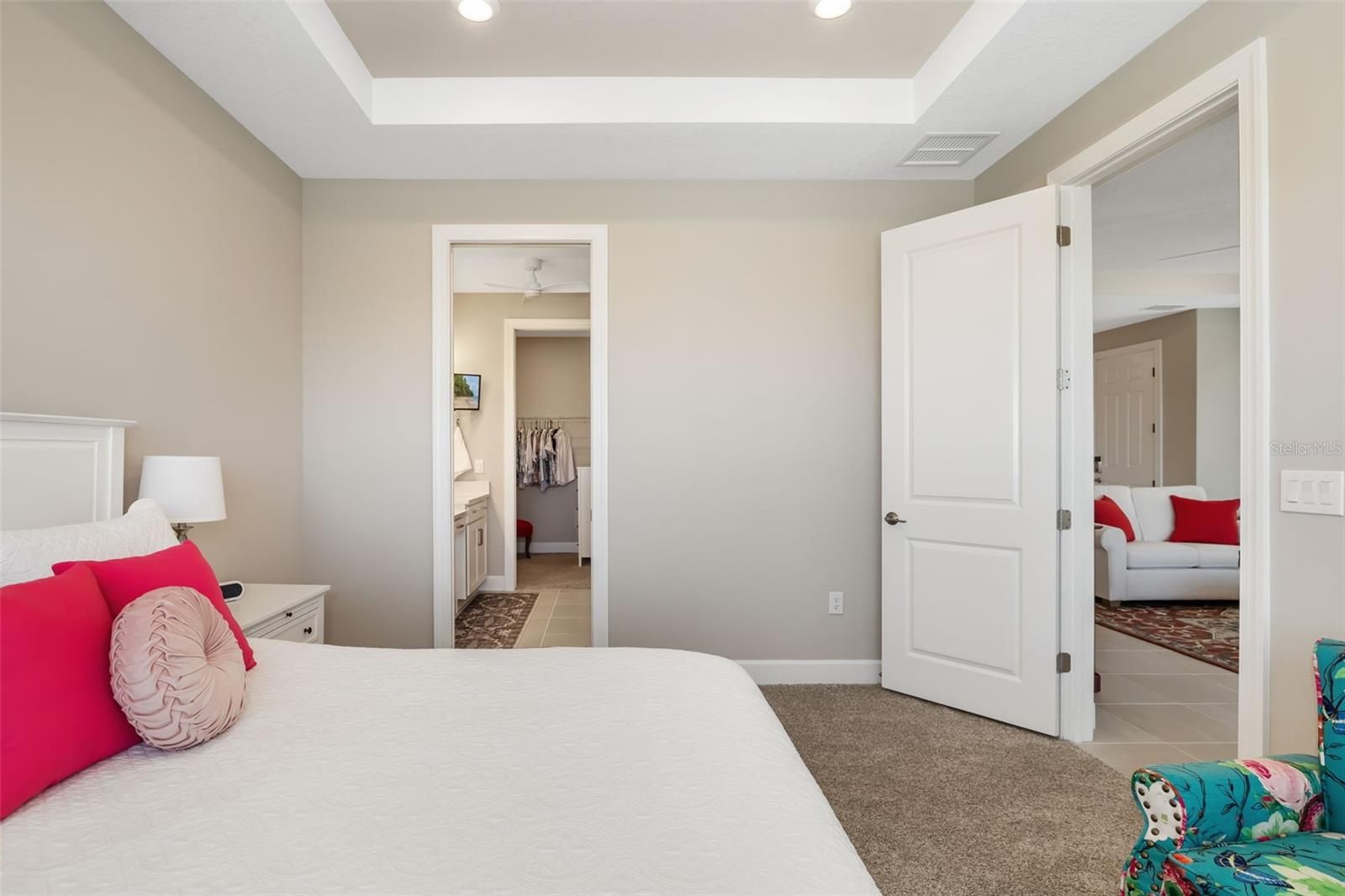 - Open Floorplan, Main Level Primary, Solid Surface Counters, Split Bedrooms, Tray Ceiling(s), Walk-In Closet(s), Window Treatments