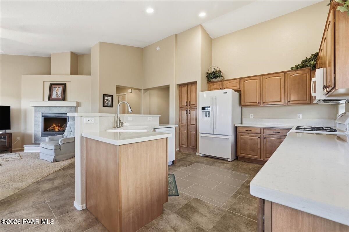 You've found your next home IF you are looking for Comfort, Scenery & Lifestyle coming together EFFORTLESSLY! Welcome to THE COTTAGES - a gated PRESCOTT LAKES neighborhood. Move-in-ready with lots of special features & major system updates in place +++ Dell, Golf Course, N AZ VIEWS from both inside & out. Lovingly cared-for one story 1516sf ''Champlain'' Great Room split plan w/2 Primary sized Bedrooms - each with walk-in closets & 2 full Baths - perfect for hosting guests or flexible living arrangements. Vaulted ceilings & a cozy natural gas fireplace anchor the Great Room living area, creating an open yet intimate setting for everyday living or entertaining. A very functional Kitchen w/lots of Quartz counter space + Maple raised panel cabinetry w/hardware, tile floor w/contrasting insert & center sink bar island for casual dining. Adjacent Dining area w/tile floor & sliding door opens to large 197sf [8' x 25'] covered Patio in an EZ care garden setting on 0.10 acre lot. This home is nicely positioned to enjoy PANORAMIC VIEWS. All appliances convey including a Speed Queen washer & dryer in the Laundry Room. Interior features include: Vaulted ceilings, oversized tile in most areas, carpet in the living room & bedrooms, custom wood trimmed window ledges thru-out, pleated shades, ceiling fans, bay window in Primary Suite & walk-in closet. The Primary Bath offers dual sinks, garden tub, clear glass enclosed shower, water closet & privacy window for natural light. Exterior painted in 2022. Well over $46,000 in updates that include: Roof replaced in 6-2019, HVAC in 12-2018, 50 gal Hot Water Heater in 10-2017, Garage door + opener in 10-2024, Dishwasher & Microwave in 2023 & 2025 + electrical system update in 3-2025 ... IDEAL FOR FULL or PART-TIME LIVING ... Prescott Lakes is all about LIFESTYLE - offering Fantastic Resort-like Amenities - Social Activities - Dining - Private Golf [w/separate memberships] ... DON'T MISS OUT!