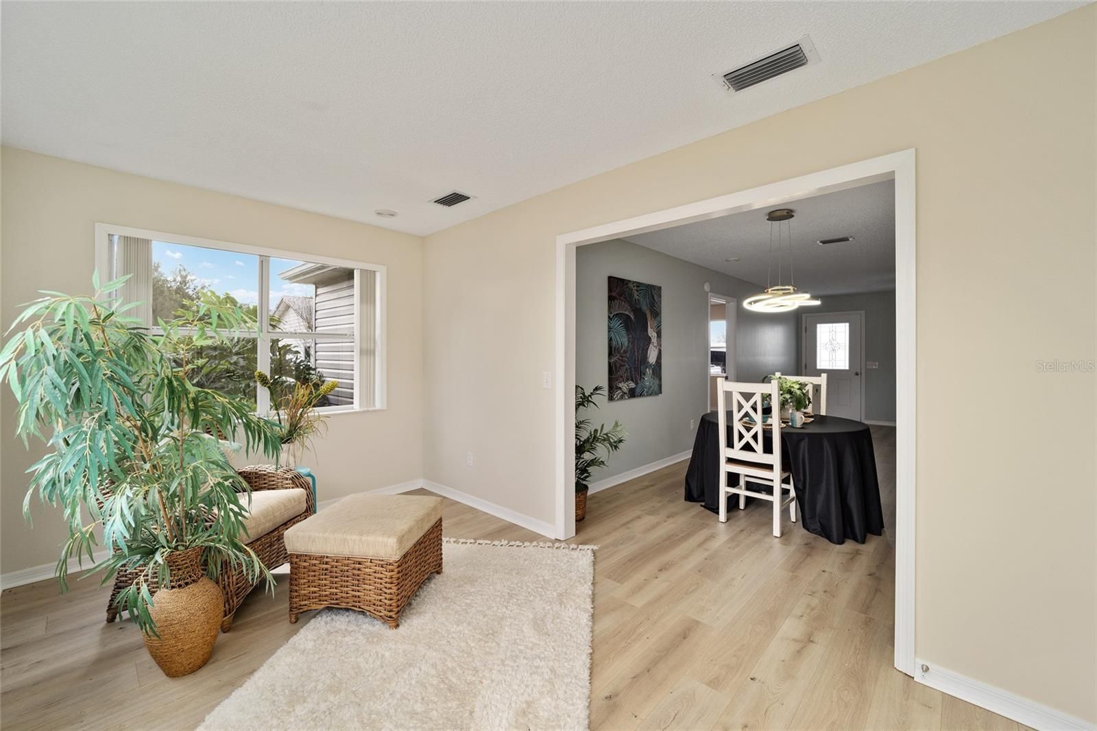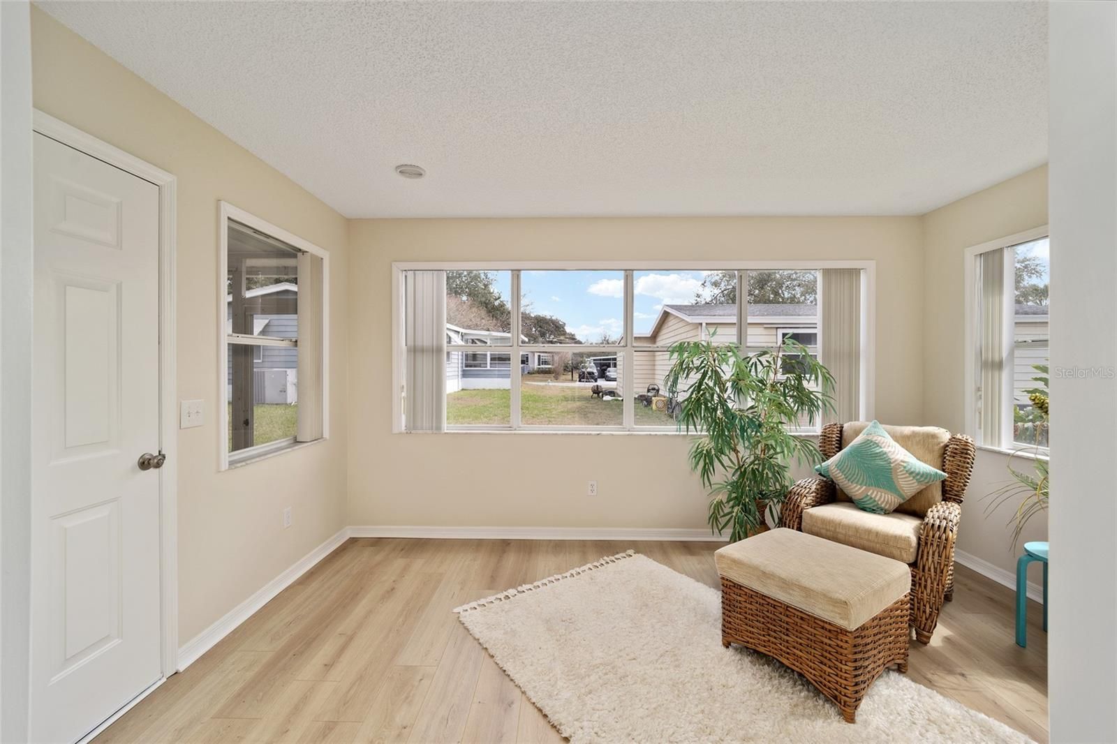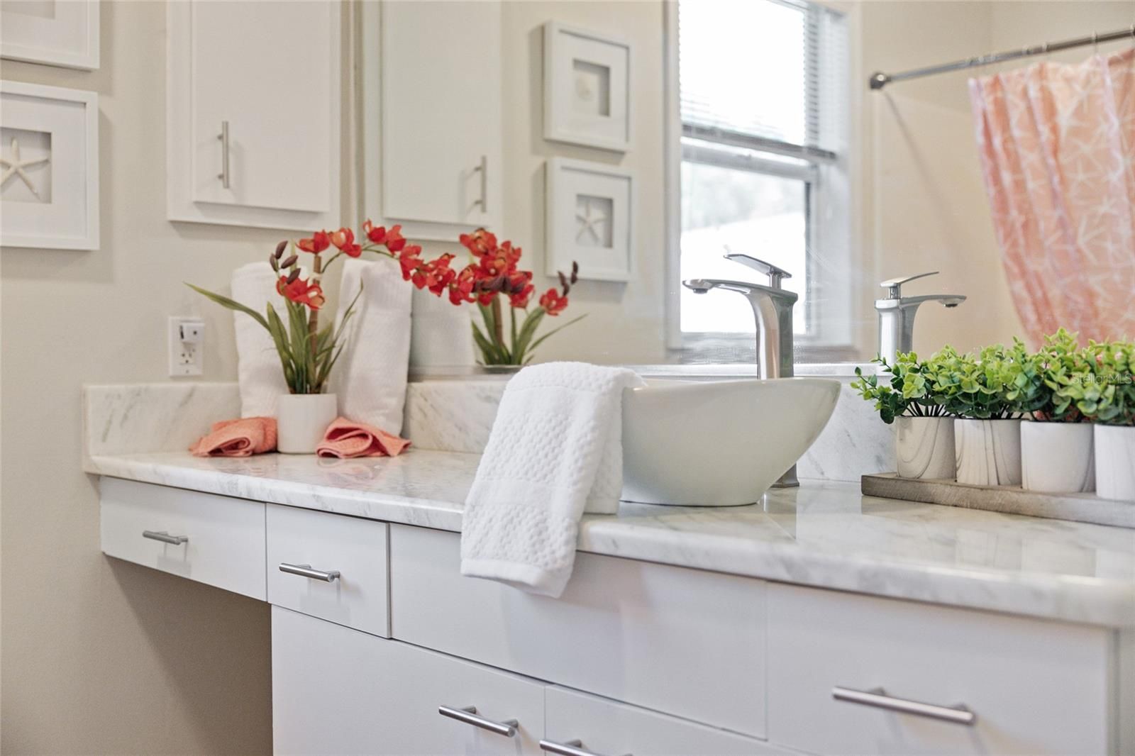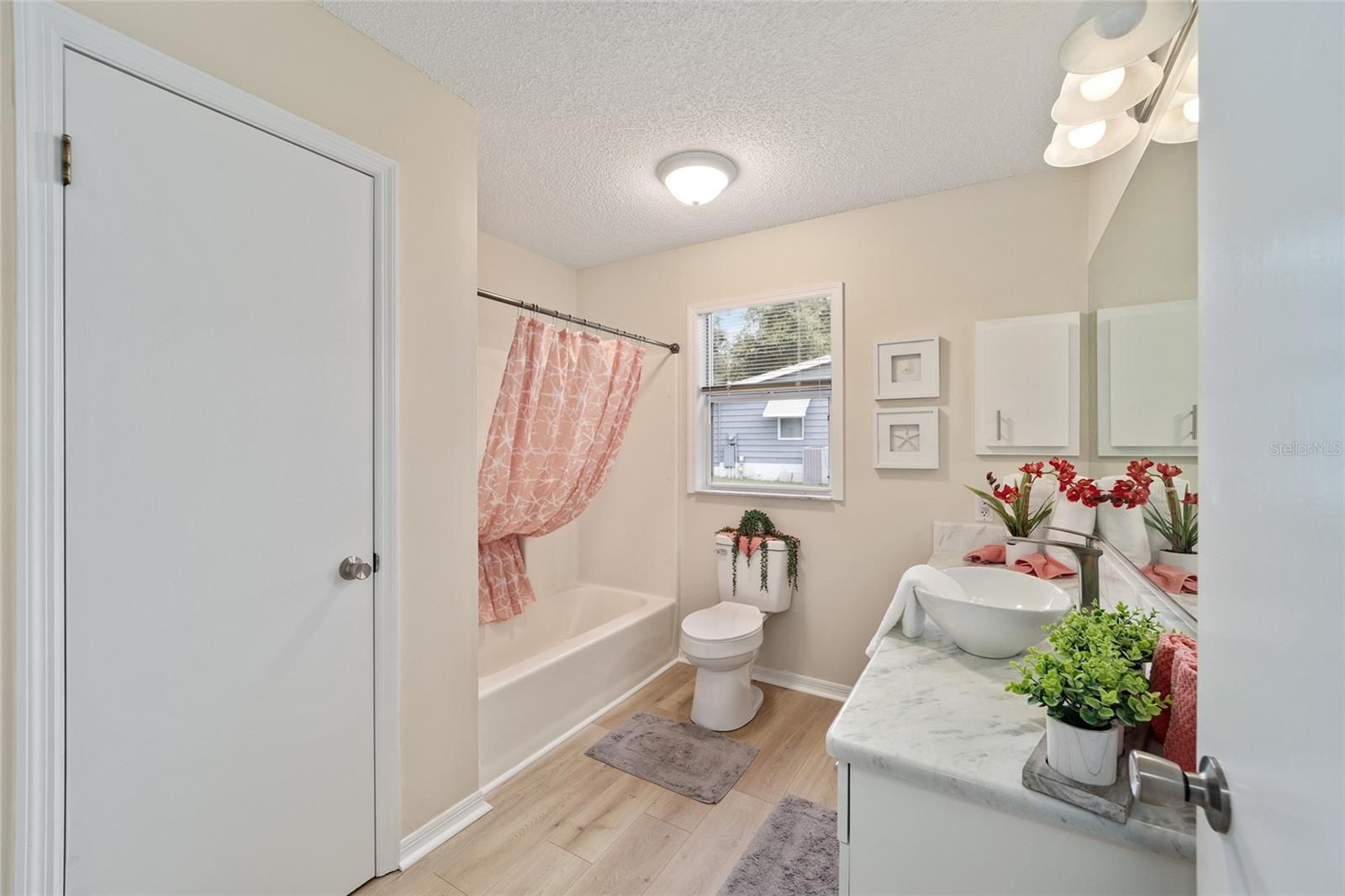 The Village of Country Club Hills – NO BOND, NO CDD MAINTENANCE FEE - Recently REMODELED CORPUS CHRISTI MODEL – 2 Bedrooms, 2 Baths, 2 Car Garage, Inside Laundry, Florida Room & Screened Lanai (1,357 Sq Ft, Built 1991)!!! -- ROOF: NEW December 2023!! - This Home is MOVE-IN Ready & has NEW Light Fixtures & NEW Fans, NEW Water Resistant Laminate Flooring Throughout Home (QuickStep Studio “Brookside Oak” with “SpillRepel”, NEW Tile Backsplash in Kitchen (Tile to Ceiling), NEW Faucets & New Vessel Sinks, NEW GRANITE COUNTERTOPS, Freshly Painted Interior Walls, Doors & Trim, Garage Door, Front Door, Shutters, Garage Walls & Exterior Vinyl Siding! -- On the Exterior, there are Gutters & Downspouts, Landscape Beds with Mulch, Irrigation System, Covered Front Porch & Screened Rear Lanai – Perfect for Enjoying Florida Weather! The KITCHEN has STAINLESS STEEL APPLIANCES, NEW Cabinets with Custom Pulls, Large Stainless-Steel Sink, and Kitchen Island (Granite-topped) with Breakfast Bar Overhang! -- This Home has an OPEN FLOORPLAN, Perfect for Entertaining!! -- The Primary Bedroom is 13 Ft x 16.5 Ft with a Walk-in Closet. The En-Suite Bathroom has a 6 Ft Vanity, Granite Topped with Vessel Sink, Linen Cupboard, Step-in Corner Shower with Glass Surround, Grab Bar and Shampoo Caddy. The Guest Bedroom is 10.5 Ft x 15 Ft, also with a WALK-IN Closet, and the Guest Bath is Granite Topped with Vessel Sink, Makeup Area, Tub/Shower Combo and Window over Commode. The Florida Room is under Heat & Air from Main Unit and has a 6 Ft Opening to the Dining Room & Door to Screened Lanai. – The 2 Car Garage has a built-in Corner Workbench, 2 Overhead Lights, and a Motorized Garage Door. -- Don’t miss out on a RECENTLY REMODELED GORGEOUS Home!!