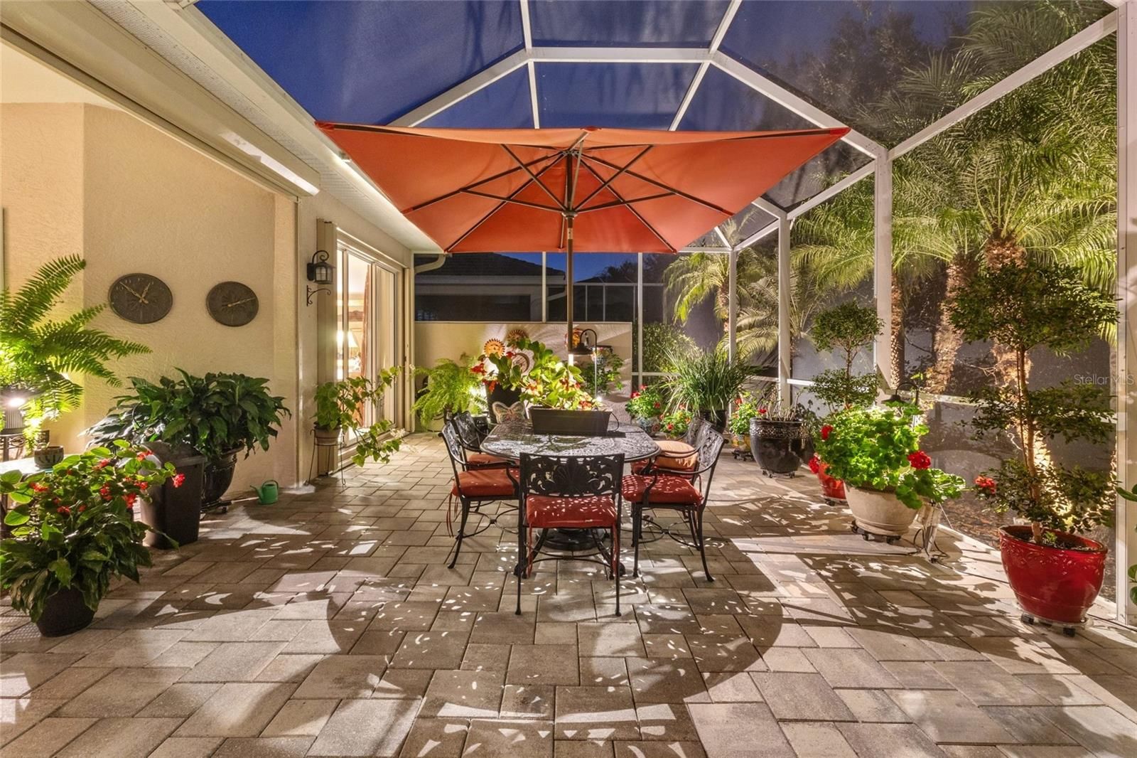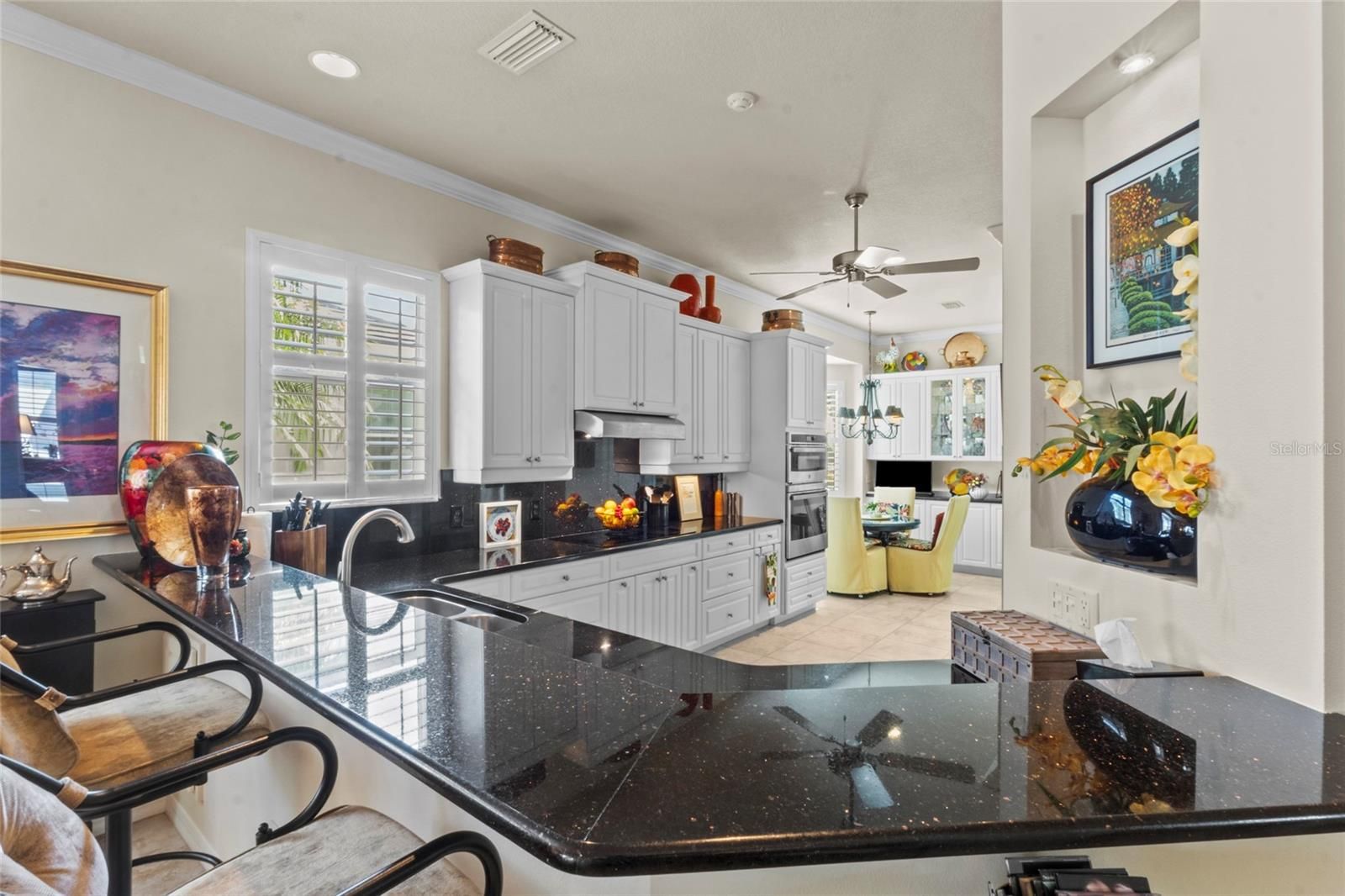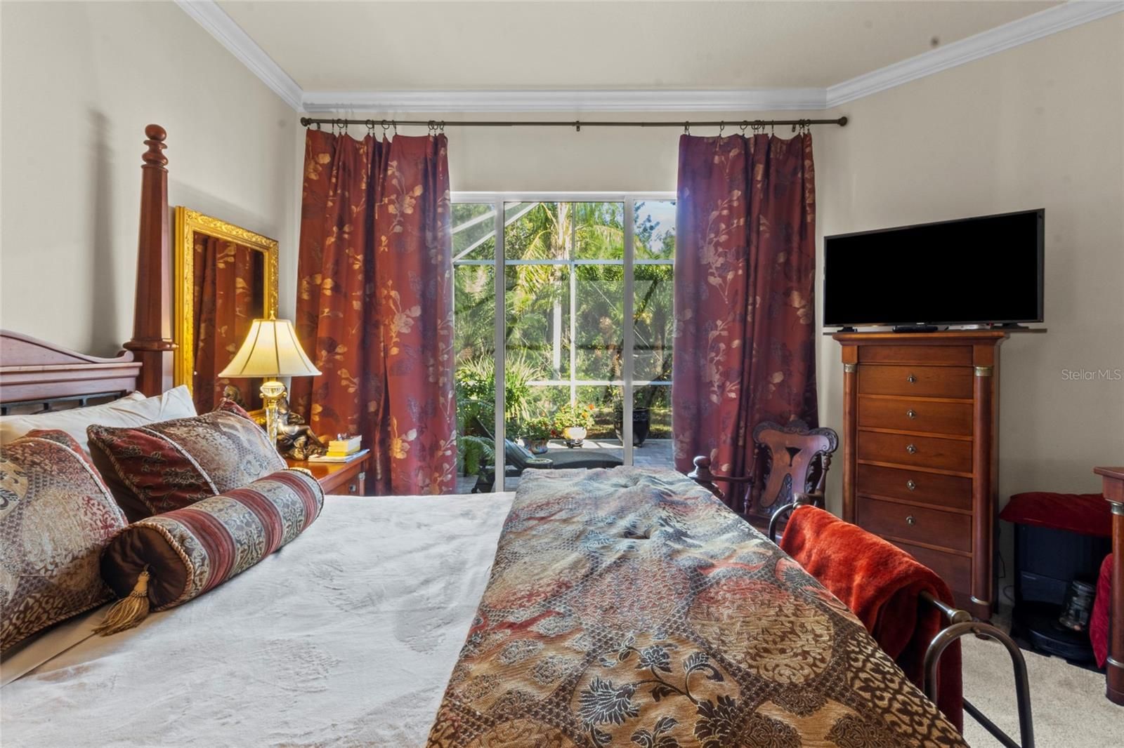 Discover easy, maintenance-free living where everything is handled for you, giving you more time to enjoy the Florida lifestyle. Exterior insurance, roof reserves, lawn care, pest and termite protection, exterior painting, and discounted high-speed internet are included in the quarterly fees. The community offers two pools, a resident-run clubhouse, no CDD fees, and optional membership at Plantation Golf & Country Club for golf, tennis, pickleball, fitness, dining, and social activities. This patio home stands out for its exceptional storage. The primary suite includes two walk-in closets, and the guest suite features another large walk-in closet plus pull-down attic stairs leading to a finished storage room—a rare and valuable feature in Florida homes. Inside, the home is bright and welcoming with neutral tile floors, plantation shutters, crown molding, and tray ceilings. The kitchen has crisp white cabinets, granite countertops, double ovens (2023), induction cooktop with hood vented to outside, Bosch dishwasher (2023), a walk-in pantry, breakfast bar, and an eat-in area framed by a bay window and additional cabinetry. The oversized screened lanai feels like a private tropical oasis, surrounded by lush landscape that creates complete privacy. A bubbling fountain and low-voltage lighting make this space perfect for relaxing or entertaining. Additional highlights include an inside laundry with utility sink, extra cabinetry and counter space, an epoxy-coated garage floor (2025), interior paint (2024), and a new HVAC system with blue light technology (2020). The home is fully storm-ready with impact glass windows, motorized roll-down Kevlar hurricane screen on the covered lanai, and accordion shutters at the primary bedroom slider—allowing quick and complete protection. A third bedroom currently serves as a den/office, offering flexible space for work or hobbies. Immaculately maintained and thoughtfully upgraded, this home offers the rare combination of maintenance-free living, privacy, and exceptional storage in a highly desirable Venice community.