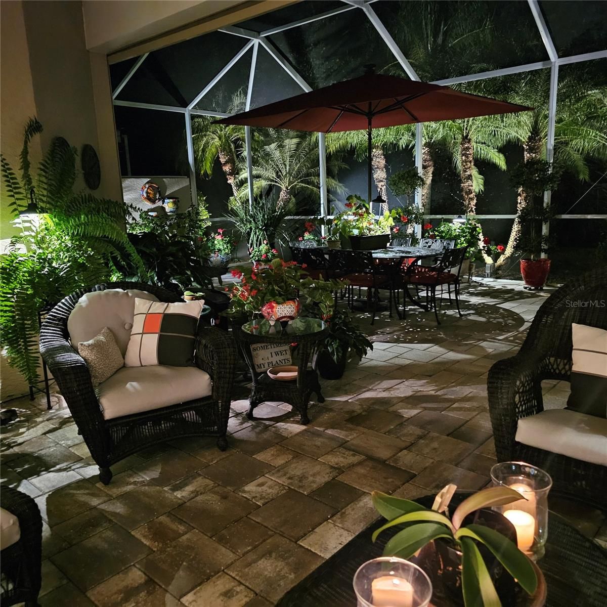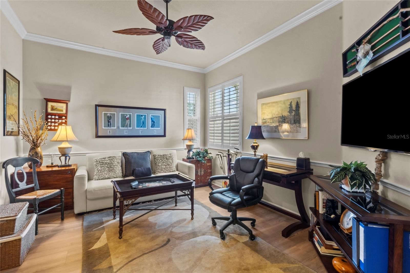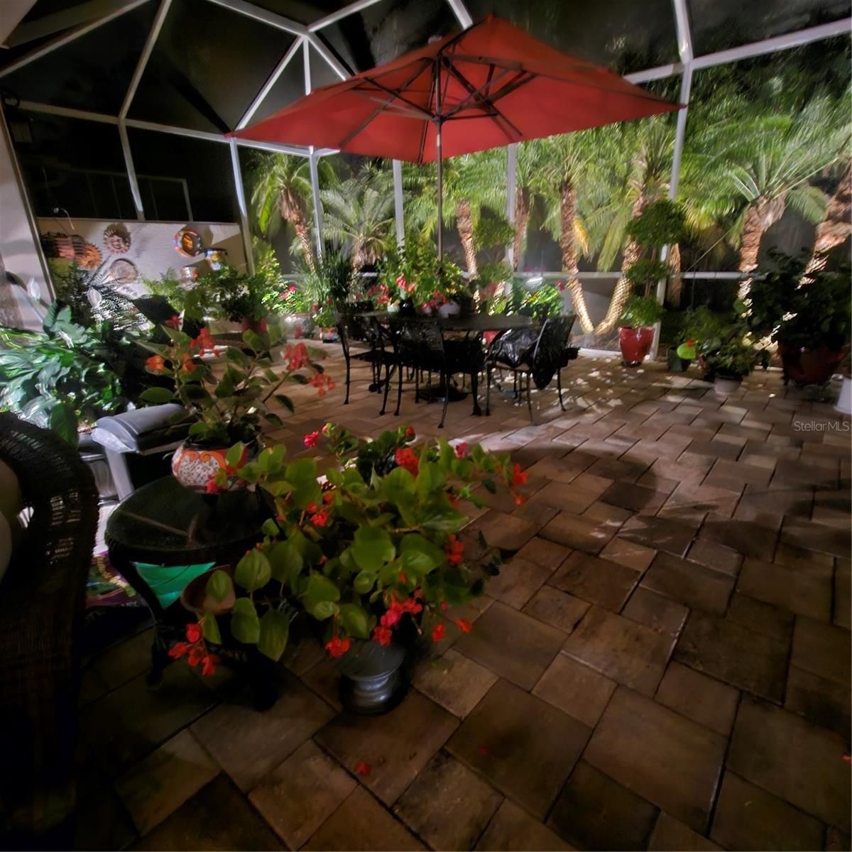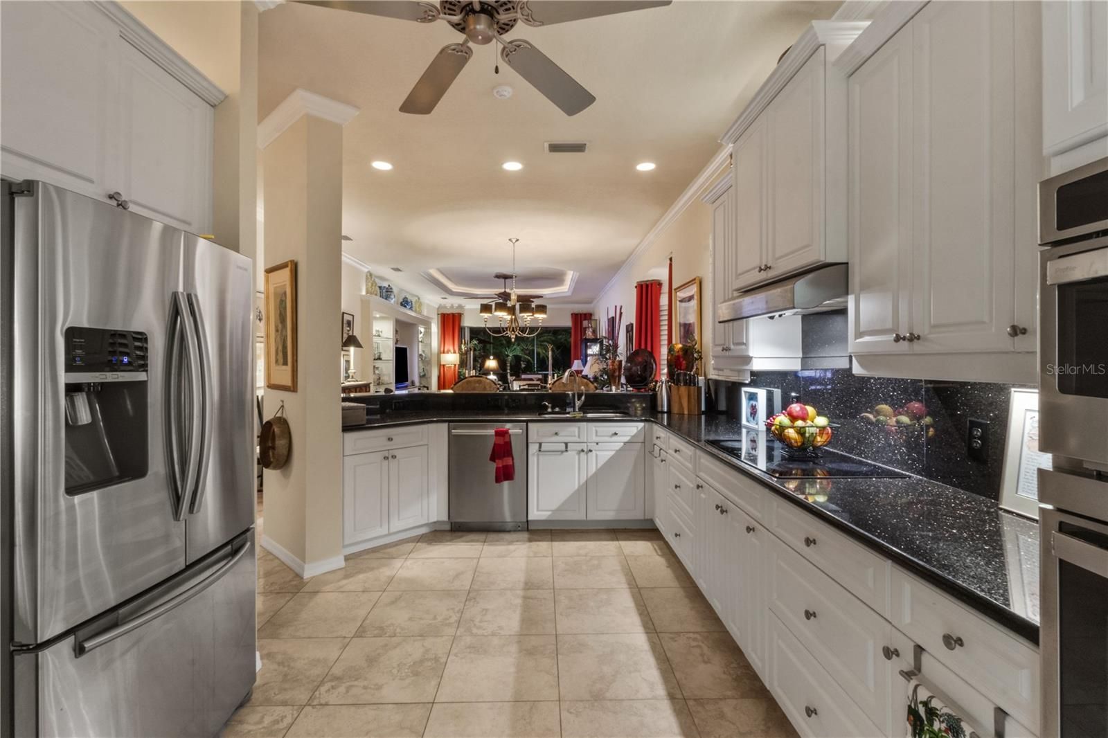 Under contract-accepting backup offers. Discover easy, maintenance-free living where everything is handled for you, giving you more time to enjoy the Florida lifestyle. Exterior insurance, roof reserves, lawn care, pest and termite protection, exterior painting, and discounted high-speed internet are included in the quarterly fees. The community offers two pools, a resident-run clubhouse, no CDD fees, and optional membership at Plantation Golf & Country Club for golf, tennis, pickleball, fitness, dining, and social activities. This patio home stands out for its exceptional storage. The primary suite includes two walk-in closets, and the guest suite features another large walk-in closet plus pull-down attic stairs leading to a finished storage room—a rare and valuable feature in Florida homes. Inside, the home is bright and welcoming with neutral tile floors, plantation shutters, crown molding, and tray ceilings. The kitchen has crisp white cabinets, granite countertops, double ovens (2023), induction cooktop with hood vented to outside, Bosch dishwasher (2023), a walk-in pantry, breakfast bar, and an eat-in area framed by a bay window and additional cabinetry. The oversized screened lanai feels like a private tropical oasis, surrounded by lush landscape that creates complete privacy. A bubbling fountain and low-voltage lighting make this space perfect for relaxing or entertaining. Additional highlights include an inside laundry with utility sink, extra cabinetry and counter space, an epoxy-coated garage floor (2025), interior paint (2024), and a new HVAC system with blue light technology (2020). The home is fully storm-ready with impact glass windows, motorized roll-down Kevlar-like hurricane screens on the covered lanai, and accordion shutters at the primary bedroom slider—allowing quick and complete protection. A third bedroom currently serves as a den/office, offering flexible space for work or hobbies. Immaculately maintained and thoughtfully upgraded, this home offers the rare combination of maintenance-free living, privacy, and exceptional storage in a highly desirable Venice community.