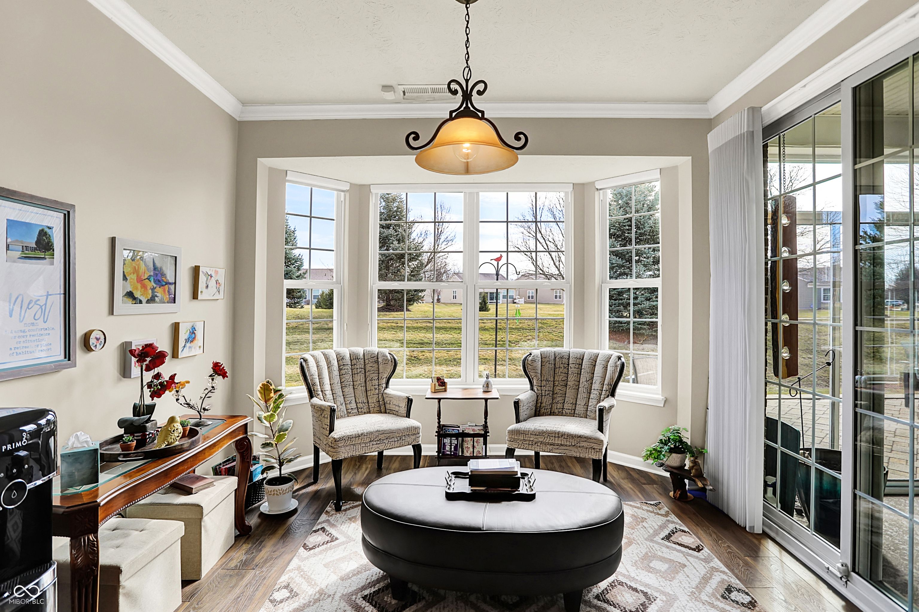 Fabulous "Full Brick" Ranch in the Popular Britton Falls (55+) Neighborhood! Overlooks a Scenic Lake in front + a Large 23' Screened Porch and a 28' Paver Patio overlook a Landscaped Privacy Mound in back with Trees! This Beautiful Home is Immaculate and Very Well Maintained and boasts many Custom Features... Two Large Bay Windows, 9' Ceilings throughout, Very Nice Updated Flooring, Trey Ceiling in Primary BR, Custom Crown Mouldings, Ceiling Speakers that can be connected to buyer's stereo system, Dramatic Great Rm w/Full Wall of Windows, Custom Fireplace, and Formal Dining Area. The 3rd BR is currently used as an Office/Den w/Lots of Built-ins including a Huge Desk/Work Space + Cabinetry and Bookcases. The Primary BR has a Trey Ceiling, Crown Moulding, 10' Bay Window, 12' Walk-in Closet + the Primary Bath has a Whirlpool Tub, Separate Shower, and a 9'+ Double Vanity. The Great Room Overlooks an Awesome Custom Kitchen w/Crown Moulding, Center Island, Breakfast Bar w/Bar Stools, Double Ovens (One is Convection), Reg Pantry and Butler's Pantry + a Bright and Sunny Breakfast Room w/10' Bay Window! The 25' Deep Garage w/Epoxy Floor has a 4' Bump out to make it 4' Deeper than Standard. This allowed lots of Built-ins (Cabinets + Counter Workshop Area w/Pegboard + Two Walls w/Built in "Slatwall Storage System"). Other Major Updates...1) High Efficiency Gas Furnace w/Humidifier and A/C (2024)...2) High Efficiency Gas Water Heater (2021)...3) Architectural 25-30 Year "Dimensional" Roof (2019)...4) New Flooring (2019) Community Amenities include the Impressive "Chateau" Clubhouse w/Indoor and Outdoor Swimming Pools + Pickleball, Tennis, Bocce Ball, and B-Ball Courts + Billiard Room, Recreation/Game Rooms, Meeting Rooms, Dramatic Grand Fireplace Gathering Room, Library w/Fireplace + Fitness Center and Spa! Secluded area but, Hamilton Town Center is only five minutes away with lots of Restaurants, Outdoor Shopping Mall, Banks, Theatres, etc. Convenient to everything you need!