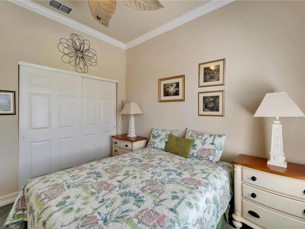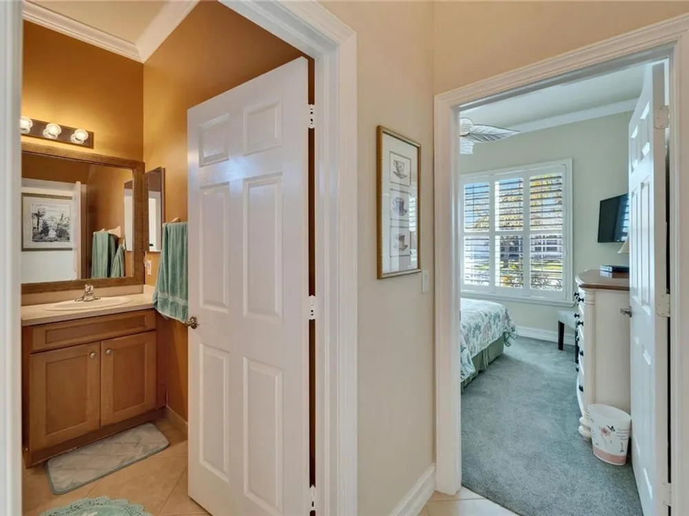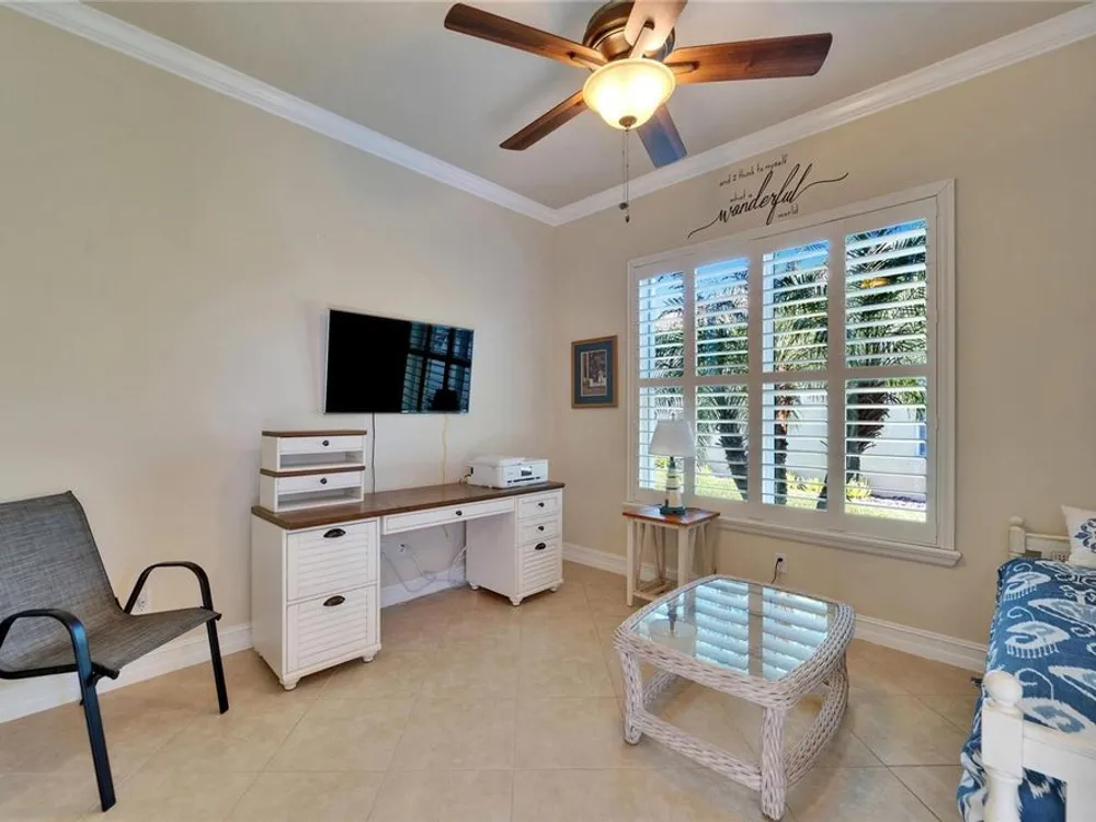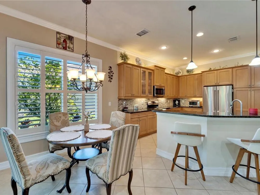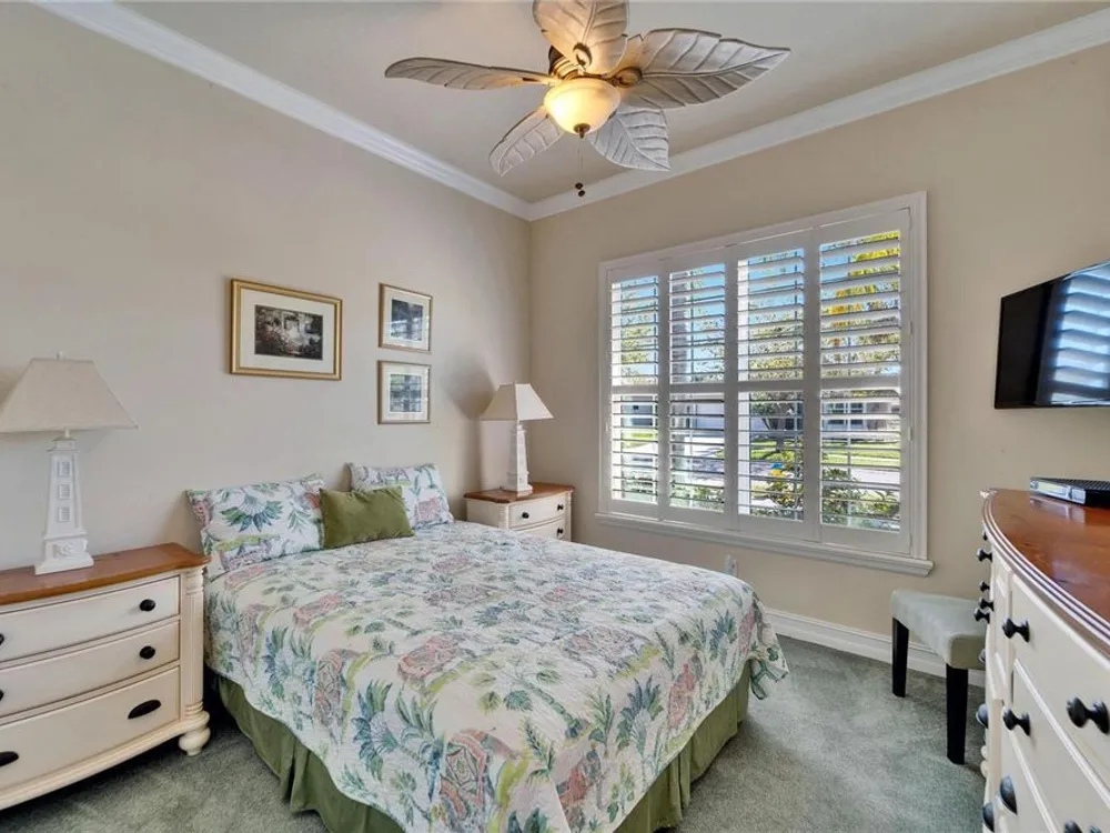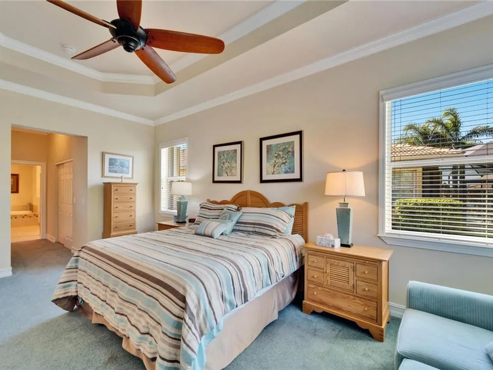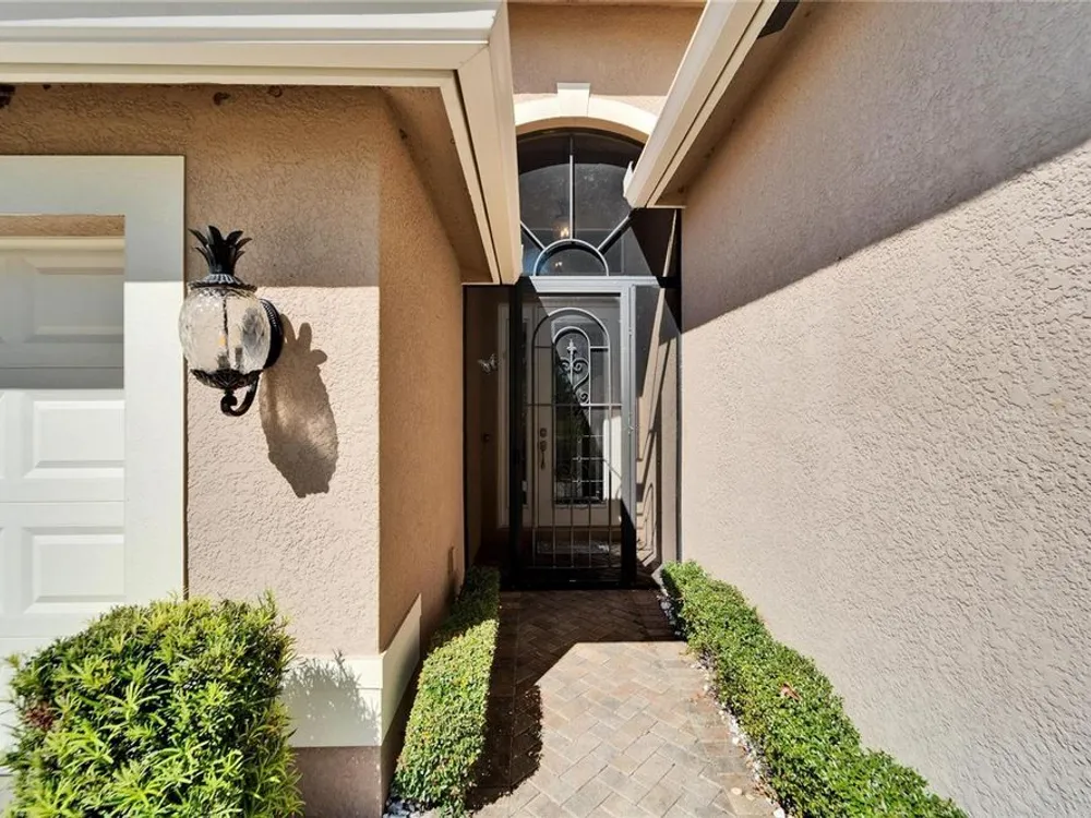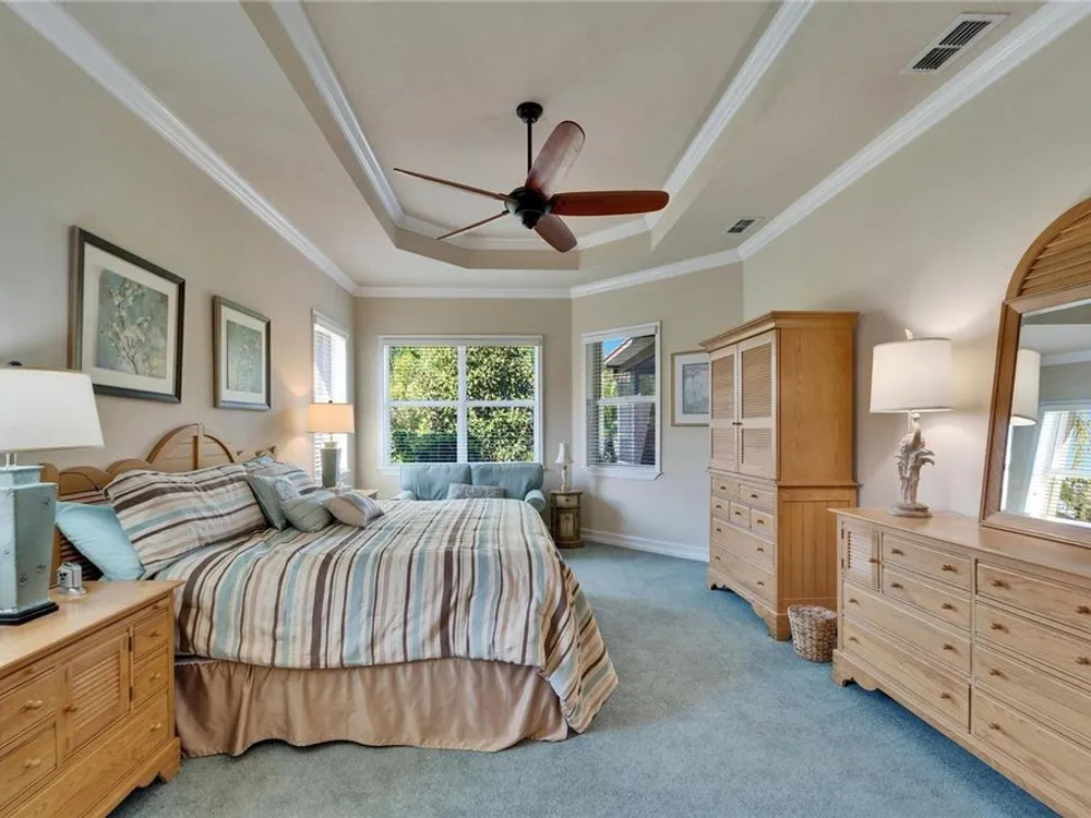 Spectacular FULLY FURNISHED GENOVA model with both WATER and CONSERVATION views. This 2074 Sq. Ft. home features 2 bedrooms plus den / study, 2 baths and 2 car garage. Move in ready, everything included, just bring your toothbrush! Extended covered lanai with propane gas fire pit to enjoy the scenic water and conservation views. GOLF CART INCLUDED with newer lithium batteries. ACCORDIAN HURRICANE SHUTTERS on windows along with whole house gutters. Open floor plan is perfect for daily living and entertaining. Wide sliders lead out to the extended screened lanai with covered roof. Outdoor furniture and Weber grill included so you can relax and enjoy the sun with both water and conservation views. Gourmet kitchen features breakfast bar, 42 inch wood cabinets, over/under lighting, granite counters, tile backsplash and cabinet pantry. Stainless-steel appliances with new refrigerator in 2024. Breakfast nook for casual dining while enjoying the outdoor view. Spacious master suite with two large walk-in closets. Master spa like bath features dual vanities and roman tub. Split floor plan with the second bedroom and guest bath located in the front of the home for privacy. Versatile den / study to offer additional living space. Covered screened front entry with glass doors leading to coffered ceiling foyer. Crown molding throughout with plantation shutters on all windows. Newer upgraded carpet in master and second bedrooms. Other updates include new HVAC system in 2022, epoxy garage floor and water softener with whole house filter. Ceramic tiles installed diagonally in main areas plus den/ study. Enjoy the Florida lifestyle in this desirable active adult community located in the Greater Tampa area. Conveniently located near Tampa, Sarasota, St. Pete with easy access to beaches, shopping, entertainment and health care facilities. Approximately 90 minutes to Walt Disney World. This sought after community has a 40,000 sq.ft. clubhouse featuring a huge social hall that offers entertainment, live shows and dances. Numerous clubs to satisfy every interest. Clubhouse amenities include fitness center, sauna, billiards, card rooms, arts and craft studio. The outdoor waterfront recreation area features a resort style heated pool, with lap pool. Other amenities include 7 pickleball courts, 6 USTA Har-Tru Clay tennis courts, 4 bocce courts, shuffleboard courts, half-court basketball, dog park, softball field and R/V boat storage area. Enjoy exploring the natural preserves and walking paths in your community with your included EZ Go golf cart. A short ride to the clubhouse amenities. Golf cart access to nearby shopping and restaurants. What are you waiting for, come and enjoy the Florida lifestyle ! Have a "Cheeseburger in Paradise" in our newly renovated bistro that will be opening soon !