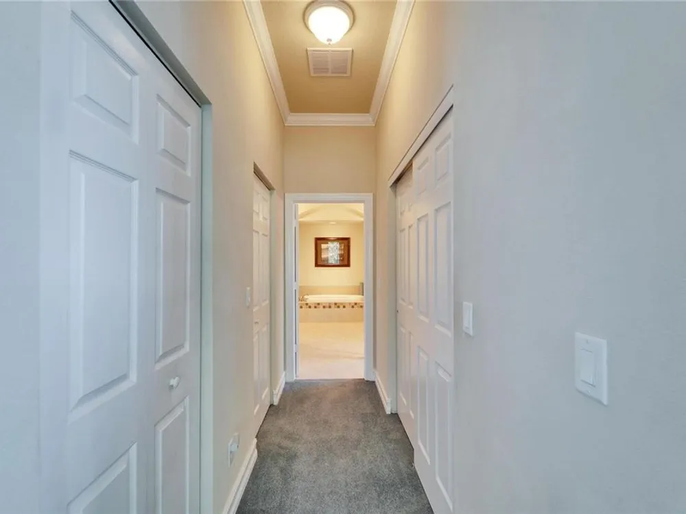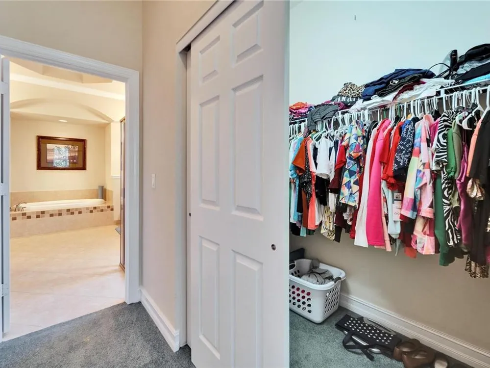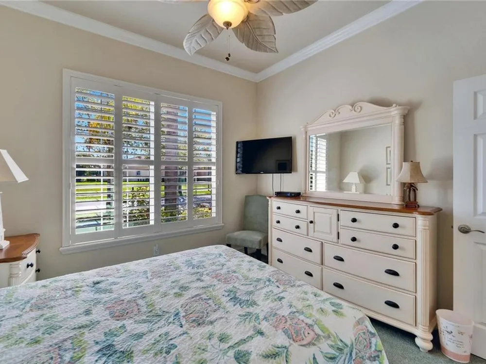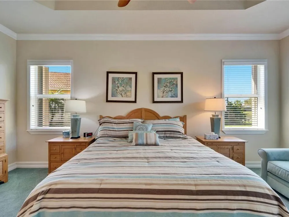 - Ceiling Fan(s), Coffered Ceiling(s), Crown Molding, Eat-in Kitchen, High Ceilings, Open Floorplan, Main Level Primary, Solid-Wood Cabinets, Stone Counters, Thermostat, Walk-In Closet(s), Window Treatments
