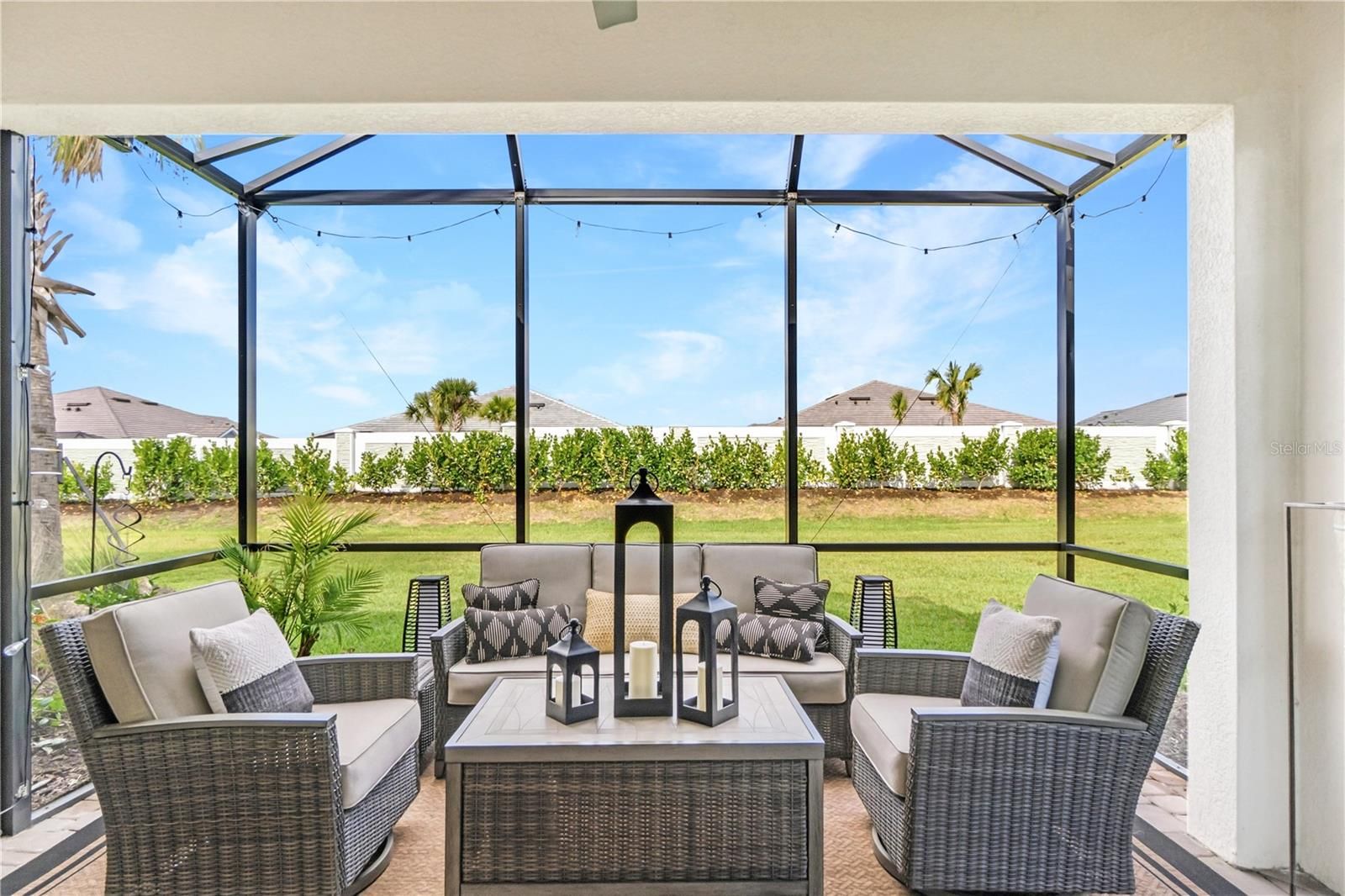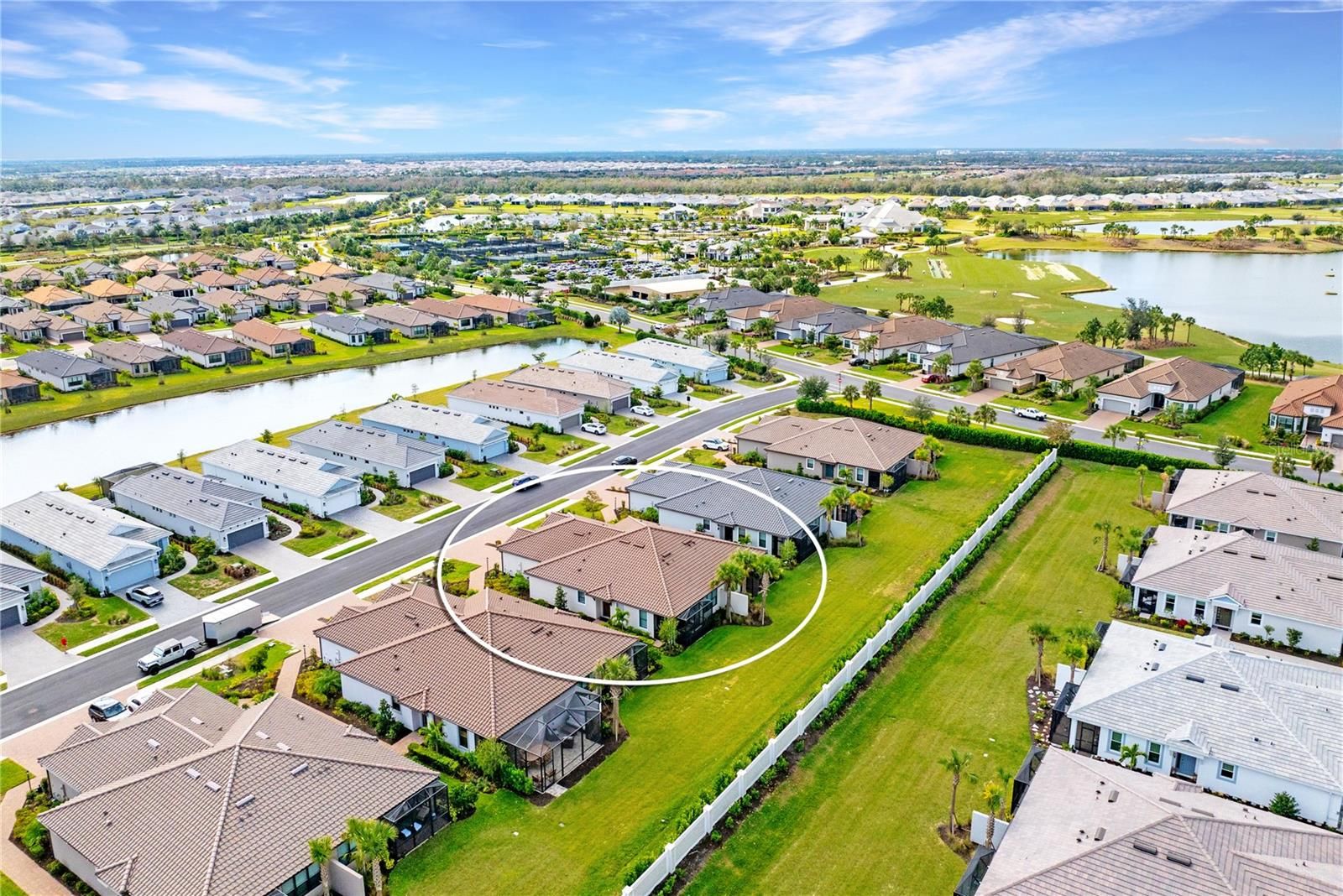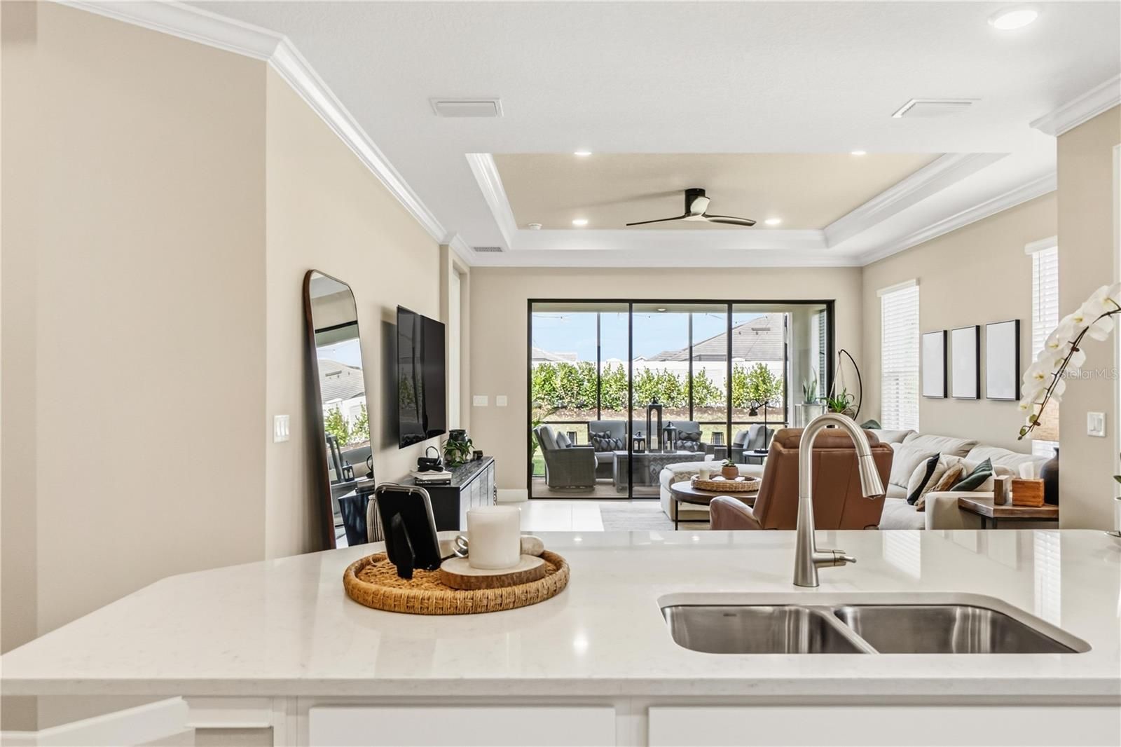 This exquisite Ibis villa is your opportunity to own a slice of paradise in the highly sought-after Esplanade at Azario in Lakewood Ranch. This home offers the perfect opportunity for those looking to downsize without compromise, relocate with ease, or enjoy a refined seasonal retreat in one of Lakewood Ranch’s most amenity-rich communities. Located just steps from Azario’s premier amenity campus, the location of this villa simply can’t be beat! A beautifully landscaped walkway leads to the front entry, creating a warm and elegant first impression. Inside, the home immediately impresses w/ tray ceilings, crown molding, impeccably selected upgrades, and a spacious open-concept layout. The seamless flow between the kitchen, dining, and living areas makes this home feel welcoming, light-filled, and easy to enjoy—whether hosting guests or relaxing after a day of activities. The gourmet kitchen is thoughtfully designed, featuring white shaker-style cabinetry, stainless steel appliances, a stylish marbled tile backsplash, and generous counter space—ideal for casual meals or entertaining. Just beyond, the dining area provides an inviting space for intimate dinners or relaxed cocktail gatherings, while the living room opens through sliding glass doors to a screened-in lanai, offering privacy and a peaceful spot to enjoy Florida’s indoor-outdoor lifestyle. The primary suite serves as a serene retreat, complete with a tray ceiling and large picture window. The spa-inspired ensuite bath features dual vanities, a dedicated makeup counter, a spacious walk-in shower, and an oversized custom walk-in closet, blending comfort with smart, functional design. Located on the opposite side of the home, the private guest suite includes its own walk-in closet and full bathroom, providing privacy and convenience for visiting family and friends. A versatile den with pocket doors offers flexible space—perfect for a home office, media room, or additional guest area. Additional highlights include a custom laundry room with washer and dryer, ample cabinetry for storage, a two-car garage with epoxy flooring, Ring doorbell and smart home features, and a tankless water heater for enhanced energy efficiency and peace of mind. Life in Esplanade at Azario is centered around world-class, resort-style amenities that make every day feel like a getaway. Residents enjoy a full-service spa, tropical Bahama bar, multiple resort pools, and a state-of-the-art fitness center. Dining options abound at the Culinary Center and Barrel House restaurant, with opportunities for cooking classes and wine tastings, plus casual favorites like the on-site pizzeria. Golf enthusiasts can take advantage of the 18-hole Championship golf course with a convenient pay-to-play option. Tennis, pickleball, scenic walking trails, a coffee shop, and a vibrant event space for social gatherings and resident activities round out this exceptional lifestyle. Perfectly located in the heart of Lakewood Ranch, this home offers easy access to top-rated schools, world-class shopping, fine dining, and the beautiful Gulf Coast beaches. With maintenance-free living and unmatched amenities, this villa delivers the ideal blend of luxury, convenience, and flexibility. Whether you’re simplifying, relocating, or searching for the perfect Florida escape, this is a rare opportunity not to miss. Schedule your private showing today and experience the Esplanade lifestyle for yourself.