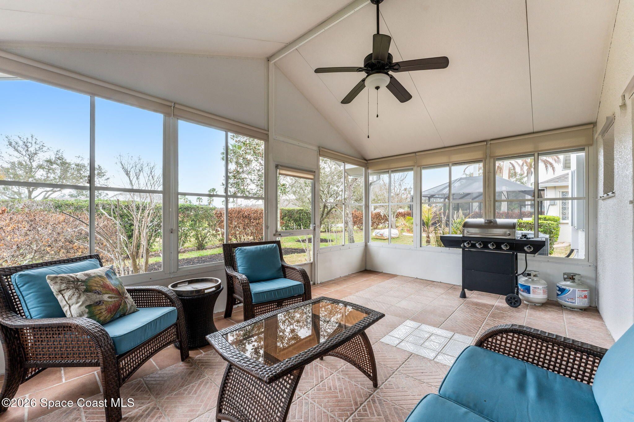 Step onto the meticulously landscaped yard and paver driveway into The Chateau with Florida Room located in East Viera in Friendly Grand Isle Community! This rare residence has been upgraded with refined high-quality finishes throughout! And, it gets better-No Carpet! Truly move-in ready, the home has been thoughtfully enhanced so there is nothing left to do-no projects, no compromises (even has a walk-in tub in the guest bathroom). Inside, the Open Floor Plan and vaulted ceilings offer a spacious and inviting ambiance. As you walk through the foyer, you will discover an updated home with refined touches throughout. The spacious kitchen boasts a breakfast nook, large granite countertops, kitchen island for prep, and backsplash for the culinary enthusiast. This is a unique opportunity to become an owner in the best location in Viera. Over 70 restaurants and 6 gold courses within 5 miles-all accessible by golf cart! HOA is very inclusive-you do no not have to do a thing!