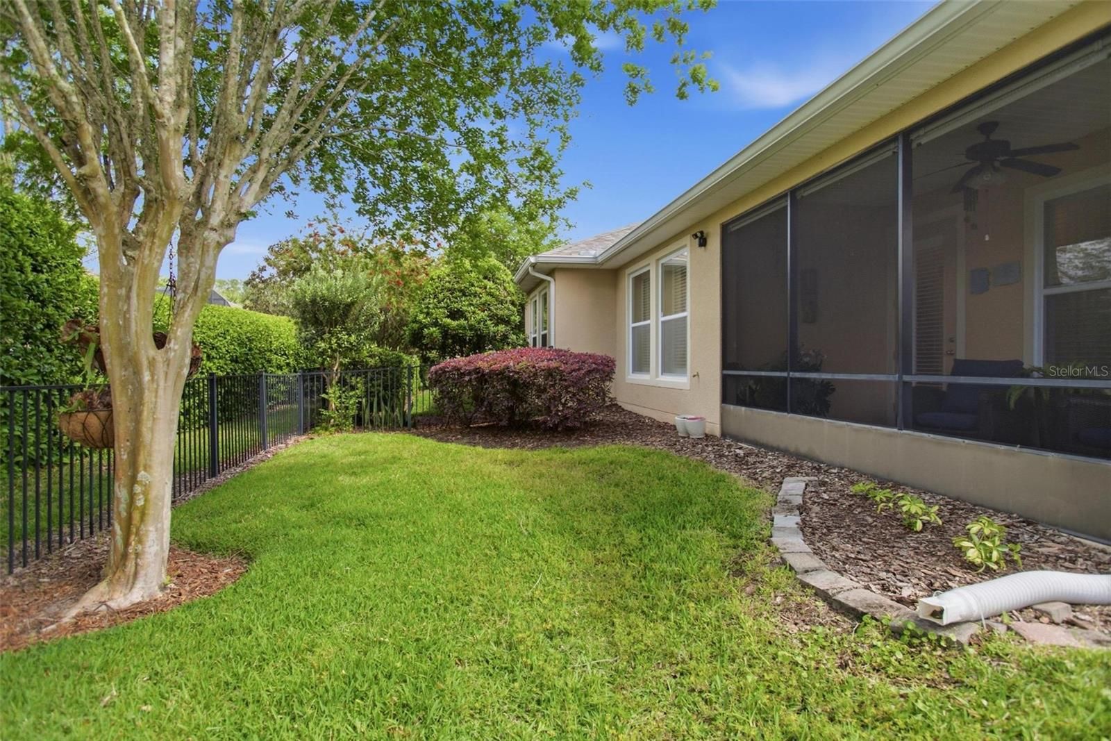 Welcome to your new Garden Villa—one of only THREE courtyard villas in the highly sought-after Victoria Gardens, a rare opportunity that seldom comes to market. Built by Shea Homes, the popular “Iris” model offers a unique layout that blends indoor and outdoor living, making it feel as though you have just as much space outside as inside. Enjoy true maintenance-free living, with the HOA covering roof replacement, exterior painting, and all landscaping—giving you peace of mind and more time to enjoy your home. This thoughtfully designed 2-bedroom, 2-bath home with a built-in desk is perfect for remote work or flexible living. Energy-efficient features include Low-E double-pane insulated windows, spray foam insulation on exterior walls, a radiant barrier in the attic, and a tankless gas water heater. The home shows like a model and has been meticulously maintained. Interior upgrades include premium vinyl flooring in the main living areas with 5-inch baseboards, laminate flooring in the bedrooms, and plantation-style shutters throughout. The kitchen is both stylish and functional, featuring newly painted white cabinetry with crown molding, under and over-cabinet lighting, granite countertops, a large breakfast bar, and black and stainless steel appliances. The spacious primary suite includes a large walk-in closet and an en-suite bath with a raised-height double vanity and a glass-enclosed shower with a built-in seat. Step outside to your 16' x 8' screened, covered patio with pull-down shades—perfect for relaxing or entertaining—overlooking a fenced backyard. Additional highlights include: Paver driveway and walkway, oversized 1 1/2 car garage. Residents of Victoria Gardens enjoy exclusive access to a private clubhouse, along with HOA-covered lawn care, cable TV, internet, irrigation, and full use of community amenities. Conveniently located less than one mile from I-4, this home provides easy access to Orlando (approximately 30 minutes), the east coast beaches, and three international airports within an hour.