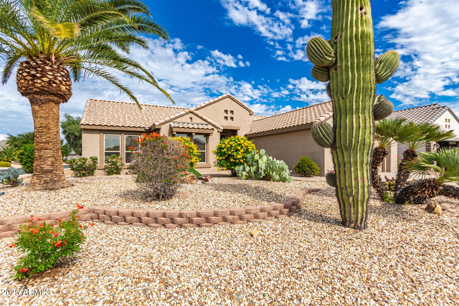 This fully furnished Palo Verde home on a PRIME corner lot is a dream come true! Come relax in the spacious living room where comfort meets convenience, showcasing tile flooring, entertainment niches, and a cozy fireplace. This kitchen delights with recessed lighting, UPDATED stainless steel appliances, granite counters, an abundance of cabinetry, a breakfast bar, and a bright breakfast nook. Discover a sizable primary bedroom, providing plush carpet, a sunny bayed window sitting area, a private ensuite with dual sinks, and a walk-in closet. The secondary bedrooms will be a welcome comfort to your guests. All of this under a NEWLY REPLACED ROOF! You'll love to spend peaceful mornings under the EXTENDED covered patio embracing the desert lifestyle of Sun City Grand.