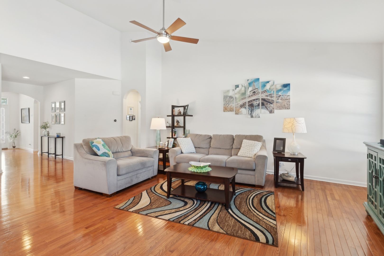 Experience luxurious living in the highly sought-after Stonegate West-an all-ages, no age-restriction community. This stunning ranch-style home is bathed in natural light and features an open-concept design with soaring ceilings and gleaming hardwood floors throughout the main living areas. Elegant arches lead seamlessly into the spacious living room, creating a warm and sophisticated atmosphere. A thoughtfully designed side hallway provides privacy for the large second bedroom and hall bath, while a versatile third bedroom offers endless possibilities-perfect as a guest room, home office, or creative space. The chef's kitchen boasts a generous island, ideal for entertaining and creating unforgettable culinary moments. Retreat to the serene master suite, complete with an expansive walk-in closet and a spa-like private bath featuring a separate shower and double vanity for ultimate comfort. This home also offers a spacious unfinished basement, ready for your dream design-whether it's a cozy entertainment space, home gym, additional living area, or all of the above. The possibilities are endless! This vibrant community welcomes residents of all ages and offers exceptional amenities, including a clubhouse and a sparkling pool-perfect spots to connect with friendly neighbors and build lasting friendships. Schedule your private showing today and make this dream home yours! Tour this home before it's gone! Huge price reduction-sellers are asking for your offer.