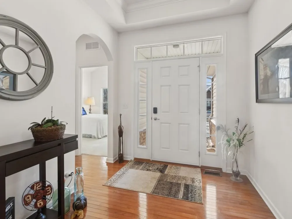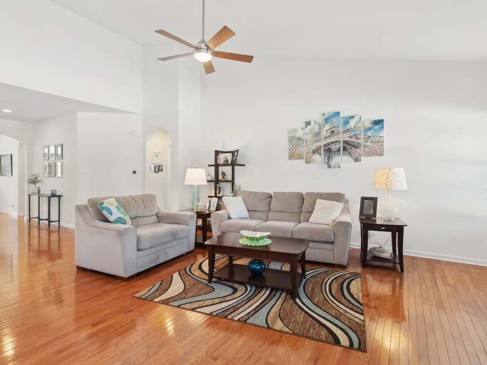 Experience luxurious living in the highly sought-after Stonegate West, no age restriction community. This stunning ranch-style home is bathed in natural light, featuring an open-concept design with soaring ceilings and gleaming hardwood floors throughout the main living areas. Elegant arches lead you seamlessly into the spacious living room, creating a sense of warmth and sophistication. A thoughtfully designed side hallway provides privacy for the large second bedroom and hall bath, while a versatile den/flex room offers endless possibilities. The chef's kitchen boasts a generous island, perfect for entertaining and creating unforgettable culinary moments. Retreat to the serene master suite, complete with an expansive walk-in closet and a spa-like private bath featuring a separate shower and double vanity for ultimate comfort. This vibrant community welcomes all ages and offers exceptional amenities, including a clubhouse and a sparkling pool-perfect spots to connect with friendly neighbors and build lasting friendships. Schedule your private showing today and make this dream home yours!