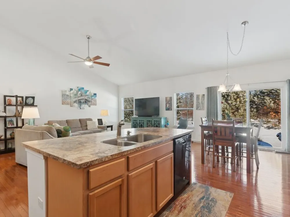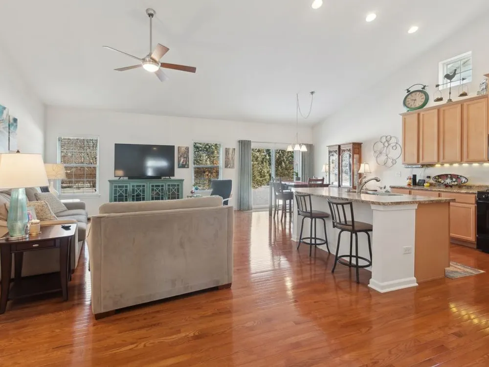 - Cathedral Ceiling(s), Bedroom on Main Level, Full Bathroom, Walk-In Closet(s), Open Floorplan, Dining Room, Den, Separate Shower, Kitchen/Dining Combo