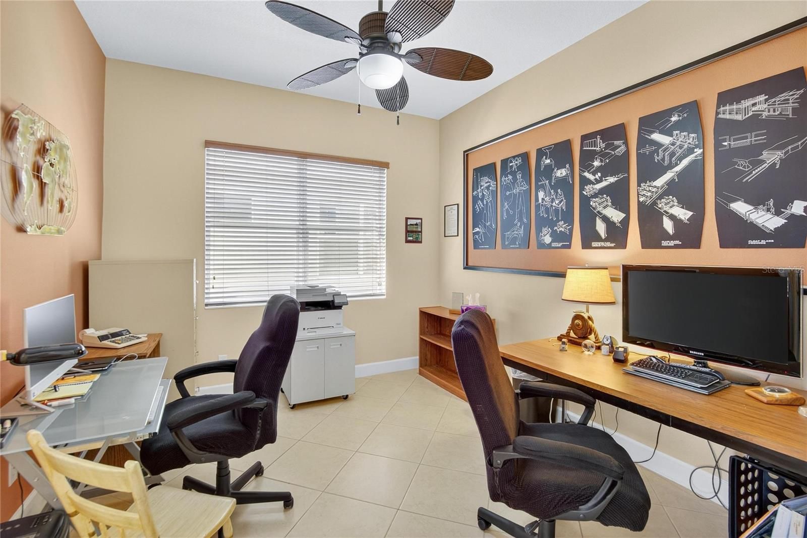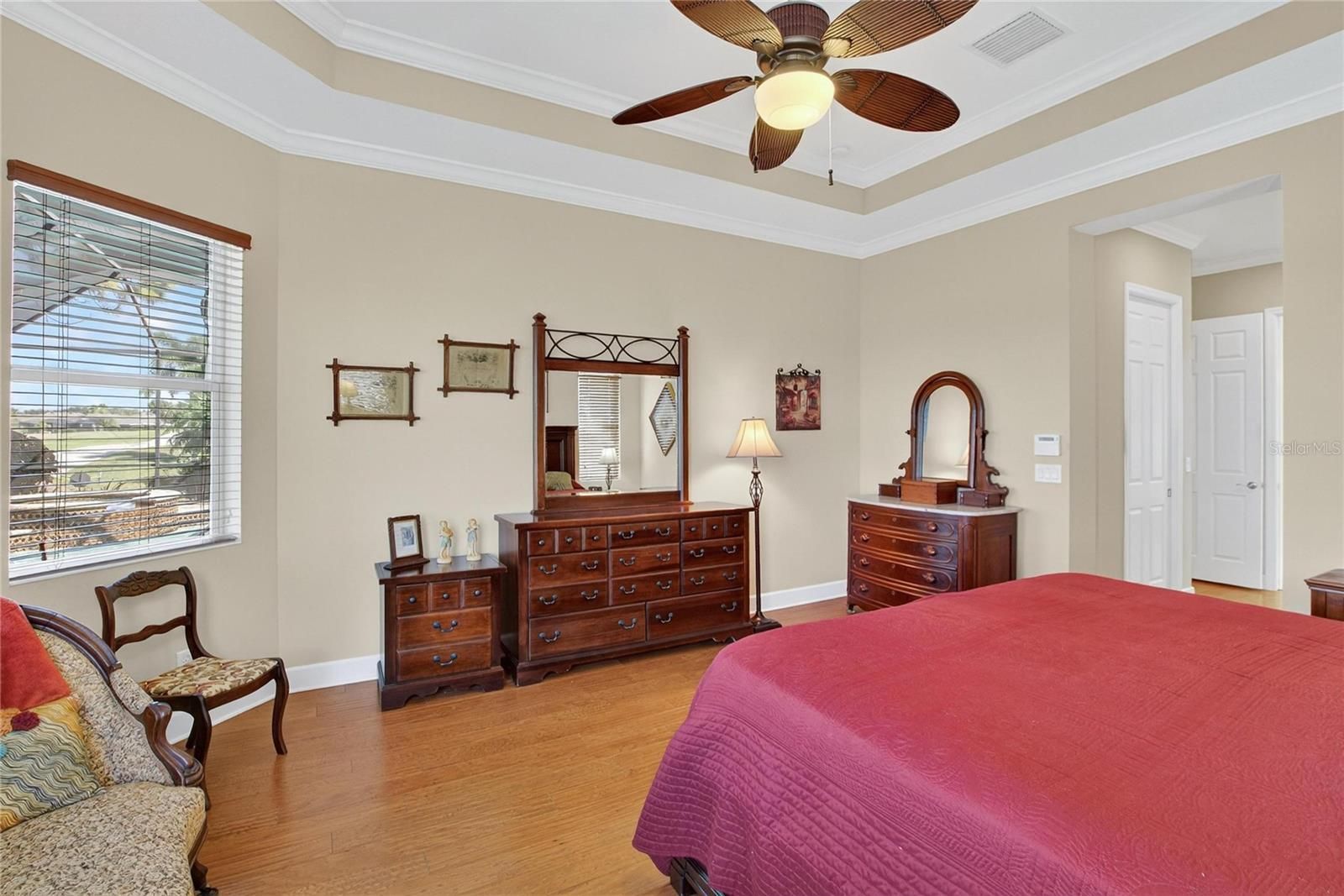 - Ceiling Fan(s), Coffered Ceiling(s), High Ceilings, In-Wall Pest Control, Kitchen/Family Room Combo, Main Level Primary, Solid Surface Counters, Solid-Wood Cabinets, Split Bedrooms, Thermostat, Tray Ceiling(s), Walk-In Closet(s), Window Treatments