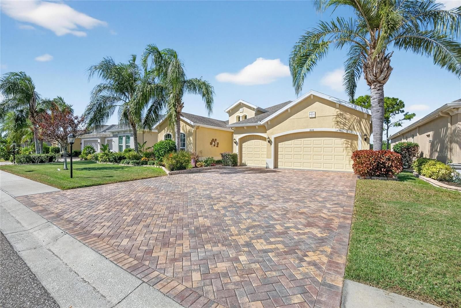 Welcome to 1616 Emerald Dunes Drive – Your Florida Dream Home Awaits! This stunning Montecito model sits gracefully on the 8th fairway of the Renaissance Golf Course, offering beautiful views and resort-style living every day. With a three-car garage, a heated saltwater pool and spa, and a spacious screened patio, this home is designed for comfort, style, and easy entertaining. Step inside to a light-filled open floor plan featuring coffered ceilings in the great room and a chef-inspired kitchen that serves as the heart of the home. You’ll love the wood cabinetry, soft-close drawers, custom tile backsplash, upgraded stainless steel appliances, granite countertops, and both a large dining island and sunny Dinning area—perfect for gathering with family and friends. The primary suite offers two spacious walk-in closets and a beautifully appointed en suite bath. A private guest suite provides comfort and independence for visitors, while the bright office/den (or third bedroom) with glass French doors adds flexibility for work or relaxation. Step outside to your own backyard retreat—complete with a heated saltwater pool and hot tub overlooking the golf course. Whether you’re enjoying a quiet morning coffee or hosting evening get-togethers, this outdoor space is made for Florida living. This meticulously maintained home includes numerous updates and thoughtful touches: Exterior paint (3/21) Upgraded smoke detectors with 10-year batteries (1/22) Stainless steel garbage disposal (3/22) Fine 20/20 lanai screening (3/23) Sealed driveway (7/24) New GE washing machine (7/24) New hot water heater (10/24) New Bosch A/C & heating unit (11/24) Brand new roof (12/25) Additional features include surround sound speakers, gutters and downspouts, and a spotless presentation inside and out. Spacious, inviting, and priced below market, this home combines design, quality, and location for an unparalleled value in one of Florida’s premier golf communities. Your next chapter starts here—1616 Emerald Dunes Drive!