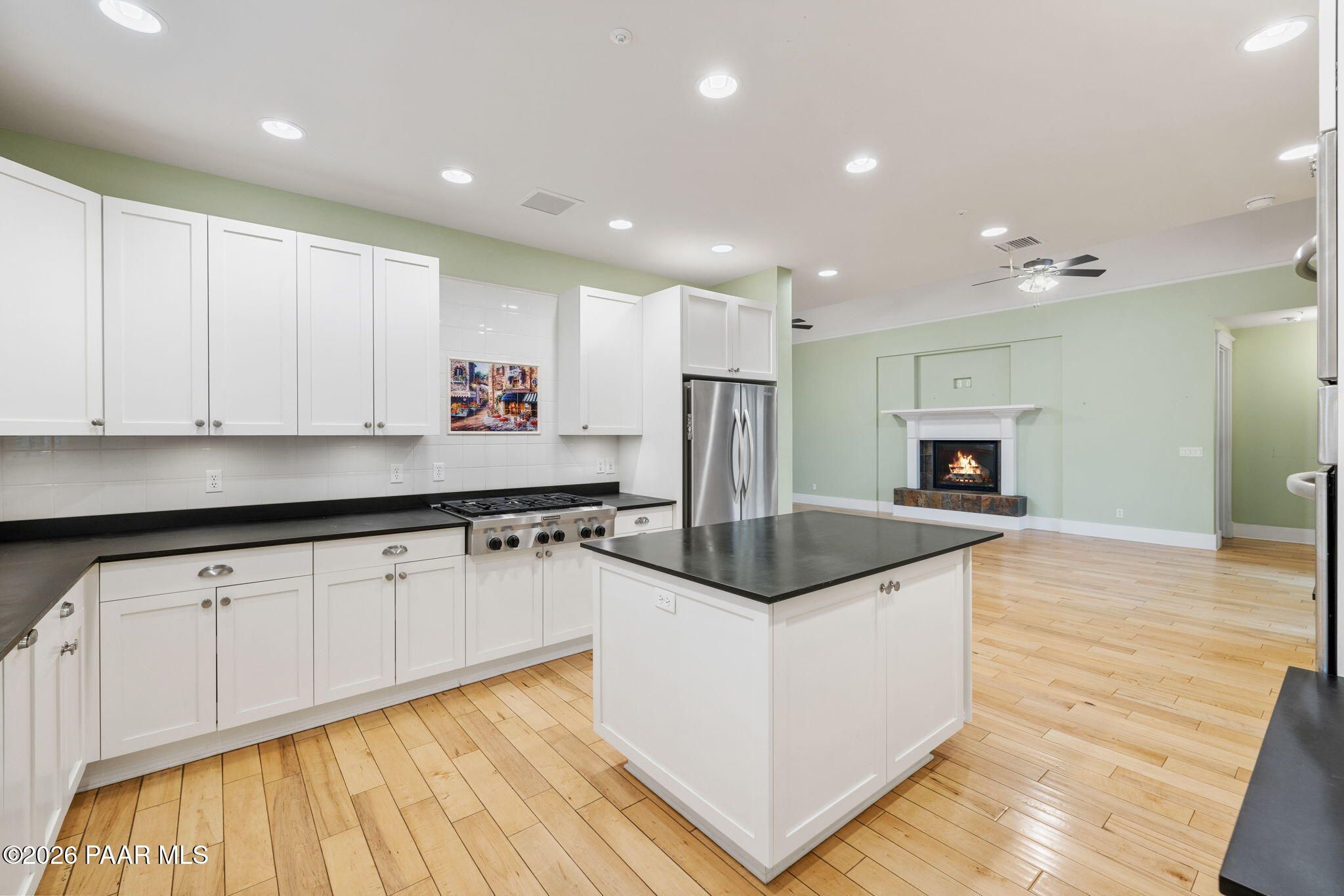 Beautiful custom-built home in prestigious gated community of Parkside located in the Dells at Prescott Lakes. Rarely available neighborhood with tree-lined streets. This home features a large driveway with a three-car garage. Gourmet kitchen with powerful 6 burner stove and lots of counter space, State of the art floor heating system with gas boiler also supplying recirculating hot water. Den with full bathroom is a 4th bedroom possibility. Incredible view of stars at night in this low light area. Low maintenance manicured yard.