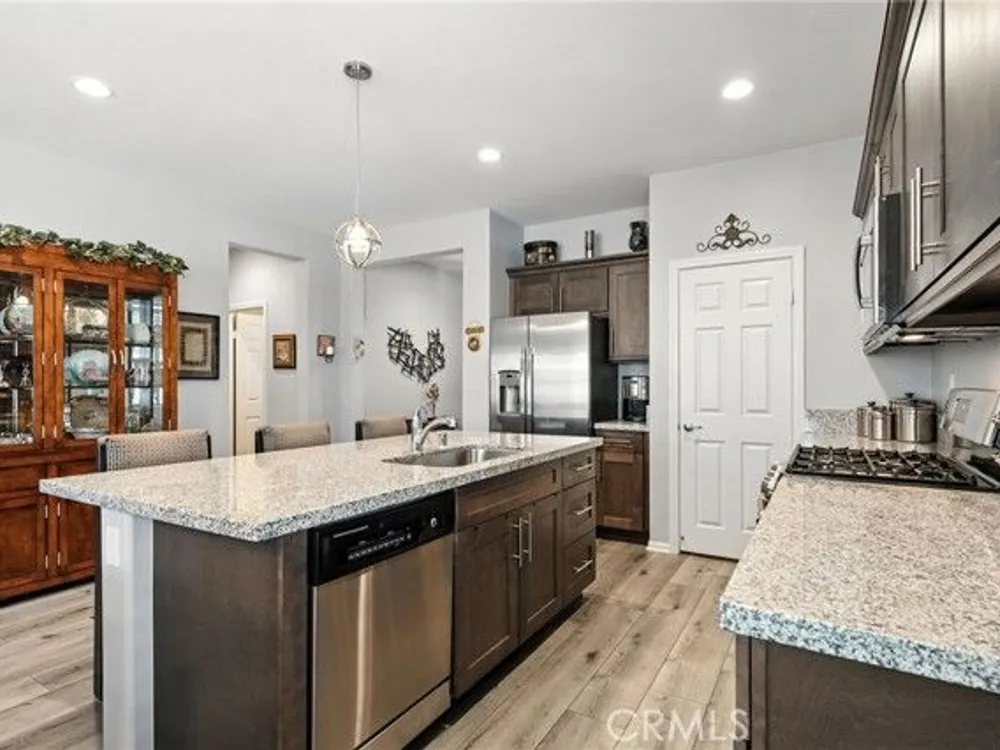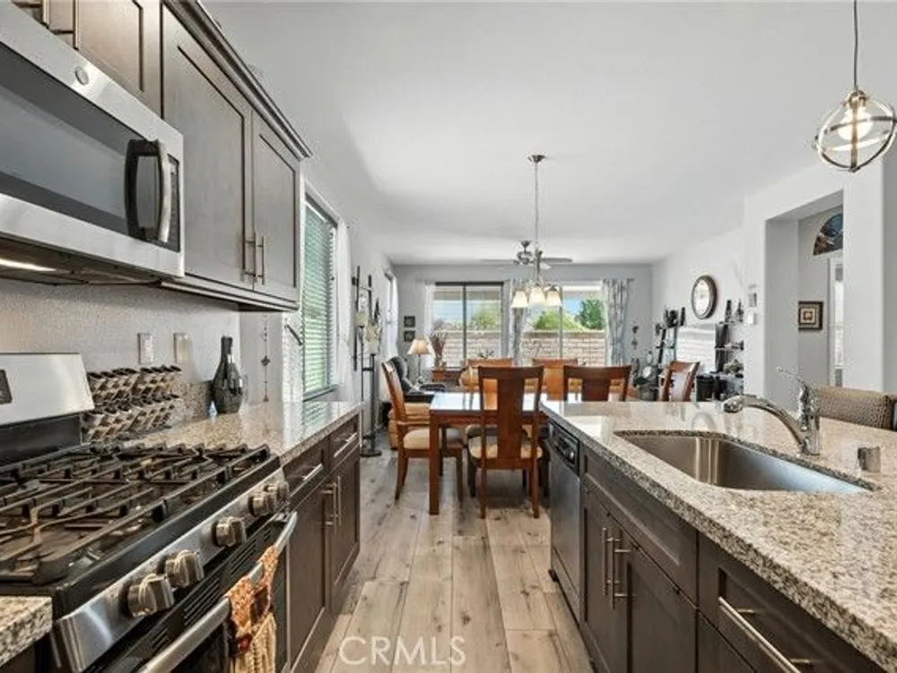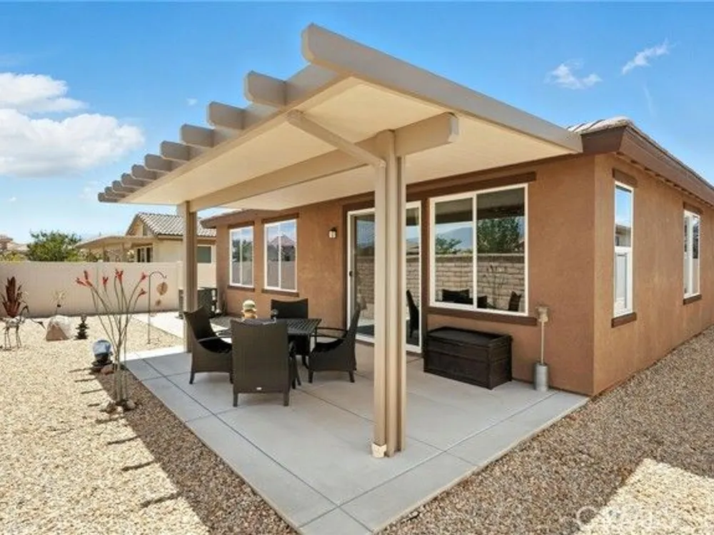 Welcome to the Gorgeous 55+ Community of Four Seasons in Beaumont! You will love 1616 Rosemary Gardens! Discover the perfect blend of comfort and elegance in this highly sought-after Retreat model home, built in 2019. Offering 2 bedrooms + den/office, 2 bathrooms, and 1,592 square feet of thoughtfully designed living space, this home is ideal for those seeking style and convenience in a vibrant active adult community. Step into the heart of the home—an impressive kitchen featuring smoke gray cabinetry with sleek stainless steel hardware, granite countertops, stainless steel appliances, and a large center island with sink. The inviting dining area flows effortlessly into a bright and open great room, filled with natural light from abundant windows. Enjoy beautiful wood laminate flooring in the foyer, kitchen, great room, and bathrooms, complemented by soft carpeting in the bedrooms and den. The interior is painted in a contemporary light grey for a fresh, modern feel. A spacious walk-in pantry adds plenty of storage, and the home is equipped with energy-efficient upgrades including a tankless water heater and fire sprinkler system. The extended-length garage easily accommodates larger vehicles. Outside, the low-maintenance landscaping, newer Alumawood patio cover, and full block wall fencing provide privacy and ease of living—with no neighbors directly behind you. Resort-Style Living at Its Best Four Seasons Beaumont offers world-class amenities including: The Lodge: Bistro, Grand Ballroom, Theater, Library, Billiards, Beauty Salon & Spa, Fitness Center, Tennis, and Outdoor Pool The Summit: Indoor Pool, Lounge Area, and Outdoor Spa The Courts: Tennis Courts, Fitness Area, and another Outdoor Pool All nestled among scenic walking trails and lush paseos. Perfectly located just minutes from shopping, dining, and entertainment: Cabazon Outlets & Morongo Casino Resort – 15 mins Palm Springs & Redlands – 30 mins Easy access to I-10 Don’t miss this opportunity to live the good life in Four Seasons Beaumont—schedule your private tour today!