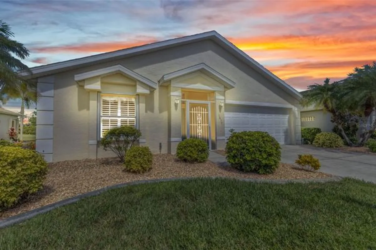 AMAZING VALUE with this STUNNING Sheffield that offers one of the VERY BEST VIEWS in the gated golf course/active resort of Kings Gate, a 55+ community that is NOT in a flood zone and in evacuation zone d (never been under any evacuation order). AWESOME view of fountain - 4th hole - woods...all viewable from living room, lanai, master and kitchen. Great curb appeal as you approach the screened entry way of this updated home featuring 2023 Roof, 2022 AC, 2022 HWH, 2018 accordion shutters, 2018 updated kitchen/bathrooms (granite - cabinets refaced - SS appliances). Step inside and your eyes will briefly notice the LARGE Living room before being drawn out to the screened lanai and that SPECTACULAR view of the water and fountain. Kitchen provides entry to/from living room and/or lanai - great for entertaining. Split floor plan provides plenty of privacy for both you and your guests. Master bedroom features TWO walk-in closets. Den has pocket doors allowing you to use room as a private office, 3rd bedroom, 2nd TV room or hobby room - whatever fits your lifestyle. No question though you're going to love having your morning cup of coffee or your favorite after dinner drink with a FOUNTAIN VIEW!! And as a bonus not only do you have ONE OF THE VERY BEST VIEWS - you're also located on a quiet street that has a yearly block party. And if you haven't been to Kings Gate before - you're going to love the options for activity (Olympic size heated swimming pool and spa, tennis courts, pickle ball, lawn bowling, shuffle board, bocce, horseshoes, gym, billiards, library, euchre, bingo, bridge, Texas hold em, poker, mahjong and more). The onsite AND NEWLY REMODELED Lions Den restaurant and bar is super convenient and also offers Tuesday night Karaoke and monthly trivia contests. Many residents love the fact that they are just a golf cart ride away from the shopping plaza that provides you access to grocery store (ALDI), drug store, bank, restaurants and shopping. Want to explore outside of Kings Gate – you are minutes away from the restaurants and shops of downtown Punta Gorda and Fisherman's village. And if you want to explore more of Florida's fun spots you’re near I75 to quickly head north or south. An AWESOME home with a MILLION dollar view in a PREMIER gated community won't last long. Call today for a private showing and a golf cart tour of the community/amenities.