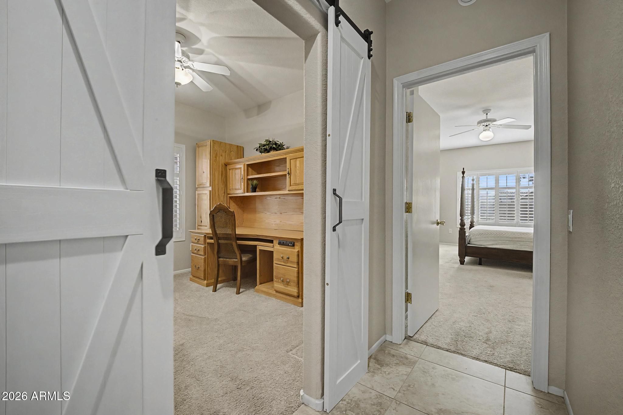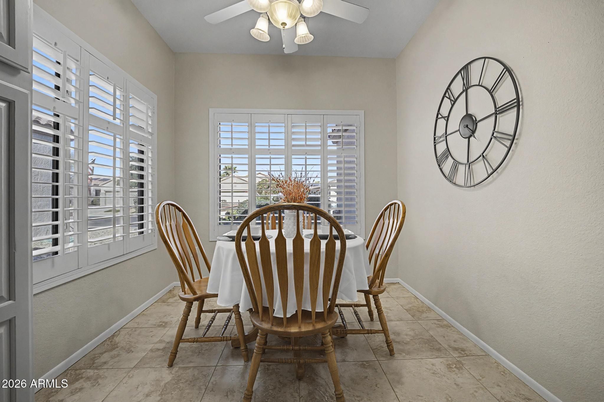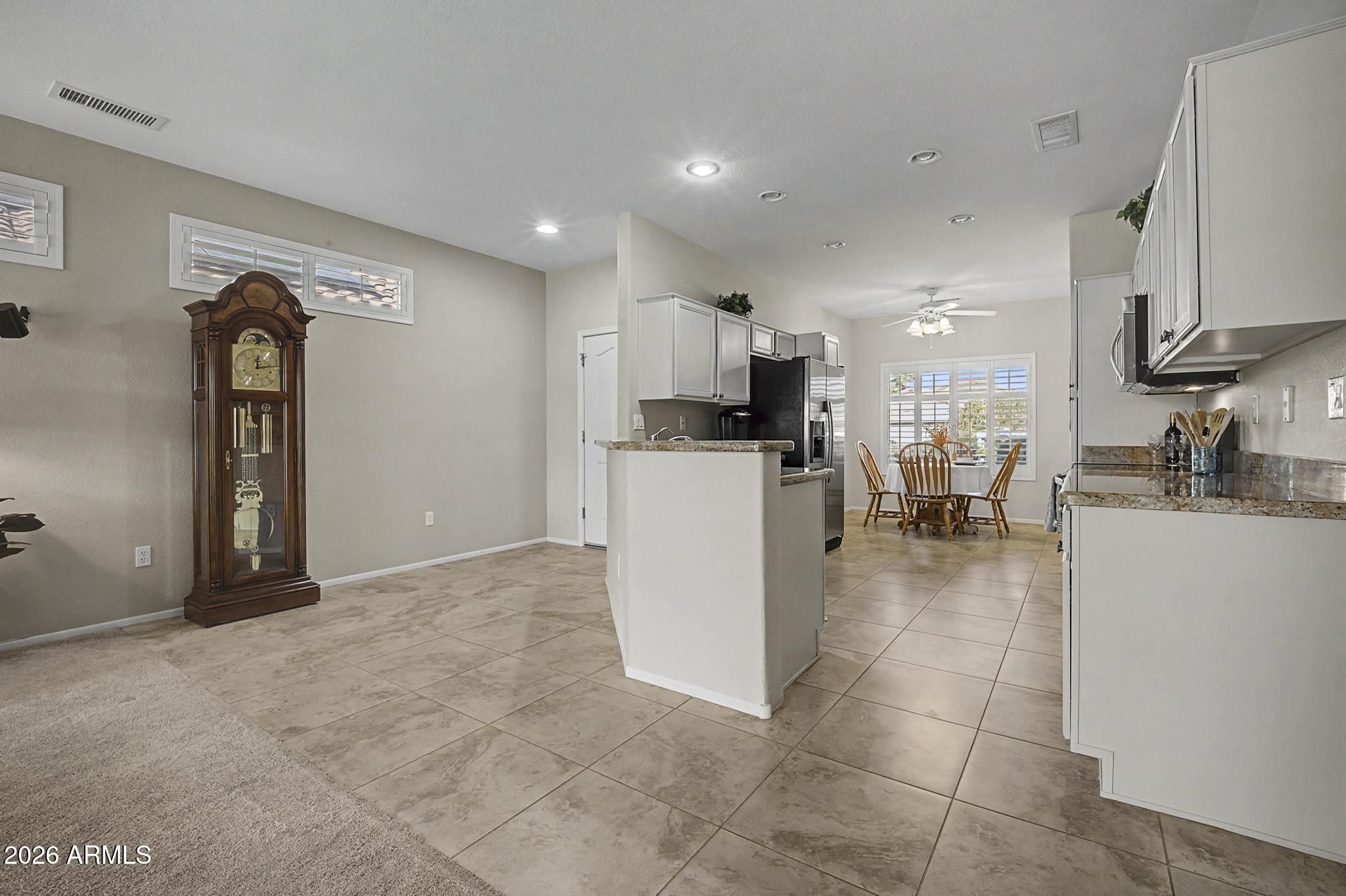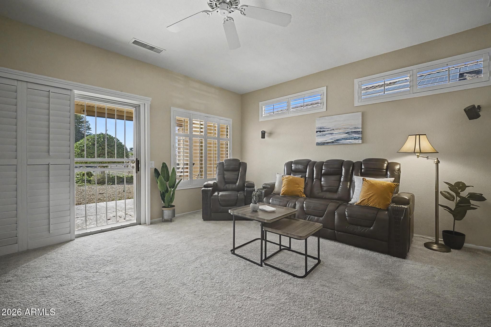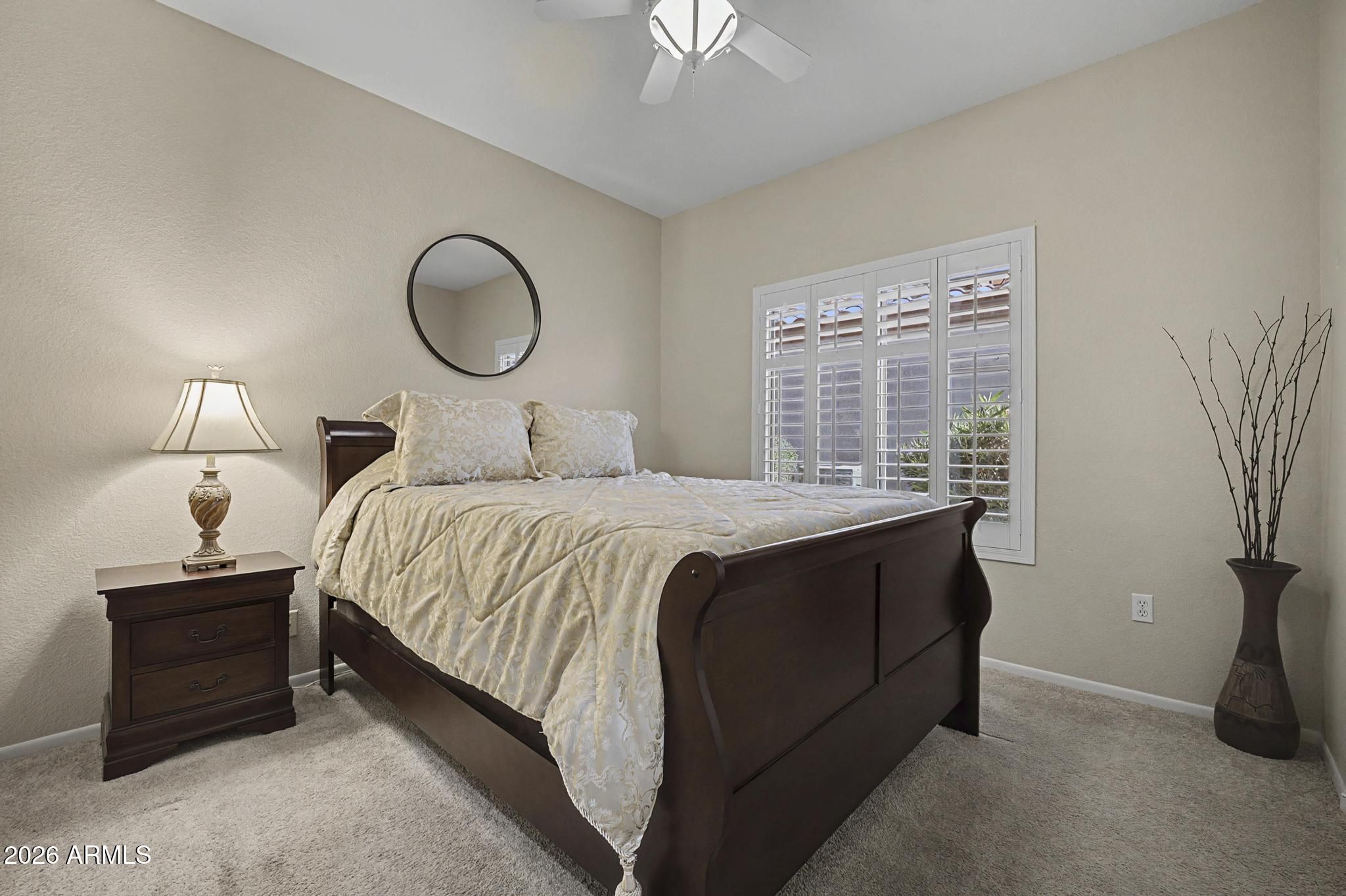 Welcome to The Grand, a highly sought after active adult community offering an engaging and fulfilling lifestyle. This popular floorplan features 3 bedrooms (the den with slider barn door functions as a true third bedroom) and 2 baths, with freshly painted cabinets, granite countertops, and plantation shutters throughout. Enjoy a large backyard perfect for entertaining on an oversized pie shaped fenced lot. The home is offered furnished with most items conveying (some staging items excluded) and includes solar to help keep energy costs low. his property offers a wonderful combination of comfort, efficiency, and resort style living. Solar is leased with a remaining balance of $10,579 and a monthly payment of $83. Estimated electric bill is approximately $19 per month during the winter. Annual membership provides access to championship golf, resort style pools, creative arts, social clubs & a full calendar of events designed to bring neighbors together while offering comfort, choice & connection. Endless Ways to Stay Active, Social, and Inspired Residents of The Grand enjoy access to an impressive array of amenities, including: " 4 Championship Golf Courses " 4 Community Pools with indoor & outdoor lap lanes and leisure pools " 22 Pickleball Courts " 11 Tennis Courts " 8 Bocce Ball Courts " 2 Fitness Centers " 100+ Monthly Group Fitness Classes " 75+ Grand Learning Enrichment Courses per Semester " 65+ Chartered Clubs & Interest Groups " 6 Creative Studios (Art, Clay, Glass, Photography, Stitchers & Woodshop) " 8 Outdoor Walking Trails ranging from ½ mile to 4.7 miles " Indoor air-conditioned walking track " Lawn bowling green " Fishing lake " Softball stadium " Outdoor model railroad park " Veterans monument Additional conveniences include: " 3 Restaurants with Bars plus snack bars & poolside service " 3 Hot Tubs " 2 Dog Parks (large & small dogs) " 2 Technology Centers " 2 Performing Arts Stages (Sonoran Plaza Ballroom & Cimarron Club) " Billiards room " Full-service day spa