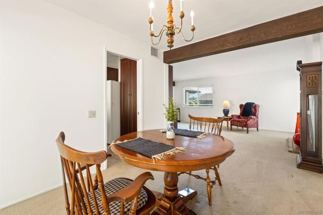 Welcome to 16174 Mesto Drive, ideally situated on a quiet cul-de-sac in the highly desirable Rancho Bernardo area of San Diego within the sought-after 55+ Seven Oaks community. This charming 3-bedroom, 2-bathroom home offers 1,614 square feet of thoughtfully designed living space on a private, expansive 0.26-acre lot with lush, mature landscaping. A welcoming double door entry opens to a light-filled interior featuring a spacious living room with a cozy fireplace and a formal dining area, while the kitchen offers abundant storage, a generous pantry, and a convenient pass-through counter—perfect for effortless indoor-outdoor entertaining, whether hosting a BBQ or enjoying relaxed evenings outside. The oversized lot provides a peaceful, private retreat, complemented by a spacious driveway for added convenience. Residents enjoy access to the Seven Oaks Community Center with its pool, spa, fitness center, and social activities, along with optional membership to the Rancho Bernardo Swim and Tennis Club offering additional swimming and tennis amenities, all just moments from golf, shopping, dining, and freeway access—delivering the perfect blend of comfort, lifestyle, and location.