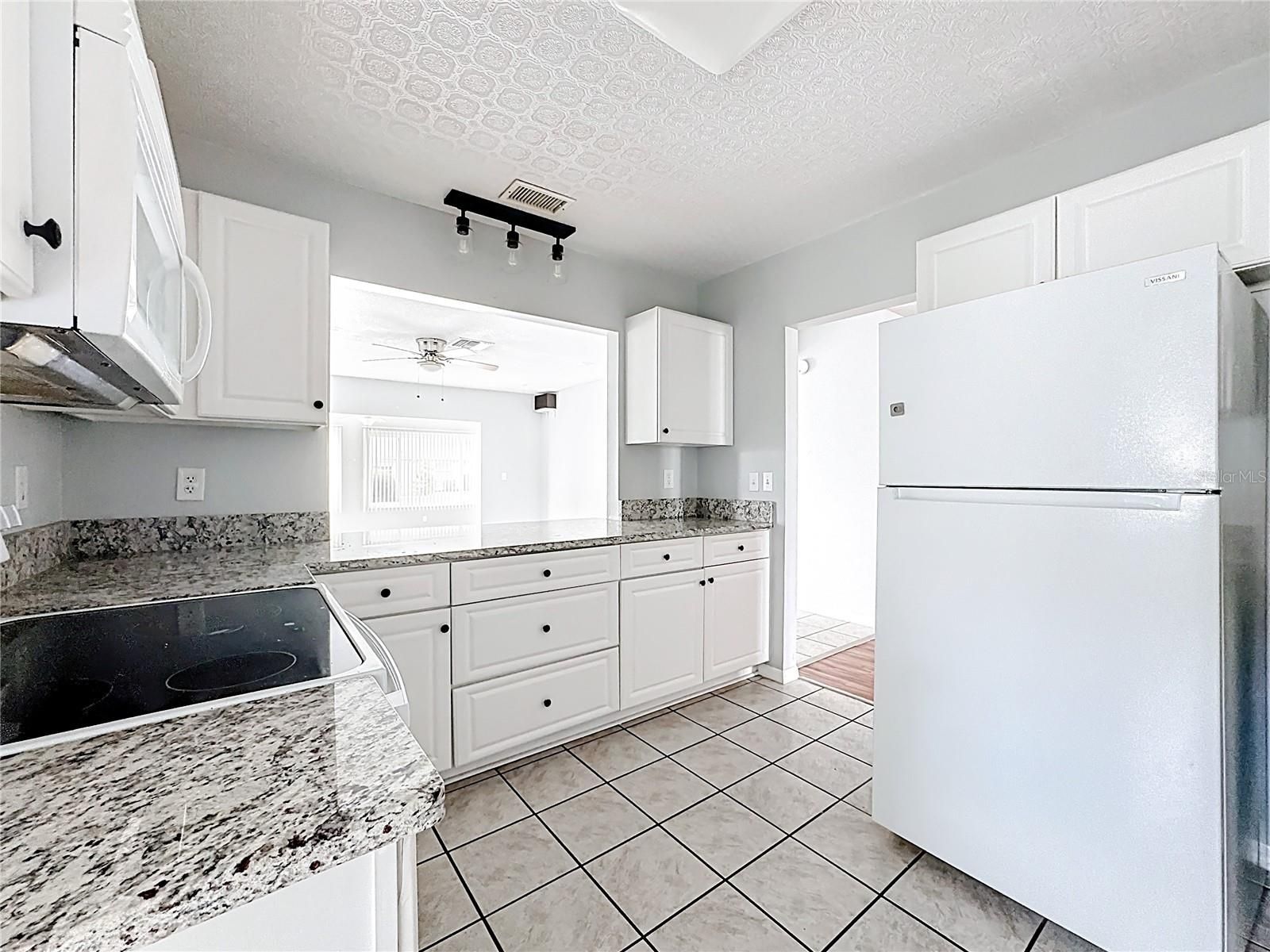 - Ceiling Fan(s), Eat-in Kitchen, Kitchen/Family Room Combo, Open Floorplan, Solid Surface Counters, Split Bedrooms, Thermostat, Walk-In Closet(s)