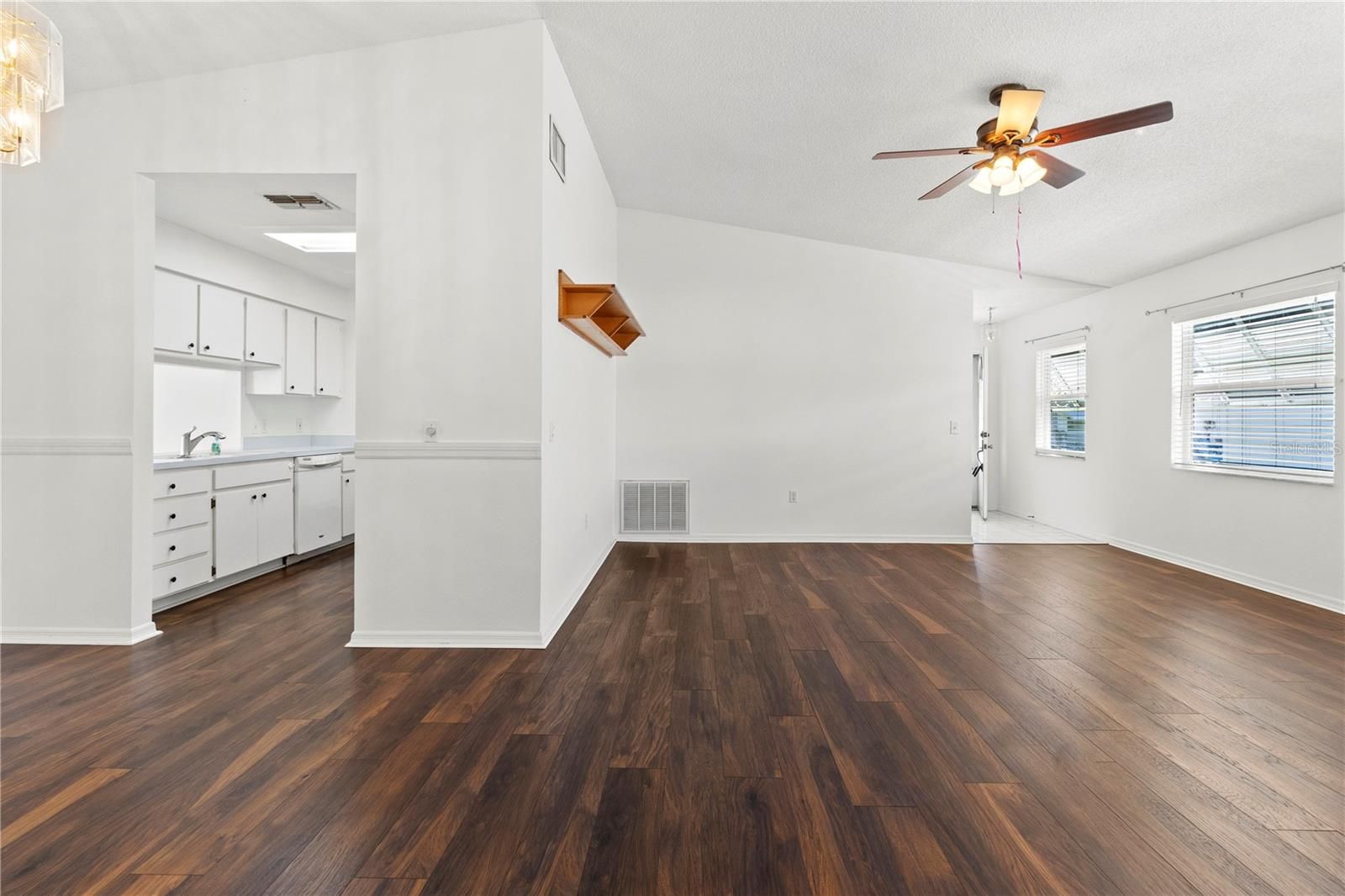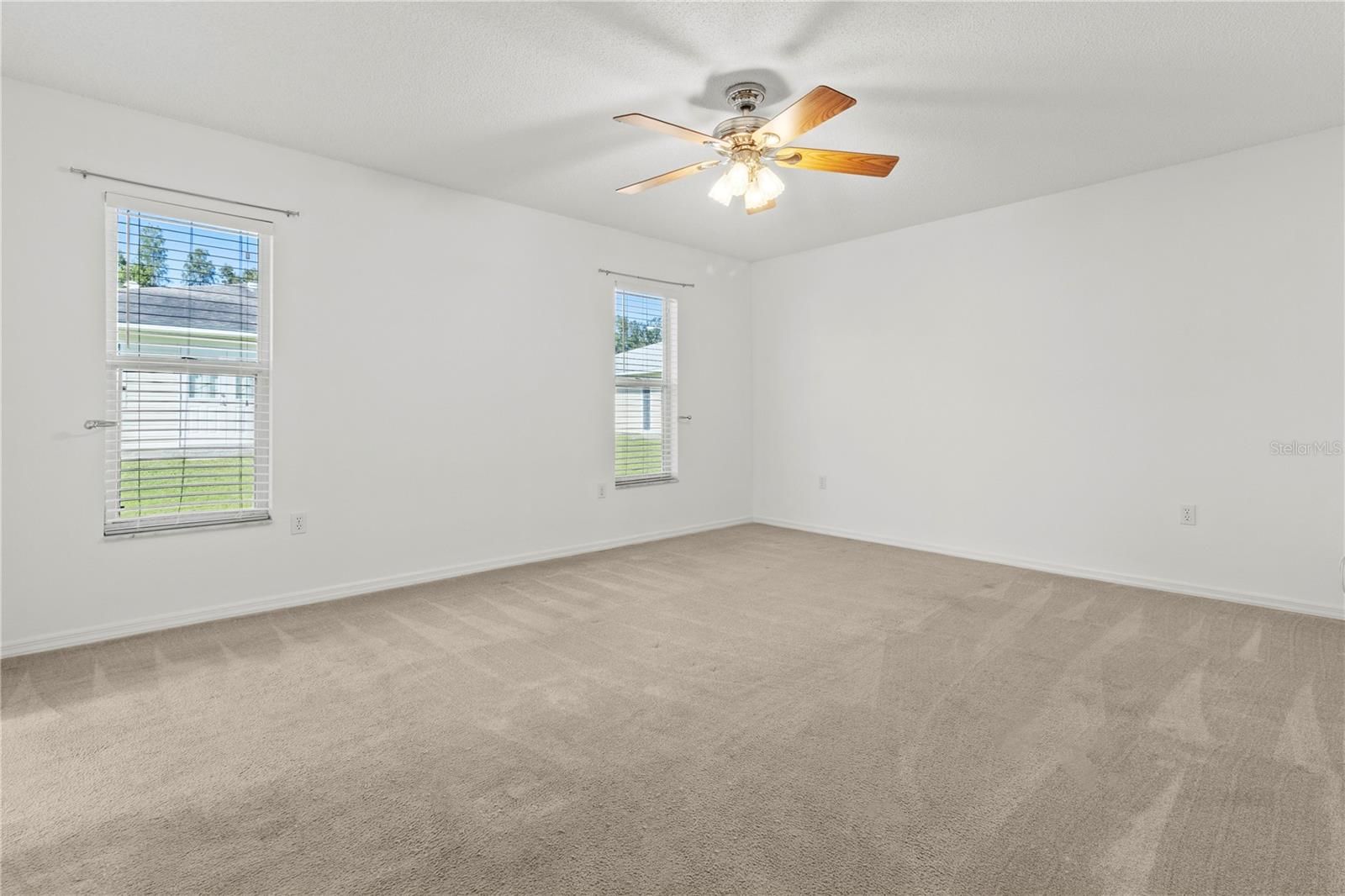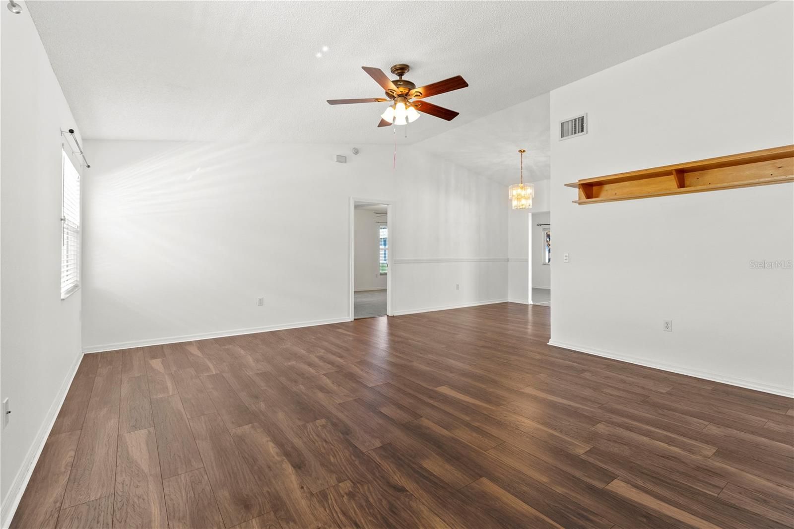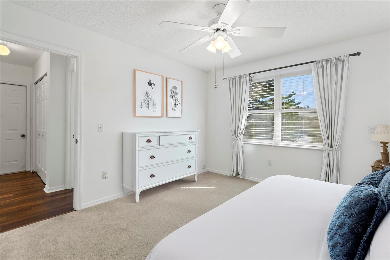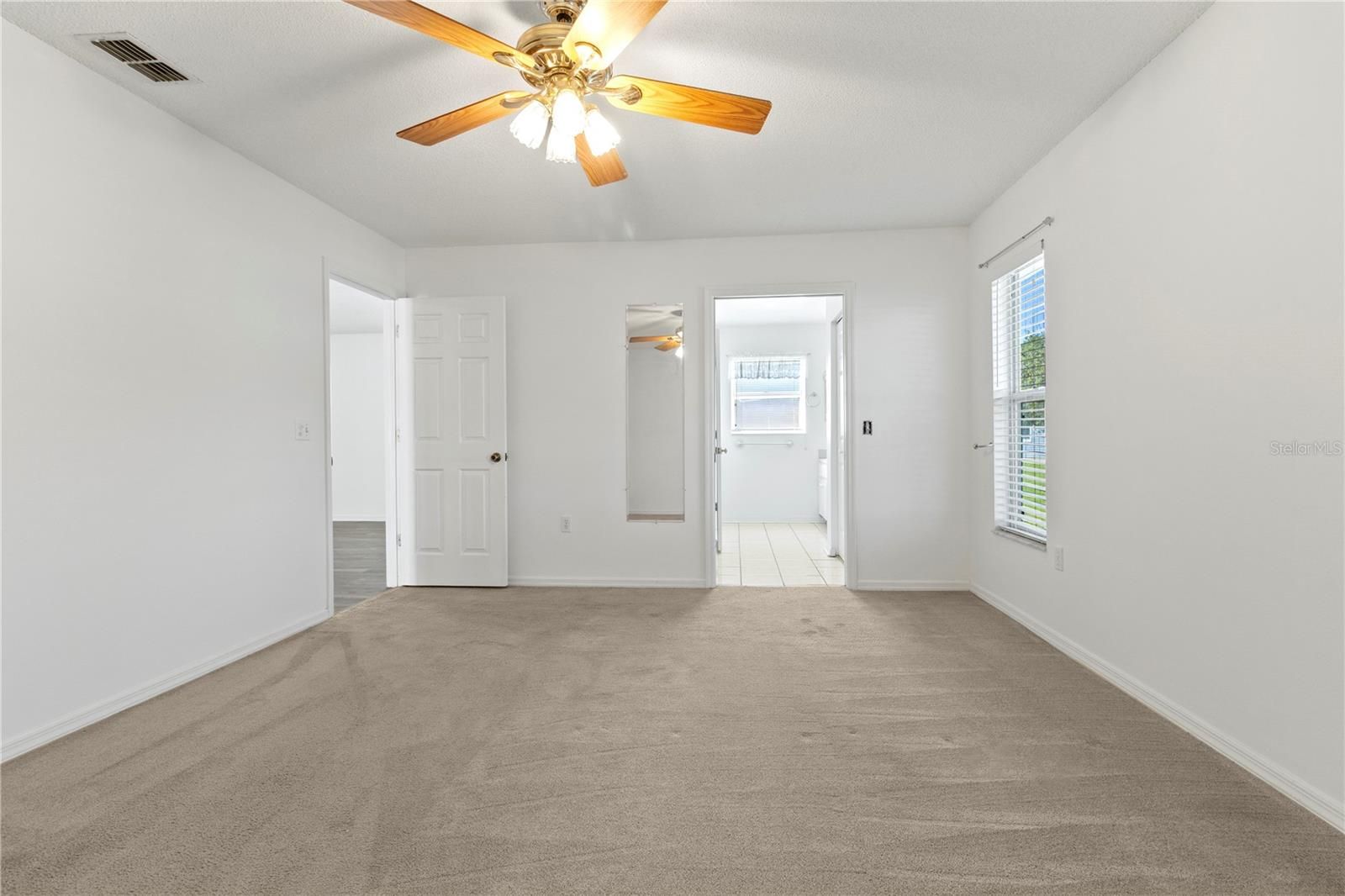 - Ceiling Fan(s), High Ceilings, Living/Dining Room, Open Floorplan, Main Level Primary, Split Bedrooms, Walk-In Closet(s), Window Treatments
