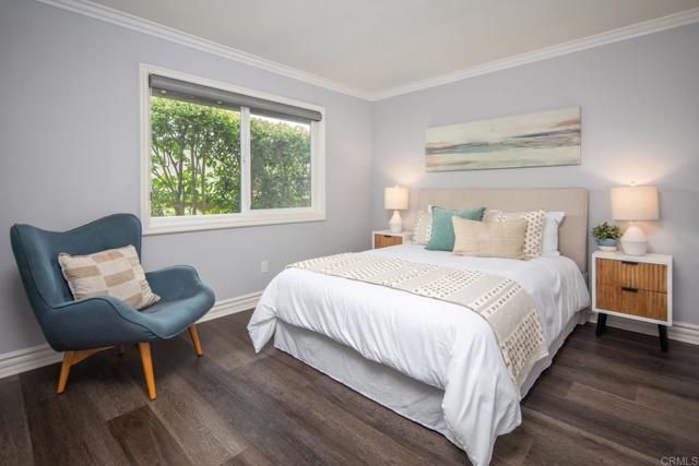 Enjoy a delightful single-story retreat located in the serene and sought-after 55+ community of SEVEN OAKS in Rancho Bernardo, San Diego. This charming 2-bedroom, 2-bathroom home offers 1,450 square feet of elegantly remodeled living space and is situated on a desirable corner lot. Step inside to discover the allure of luxury vinyl floors that gracefully flow throughout the home, enhancing its spaciousness and warmth. The heart of the home is the beautifully remodeled kitchen, adorned with sleek quartz countertops, Energy Star stainless steel appliances, and a newer roof. The home also features a fully renovated spa-inspired master bathroom and a remodeled second bathroom, all showcasing modern fixtures and thoughtful design. Custom interior paint adds a refined, cohesive finish throughout. Enjoy the convenience of a brand new HVAC system that ensures comfort year-round. Pella dual pane windows and leased solar panels further elevate the home’s energy efficiency. In the large attached garage, a solar-powered fan has been added to help pull heat out, enhancing temperature control and reducing cooling costs. The expansive backyard is a private haven, complete with brand new Big Bully turf, perfect for relaxing or entertaining. The detached layout of the corner lot adds an extra layer of privacy, while the garage provides ample space for storage and parking. This residence benefits from a host of premium amenities, including a community pool, clubhouse, pickle ball courts, and common media/recreation room—ideal for social gatherings or leisurely pursuits. Experience the epitome of San Diego living, where elegant upgrades, thoughtful amenities, and community charm come together effortlessly.