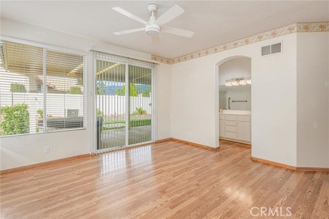 A lovely Jasmine is now for sale in the amazing community of Sun Lakes Country Club. This 1785 square foot home features 2 bedrooms, 2 bath, living room, dining room, kitchen, family room area, bonus room, and an indoor laundry room. As you enter this spacious home, you are immediately greeted by a living and dining room that is sure to become a popular gathering place. The bonus room can be used for an office, den, craft room or anything your heart desires. The open kitchen with ample work area, granite counter top, and splendid views of the San Gorgonio mountains are sure to make any cook happy as a clam. The kitchen overlooks the family room and eating area, making entertaining a breeze. The primary suite offers a walk-in closet, sliding door to the patio area and a private dressing/bath area. The guest bedroom is roomy and sure to comfort any guest for any length of time. An indoor laundry room with plenty of cabinet space is a huge plus and the walk-in pantry has many benefits for both convenience and home organization. The attached 2 car garage features ample space for storage and/or a golf cart. The front yard is almost maintenance fee with turf grass which is cost effective. The backyard showcases beautiful views, a couple of fruit trees and a durable Alumawood patio cover - perfect for relaxing or entertaining outdoors. Sun Lakes Country Club is one of the most affordable 55+ active adult communities in Southern California.